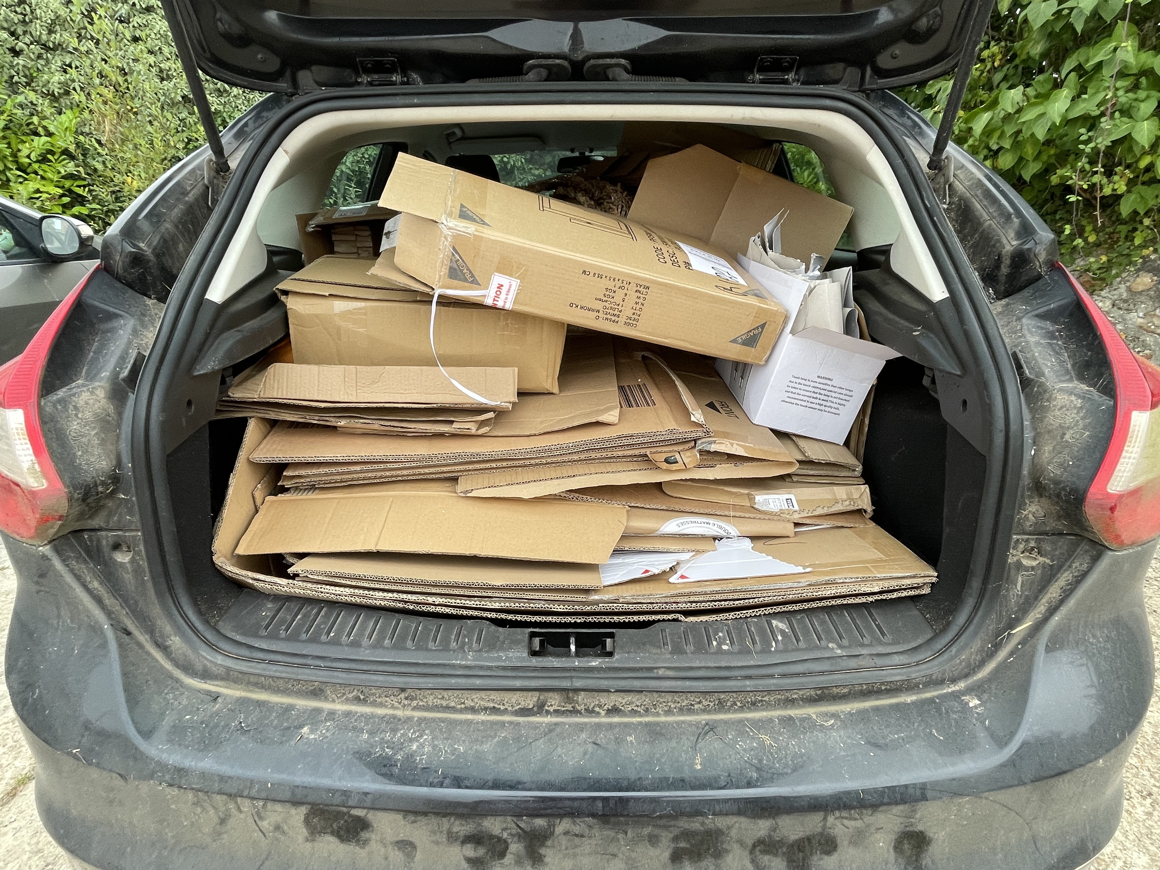 Our electricians are due to come back next week to finish off various jobs – one of which is to install our first EV charger. This required John to spend Sunday sweeping the residual building and general dirt and disposing of the various weeds that had grown along the wall. We also had a pallet of reclaimed bricks that we’ve not had time to do anything with – he moved them all up to the kitchen garden where we plan to use them when we get time.
