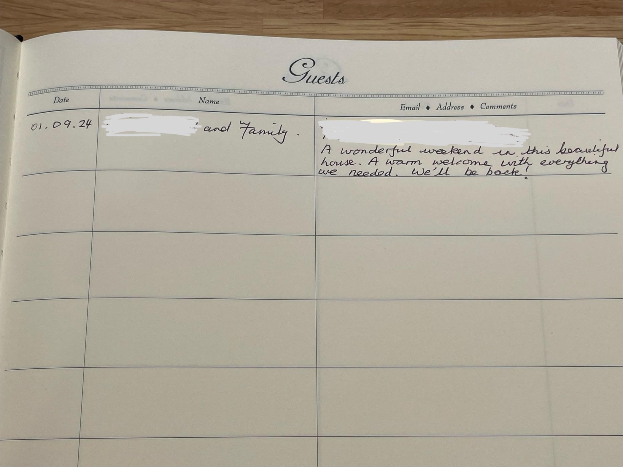 The farmhouse looks absolutely splendid and it’s lovely that your first guests appreciated it. It was definitely worth all the hard work. Well done!