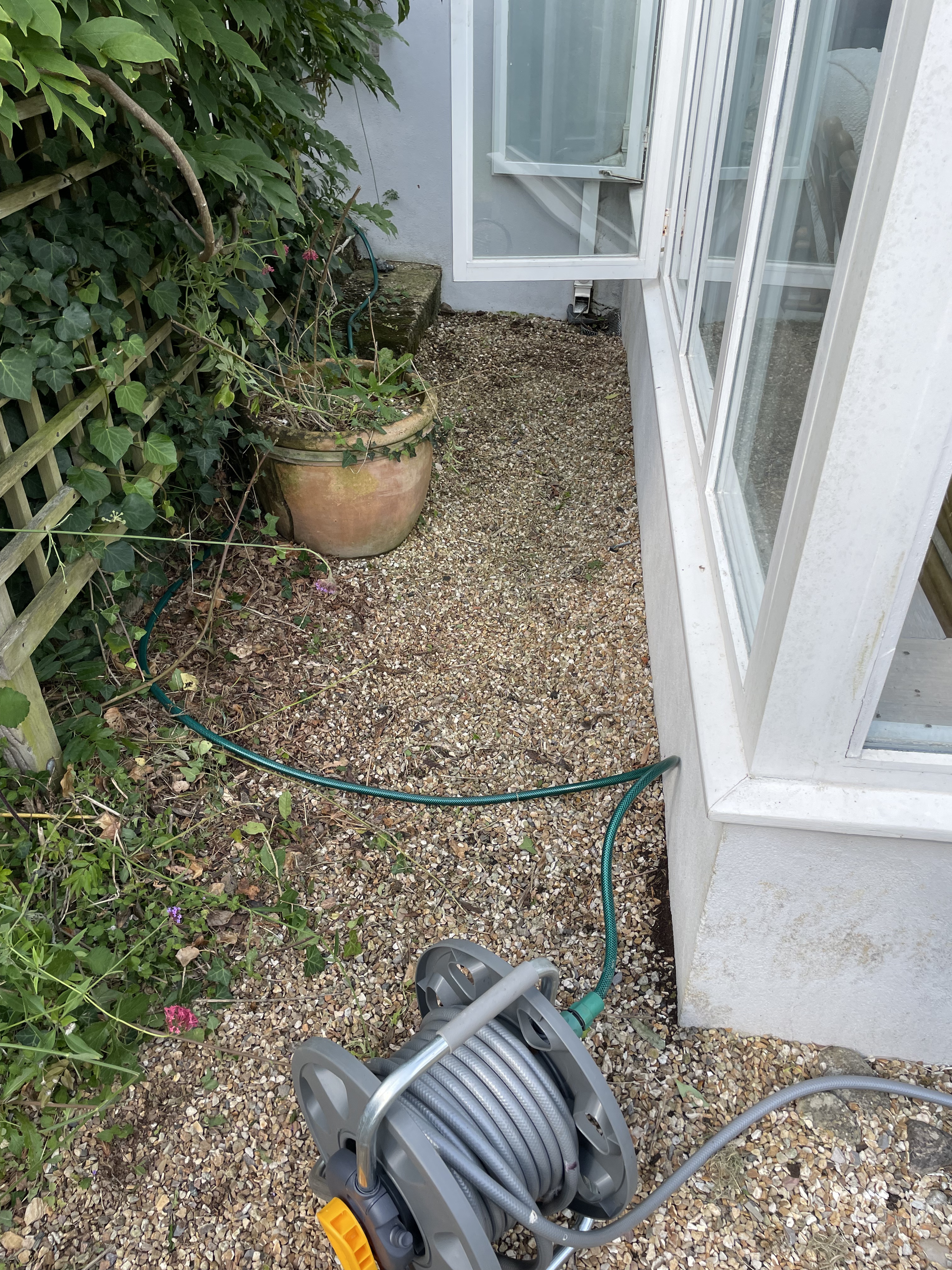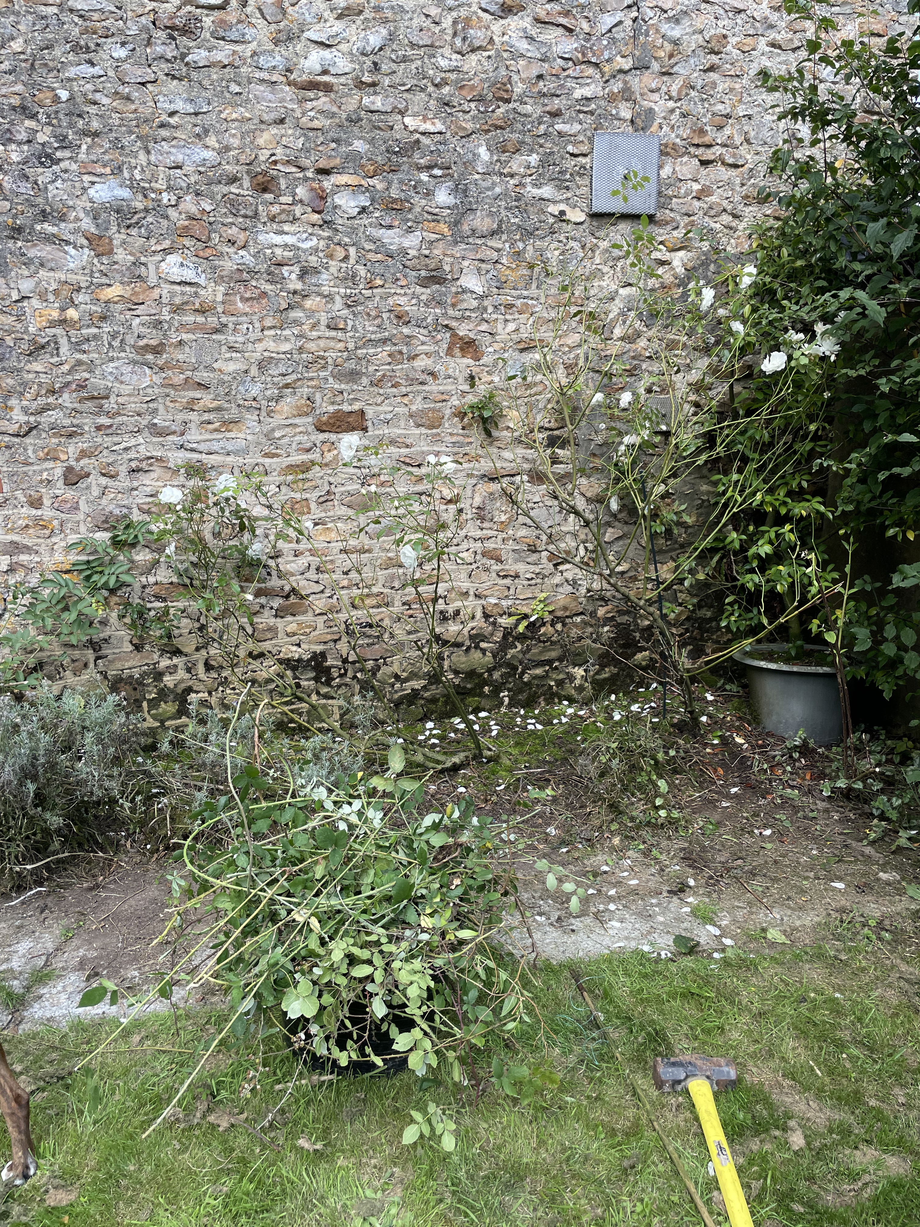 - Moving our collection of pots (and plants) and distributing them either to our [new] back garden or the front of our house and the Farmhouse;