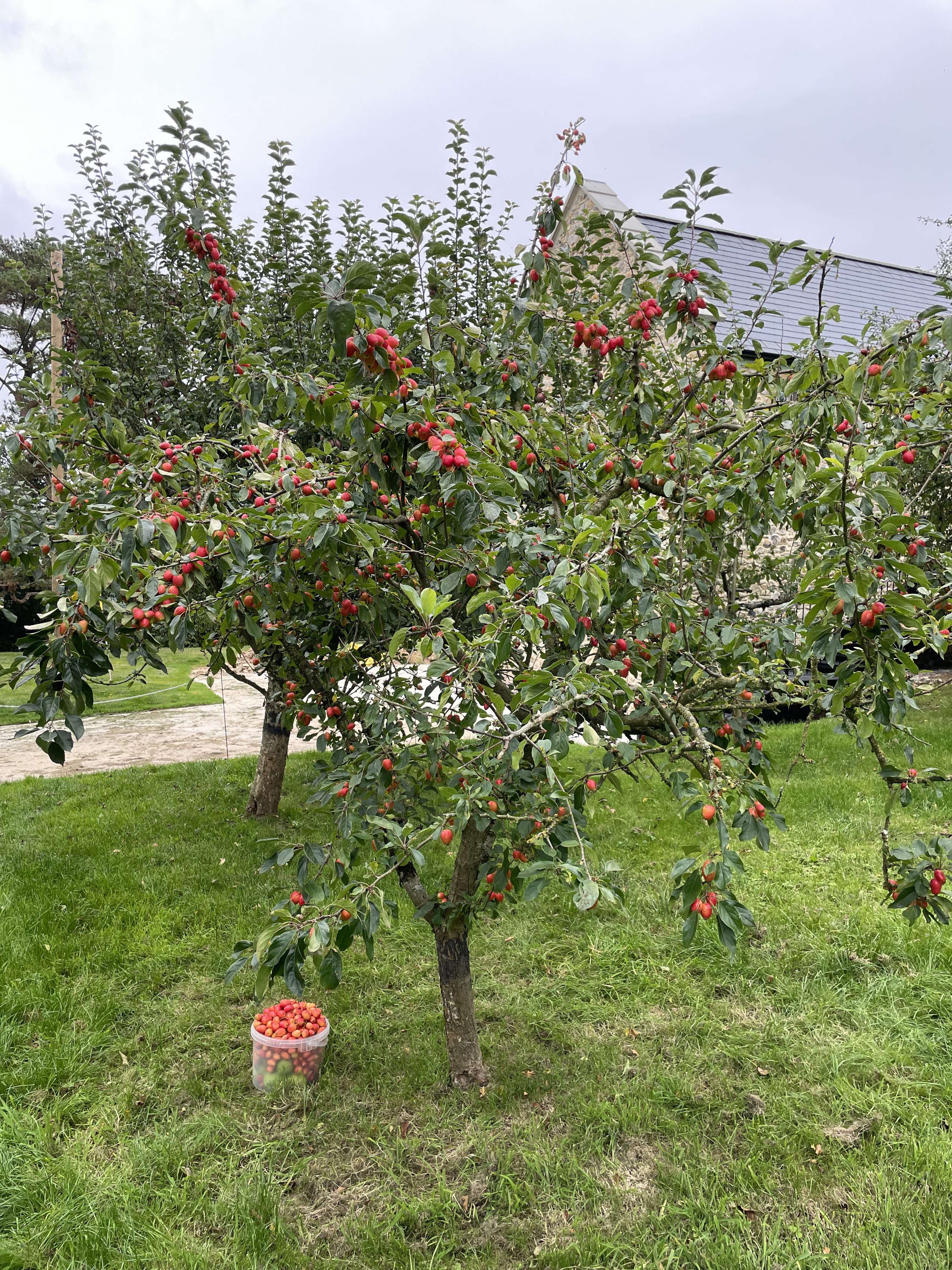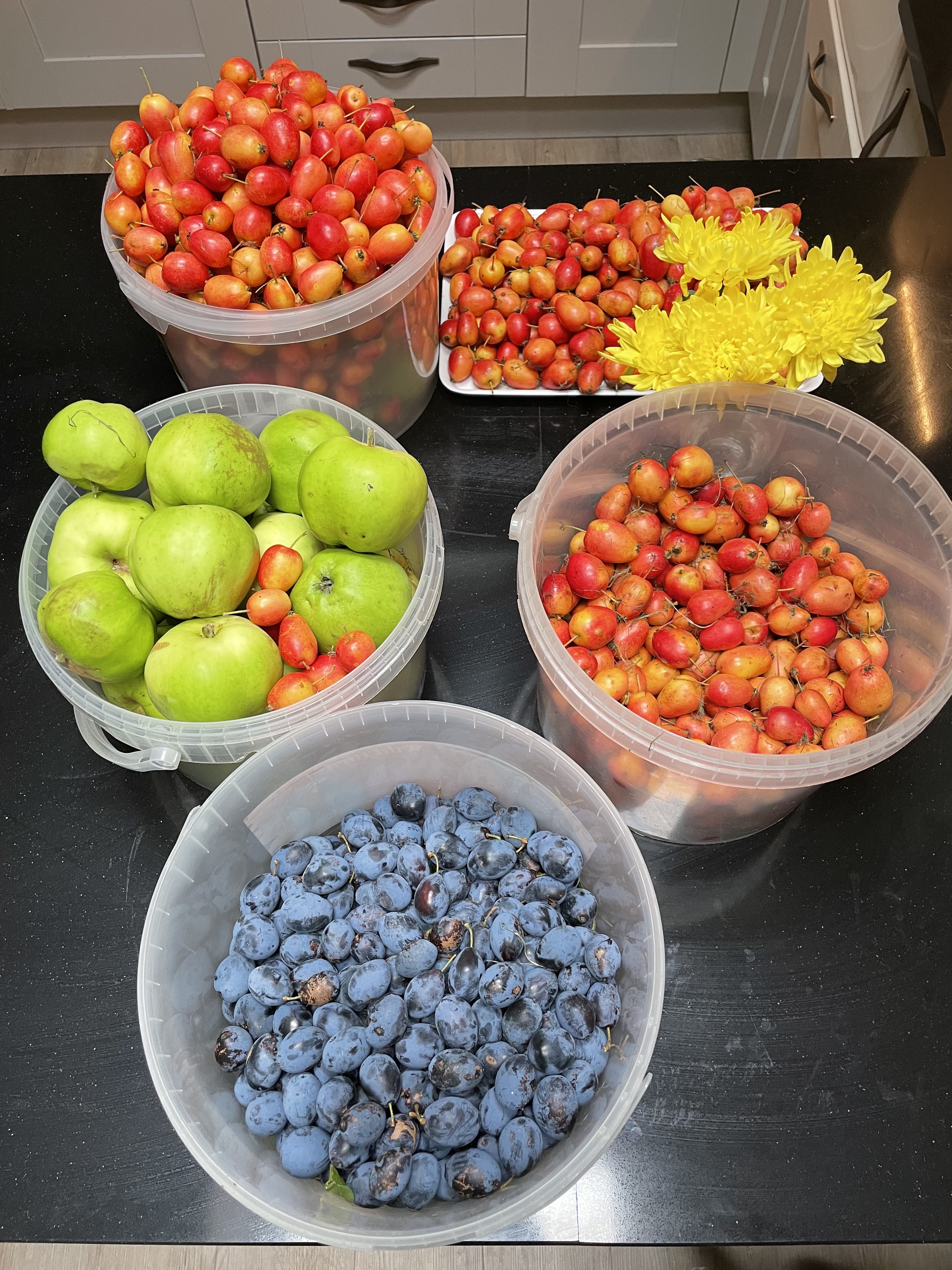 Our first visit has been fortuitously timed with the start of harvest season – I had the chance to collect the windfall crabapples and make the first batch of crabapple jelly this weekend, as well as cleaning and freezing damsons and apples to make damson jam when we have a bit more time. We’re aiming to sell some of our produce to our guests once we get the Games Room finished as there’s a nice space for a shelf there; and Daisy’s Dairy – our local milk vendors – kindly sell some of our jam in their vending machine which does quite well for us.