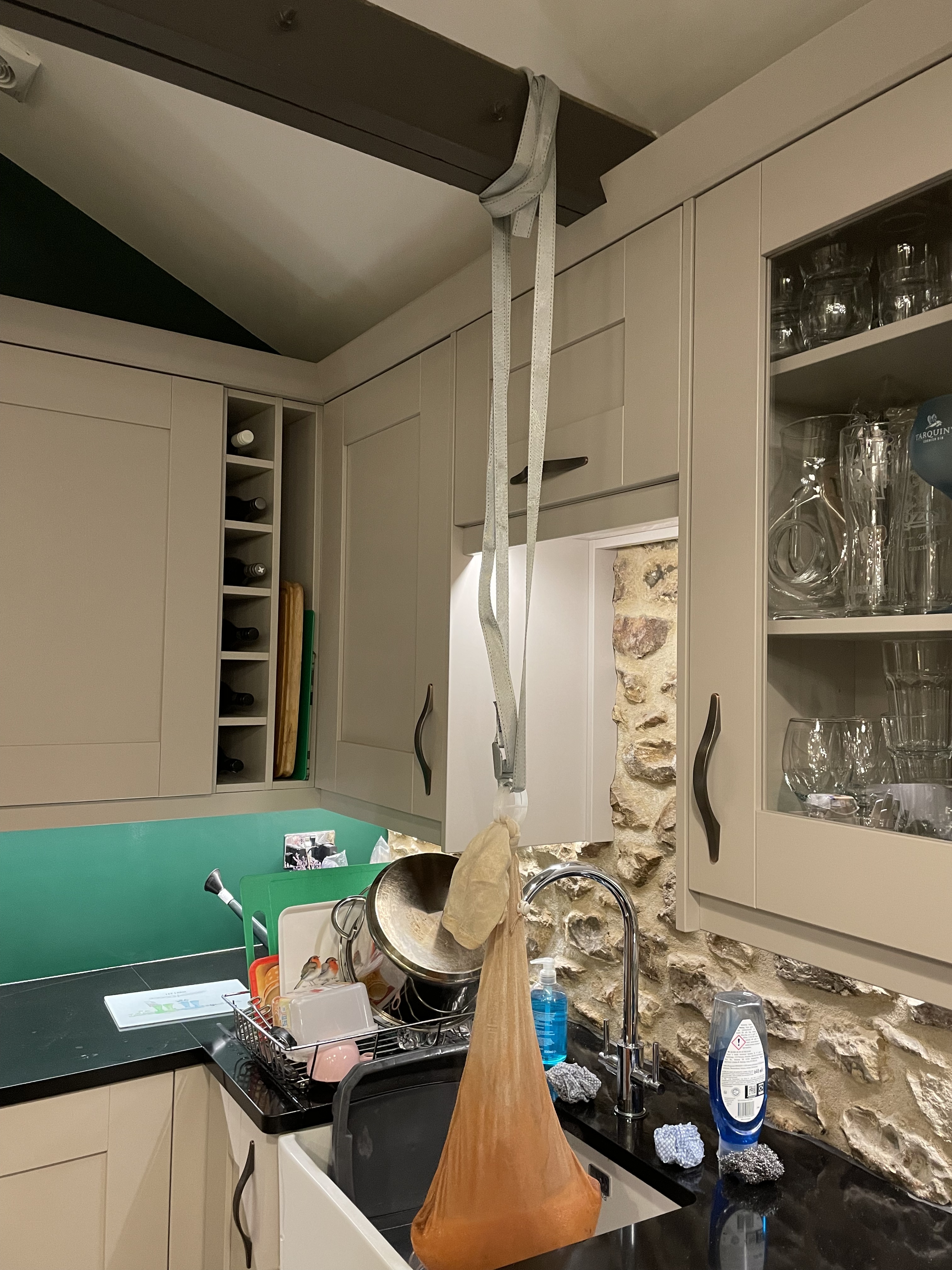 We took the chance while our guests were here to make some progress in our house. We’ve been surrounded by boxes and suitcases since we moved in while we focused on the Farmhouse – so managed to clear through a few of these this weekend. I hoovered the attic (a first!!) so we could start storing less-used items up there, and installed door stops and our key rack in an attempt to find a home for some of the things currently living on our kitchen work surface.