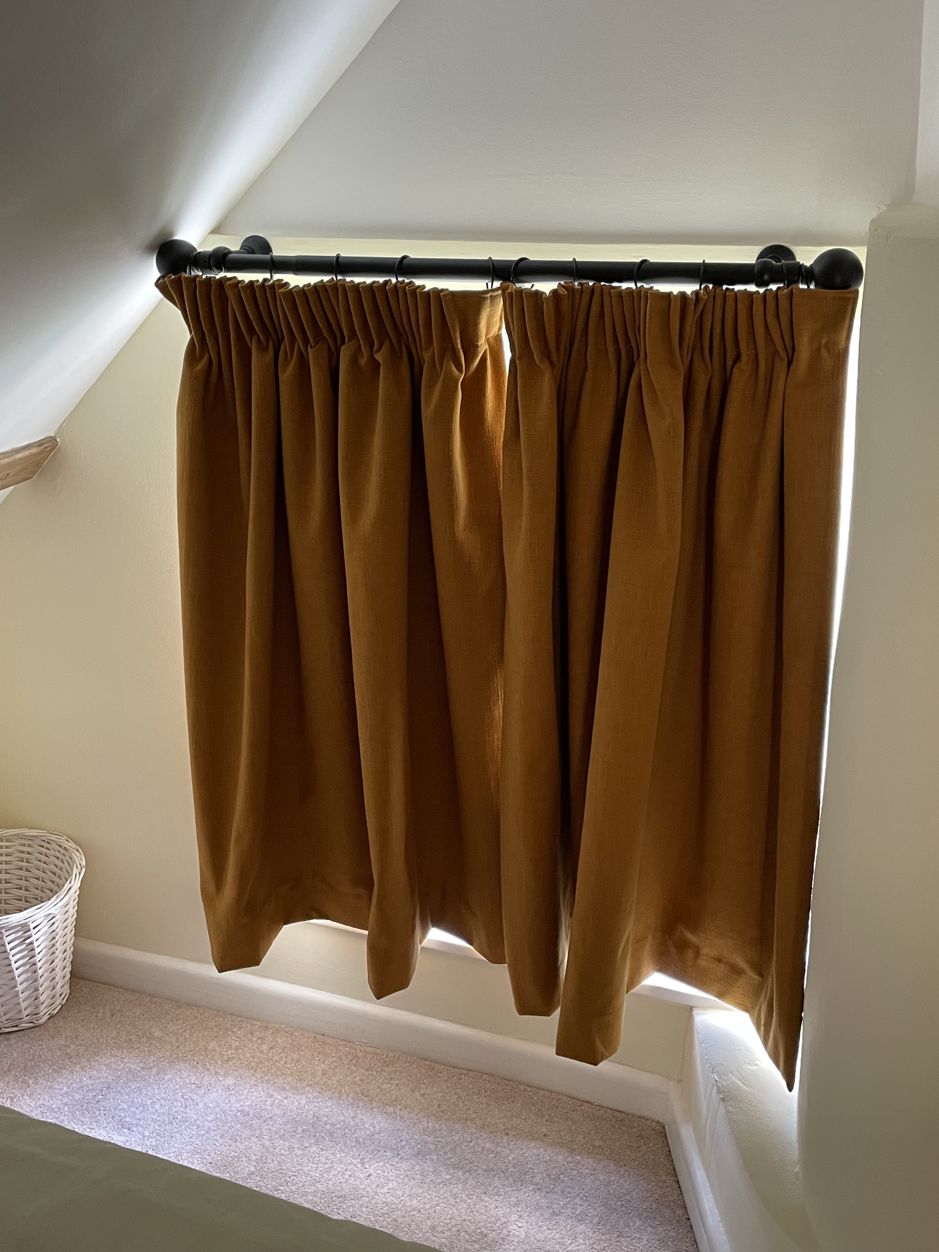 - Moving the curtain rail and hanging new curtains in the top floor yellow room;