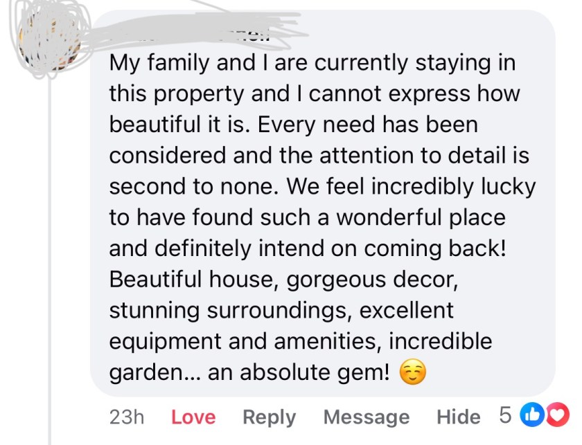 You both deserve success after the ‘extra mile’ you put in the make the Farmhouse a very appealing holiday home, recognised by the review from your first guests – brilliant work, very well done 👏👏