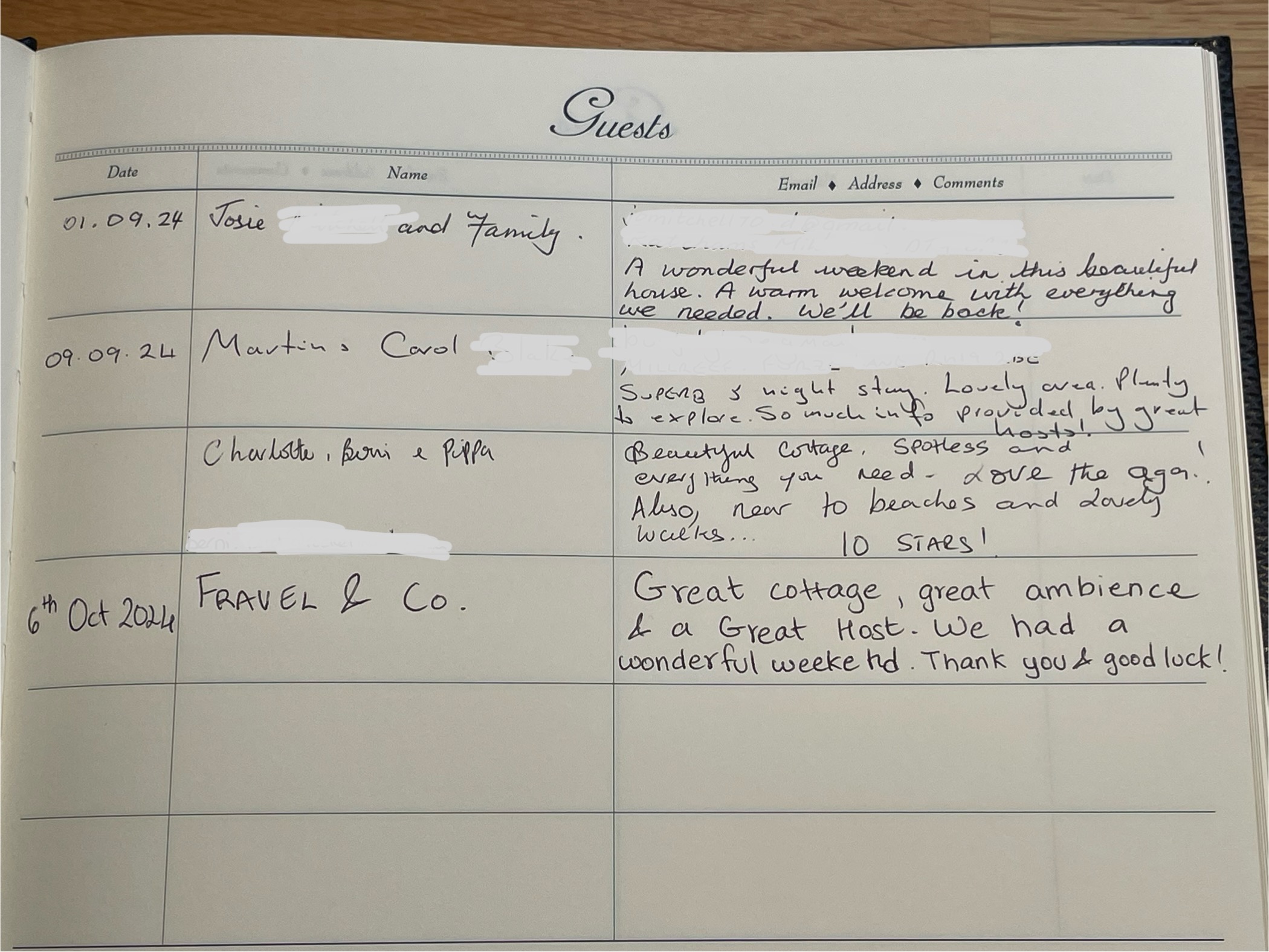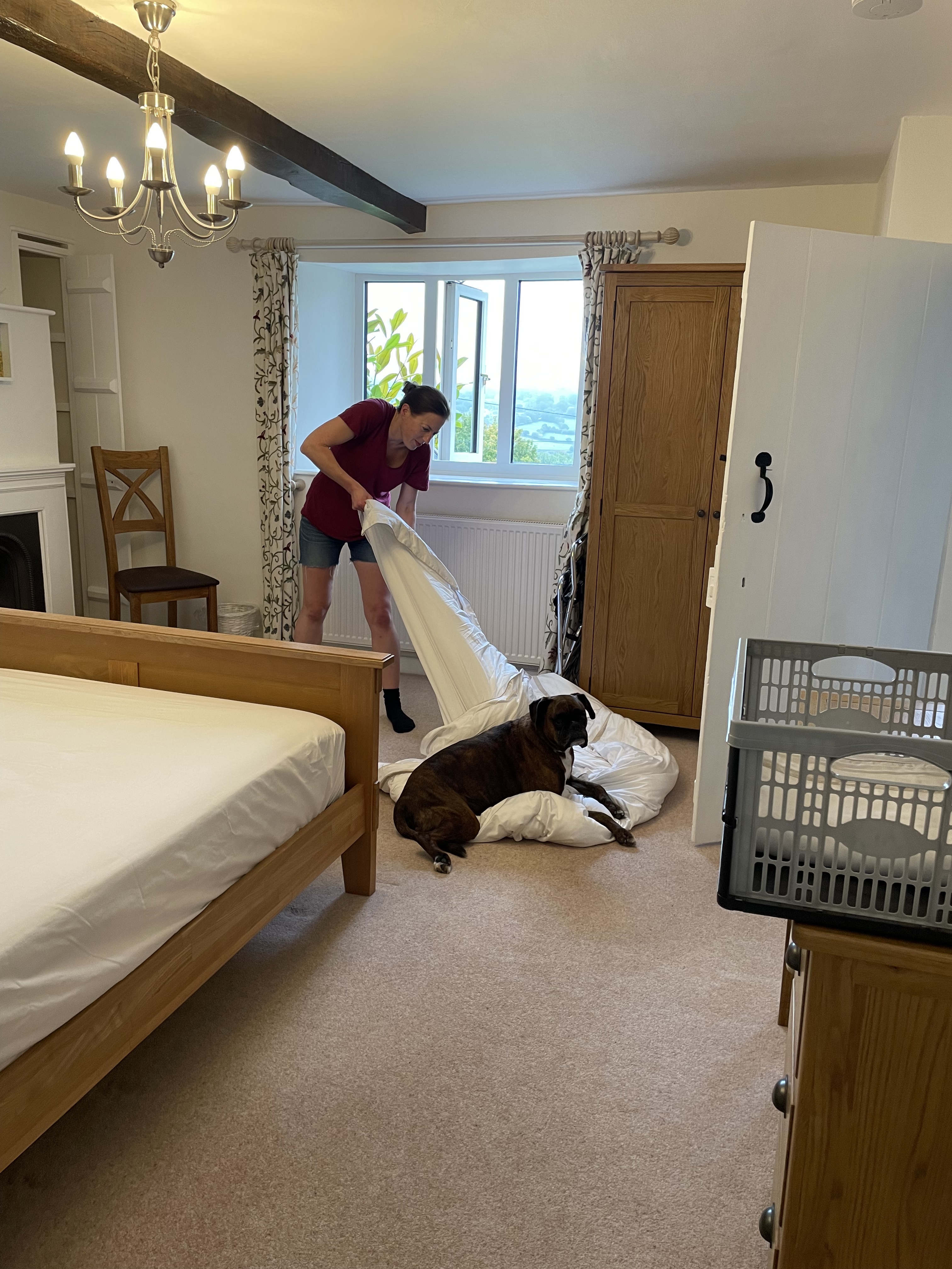We waved goodbye to our third guests on Friday – they stayed for two weeks and were such lovely people with the friendliest dog. They were also the first guests to use our EV charger. It was nice to see it being used and to make sure everything worked with the charger and with our payment process. Our next visitors were arriving Friday afternoon which meant we had our first experience of a same-day changeover – a little nerve-wracking to start with as we weren’t sure if we could get everything done in six hours. Our previous guests had left the house in great condition though and stripped the beds, so it was all easier than it could have been. We did have to change three of the beds from doubles to singles which meant extra bedding changes and moving the furniture around three of the rooms. The dog was pretty determined to make it all a bit more challenging too…