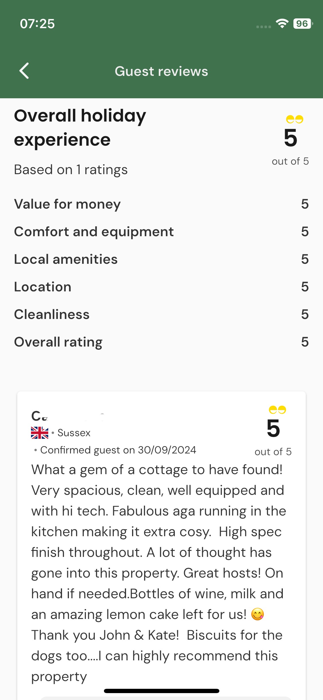 Both our second and third guests have given us a review this week – they’re the first ones to go on Cottages.com which is incredibly helpful for us. And they both gave us a glowing review too which also helps!! We’ve intentionally kept our prices a little lower to start with to focus on securing volumes of bookings and hopefully reviews with each one too, although it’s a little tough when we think about how much time we spend getting the house ready for each visit. We seem to have spent all this week and weekend either cleaning or washing and ironing between stays! Every business needs to start somewhere though.