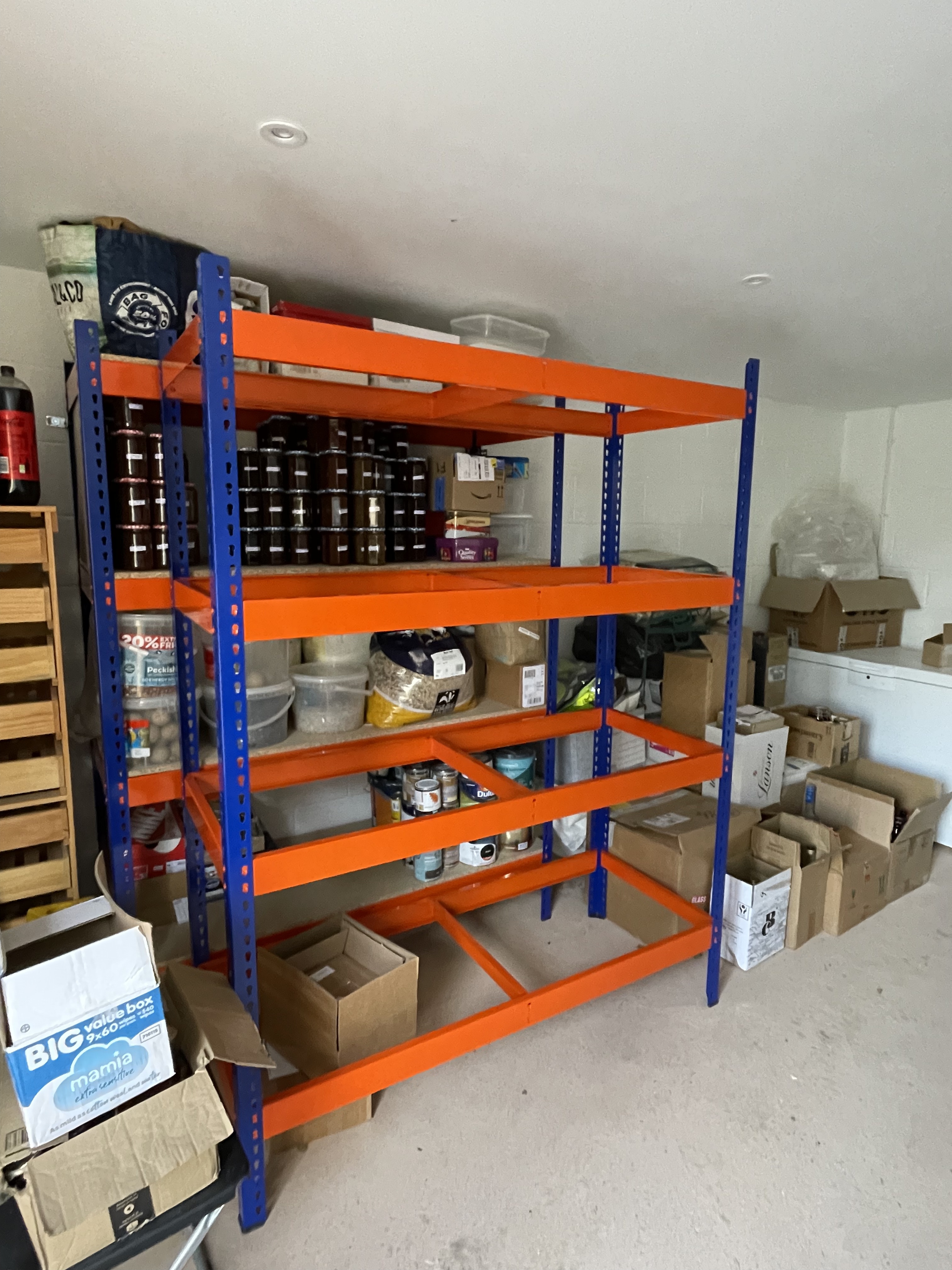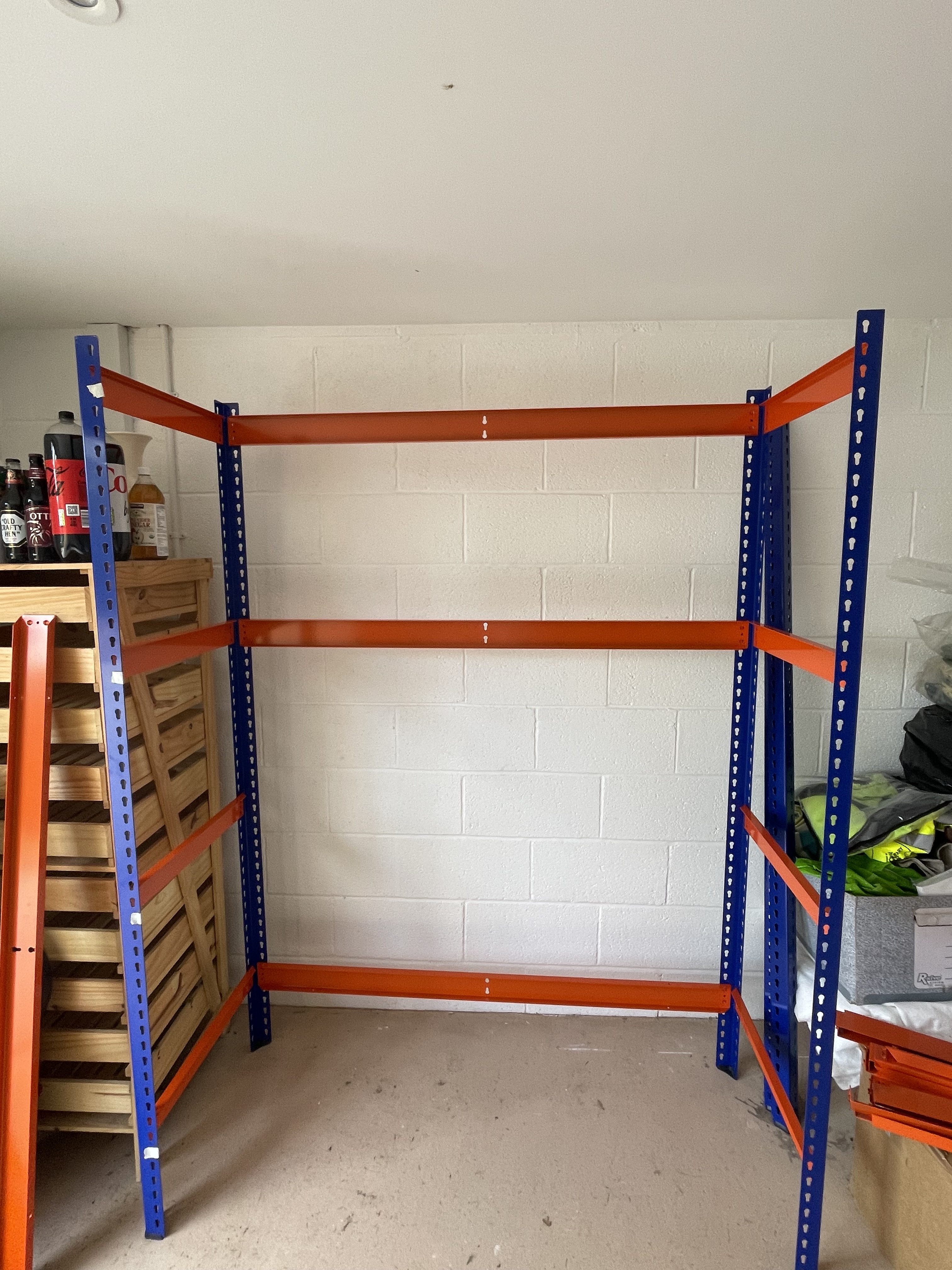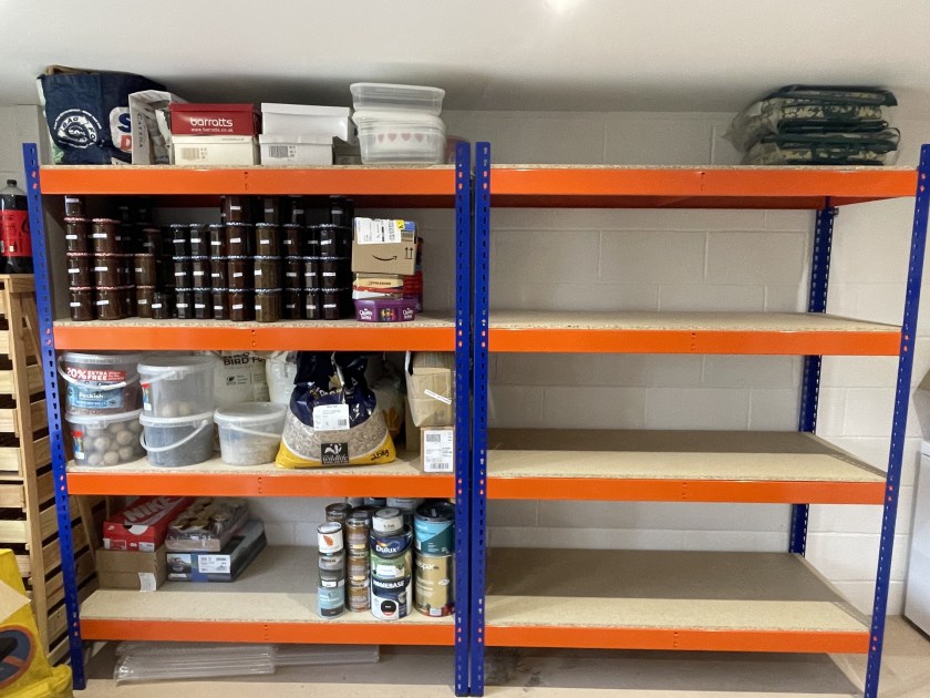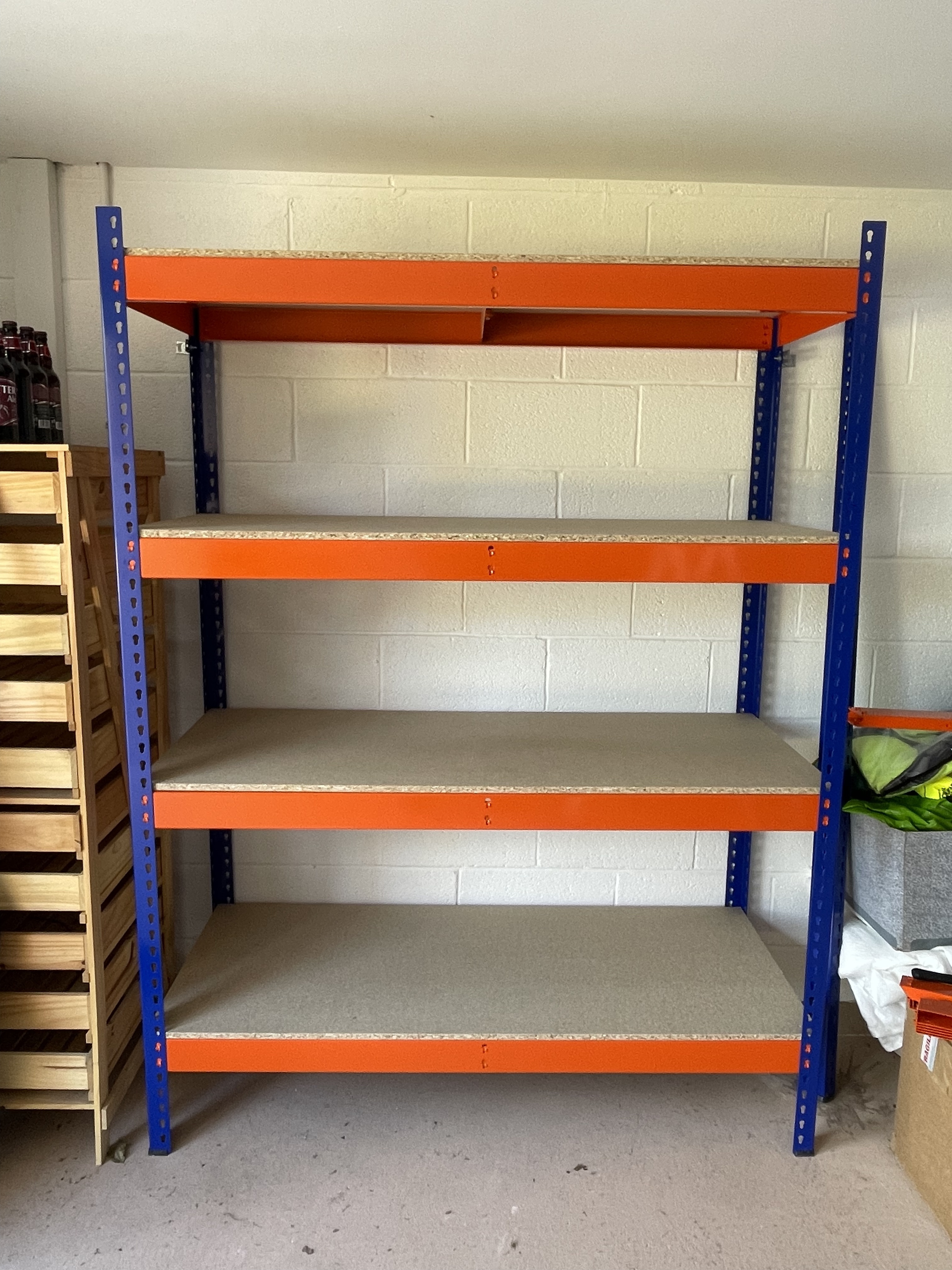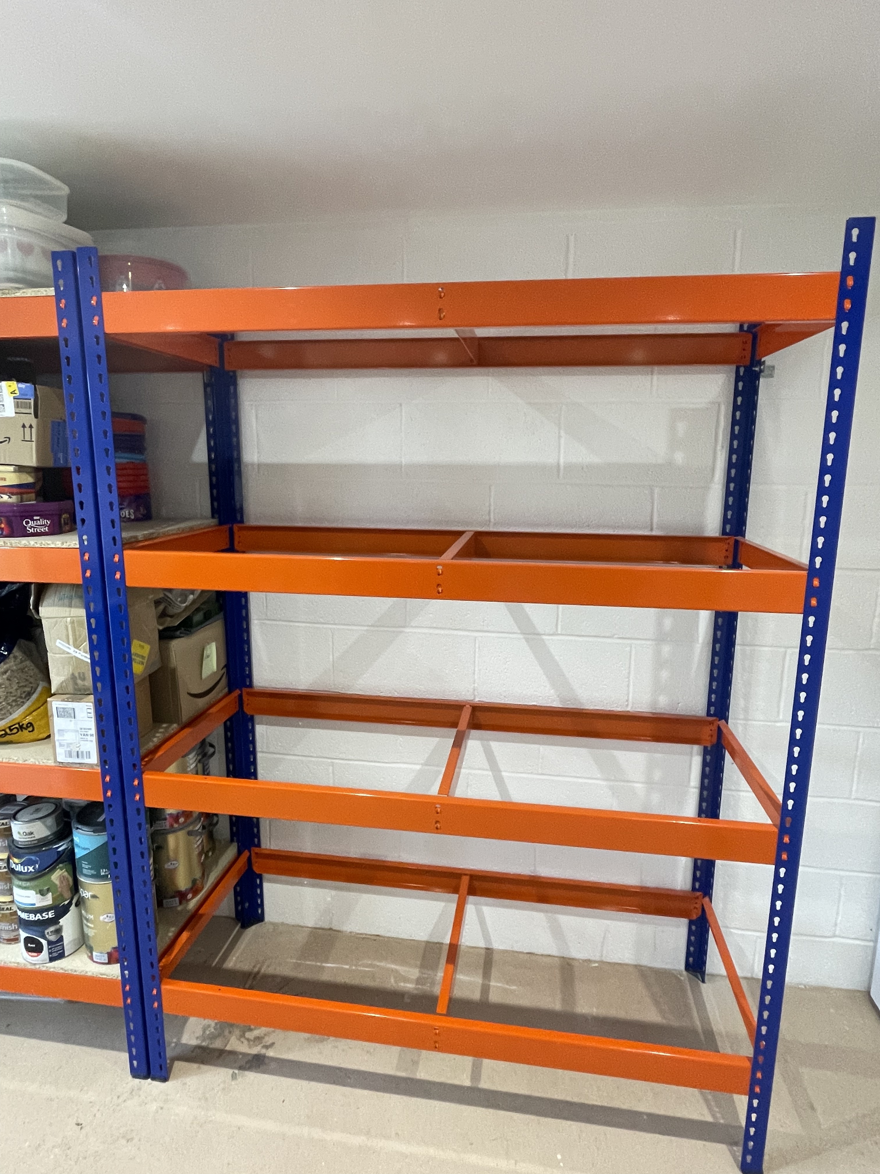Our new garage shelving arrived on Friday so I took the opportunity to empty the garage and build them. The garage has been a mess since we moved and filled it with a load of boxes from the farmhouse – it’s been impossible to find anything or actually use the room. So building the shelving and sorting through boxes we’d accumulated over the last few years has been as therapeutic for me as it was for John to clear the house. Plus I got to bash things together with a mallet which is always fun and stress relieving!! There are still some boxes to sort through but already it looks and feels better.