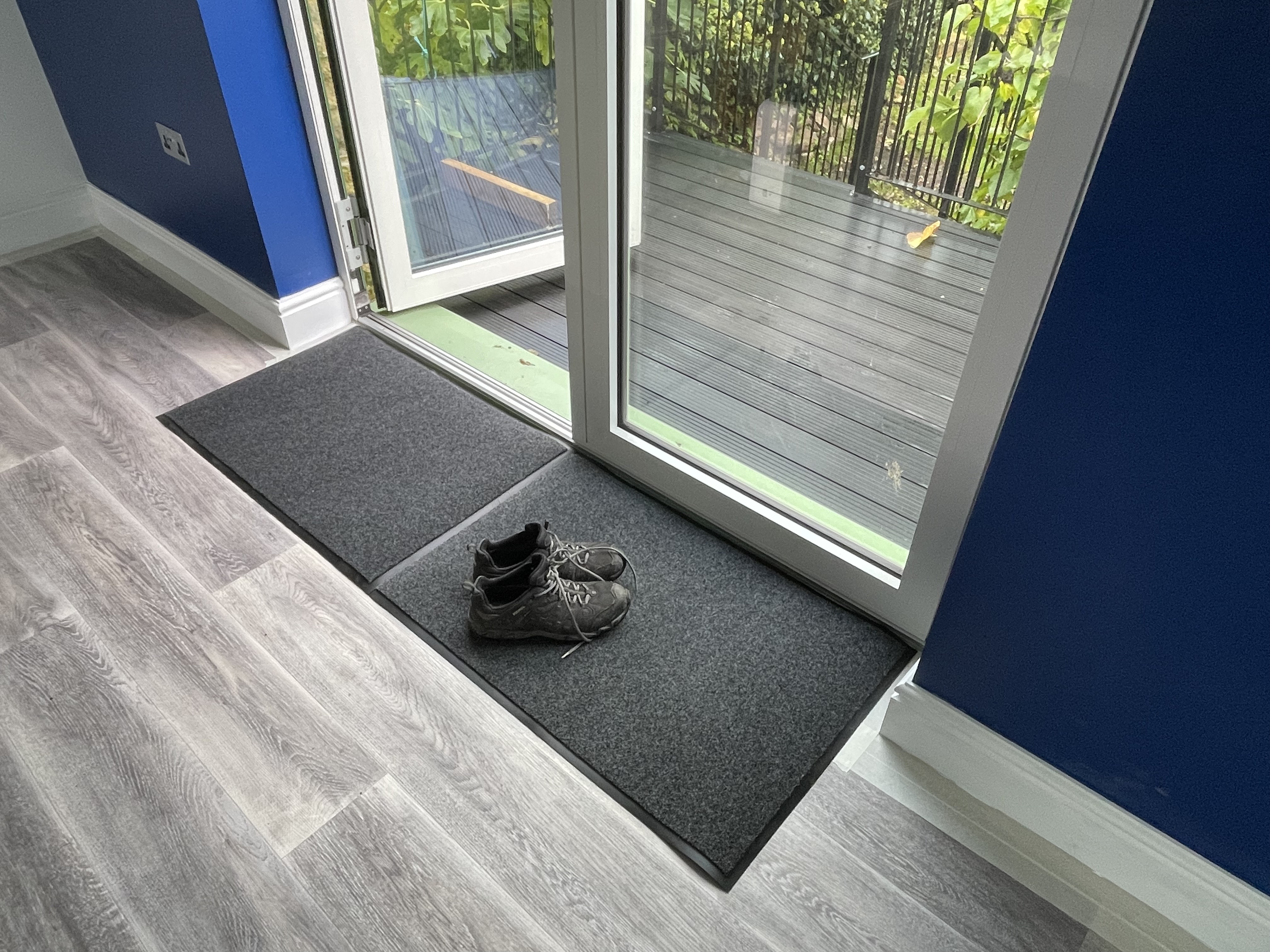 We’ve made more progress in the New Barn too. In the first floor games room I painted the second coat on the skirting boards, and the doormats arrived to make it feel more welcoming. As we want the room to be flexible about how it’s used, we’ve ordered a trolley to move the pool table up against the wall when it’s not needed (it’s just over 200kg so there’s no way we’re lifting it!!) – so John put the trolley together and we’ve stored it in the laundry for now. I finally got round to filling the holes in the wall in the laundry too – one of which appeared when we put up the garage shelves on the opposite side of the wall, and one which appeared when the electricians were fitting the light switches. Now I just need to make time to touch up all the various walls/ceilings in both our house and the New Barn…