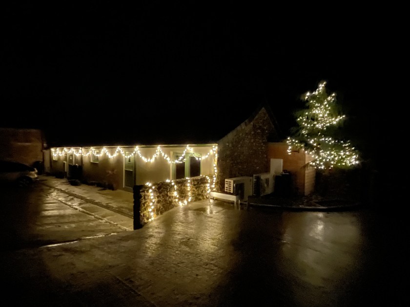 We’re typically pretty late in decorating the house for Christmas but as we’re now open to guests we wanted the place to look a little festive. John’s started with putting Christmas lights all around the outside of the shippon – both along the road and in the courtyard. It looks so pretty lighting up the darkness, even if the storm did decide to blow the strings around a bit. We had planned to decorate the house too but our next guests don’t celebrate Christmas so we’ll decorate between bookings, ready for our Christmas week guests.