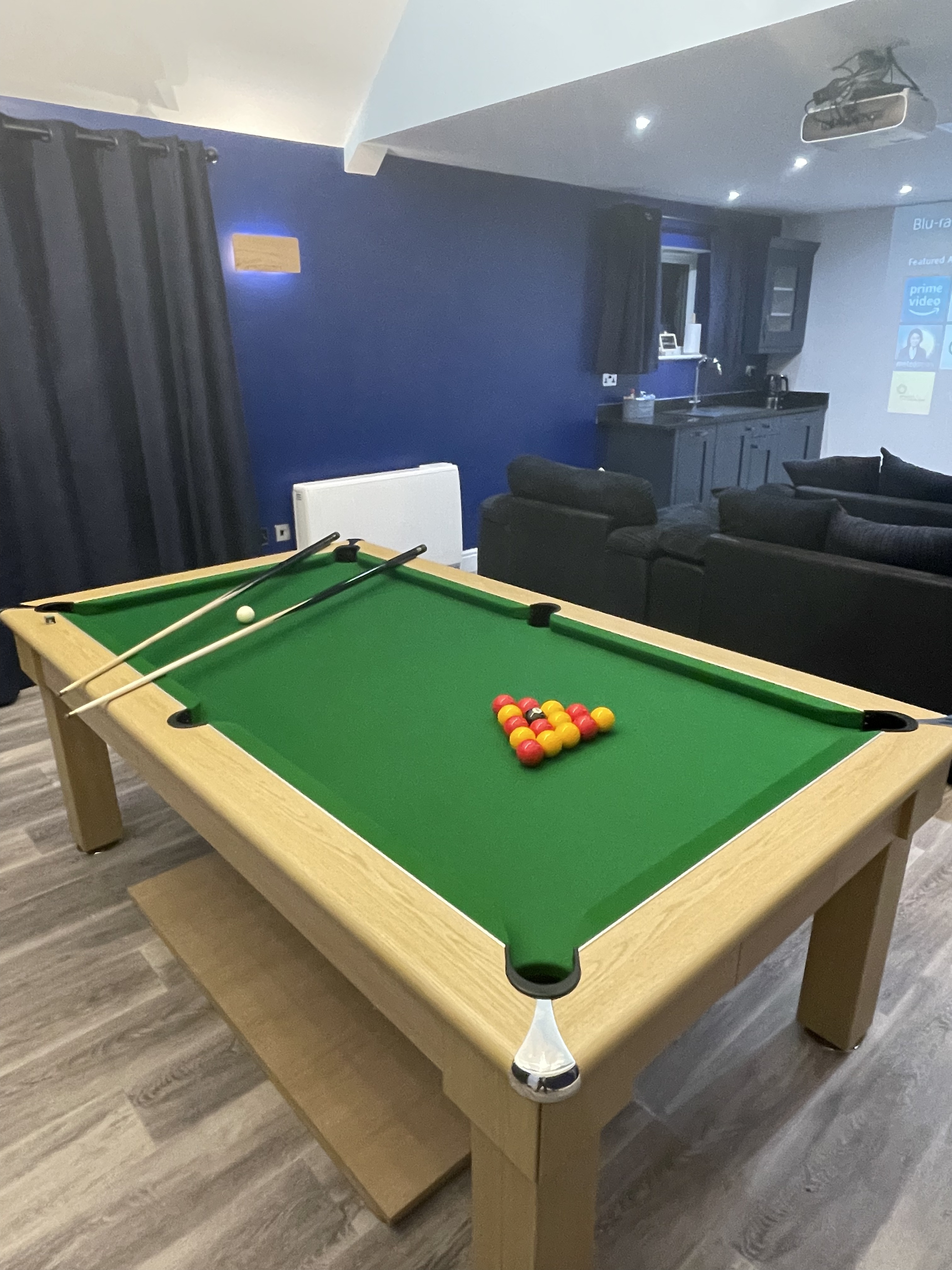 We’ve very nearly finished the games room (it feels like I say this every week though!). This time we installed the cue rack for the pool table, replaced a curtain that had been sent with the wrong colour eyelets, and secured the DVD racks to the wall, sorting through the DVDs so they’re in some sort of order. Our final job is to put up coat hooks but as the ones we have weren’t sent with suitable fixings, we need to find some first. Oh, and we also need to get the flooring people back to fix some bubbles we’ve found, and order some side tables but then we’re ready to go! We’ve taken photos ready to add to our listing for future bookings, which we’re aiming to do before Christmas as we’re told December and January are busy months for booking staycations. We’ve already had two more bookings this week – one of which includes our first summer holiday booking – although January through to mid April are still relatively quiet. We do have to squeeze in a garden overhaul at some point when we don’t have people staying but it would also be nice to have a few more bookings in the diary!