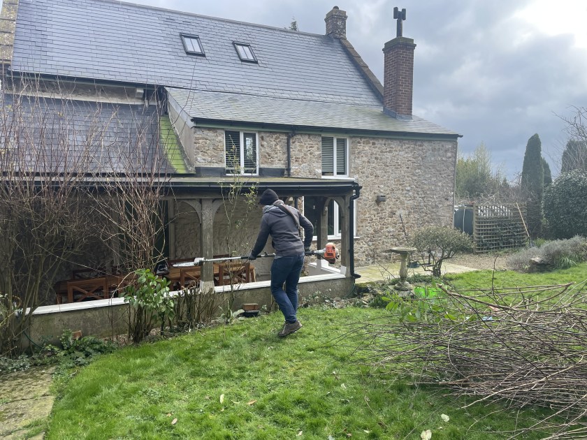 Another week without guests, and frustrating as it is to have such a quiet month, at least it’s given us time to tidy up around the Farmhouse. This time we focused on clearing and cutting back the trees and bushes around the back and side of the Farmhouse – areas that would be difficult to access with guests. We’ve weeded the flower beds (more manageable than the front as we only did them last summer and they’re much smaller); cut back the buddleia, lavender and various shrubs and hedges around the garden; and cut back the lilac so it doesn’t look as wild as it did previously. The garden looks much tidier now.