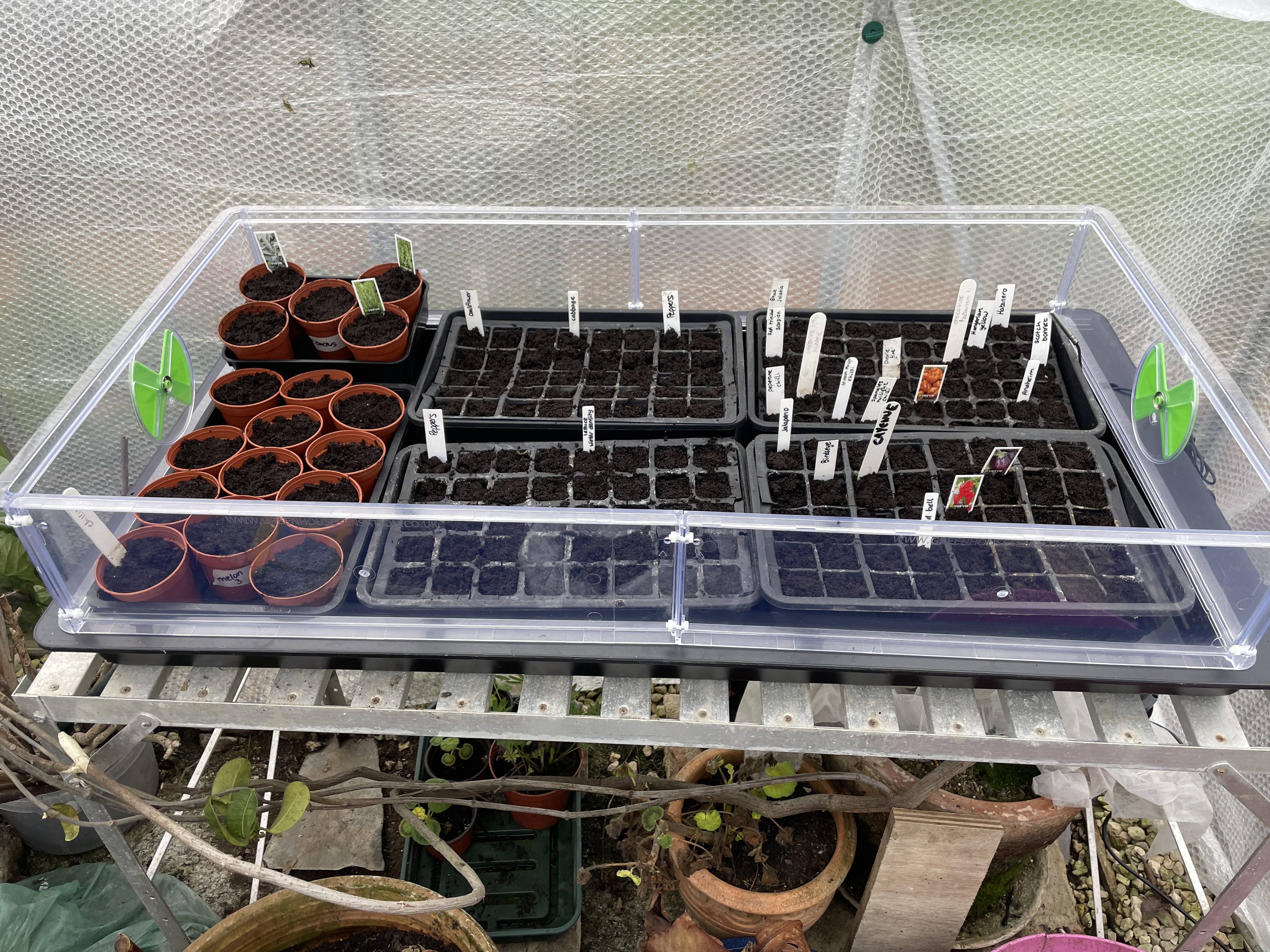 With the disappointing year we had with our vegetables and fruit last year, we decided to start early while we have the time and before it gets busy with cleaning jobs. We put the propagator up in the greenhouse, using our new power supply in there for the first time, and have filled it full of vegetable seeds to start with. We give all of our guests fresh flowers so this year I’m also hoping to grow some of them ourselves to save money – so that gives us a new challenge as growing flowers isn’t really our forte!