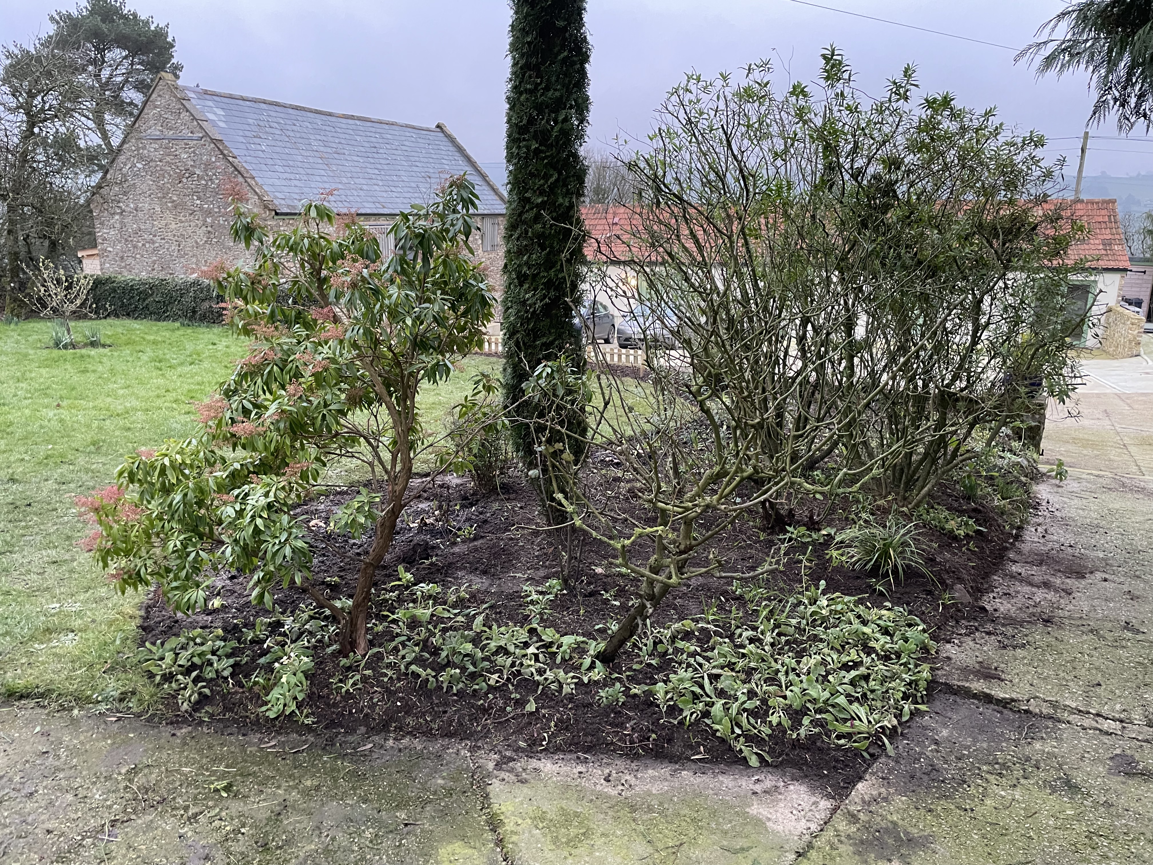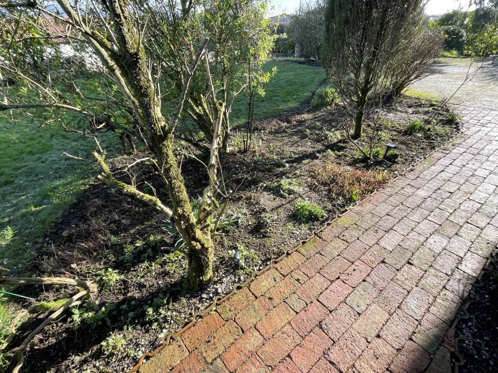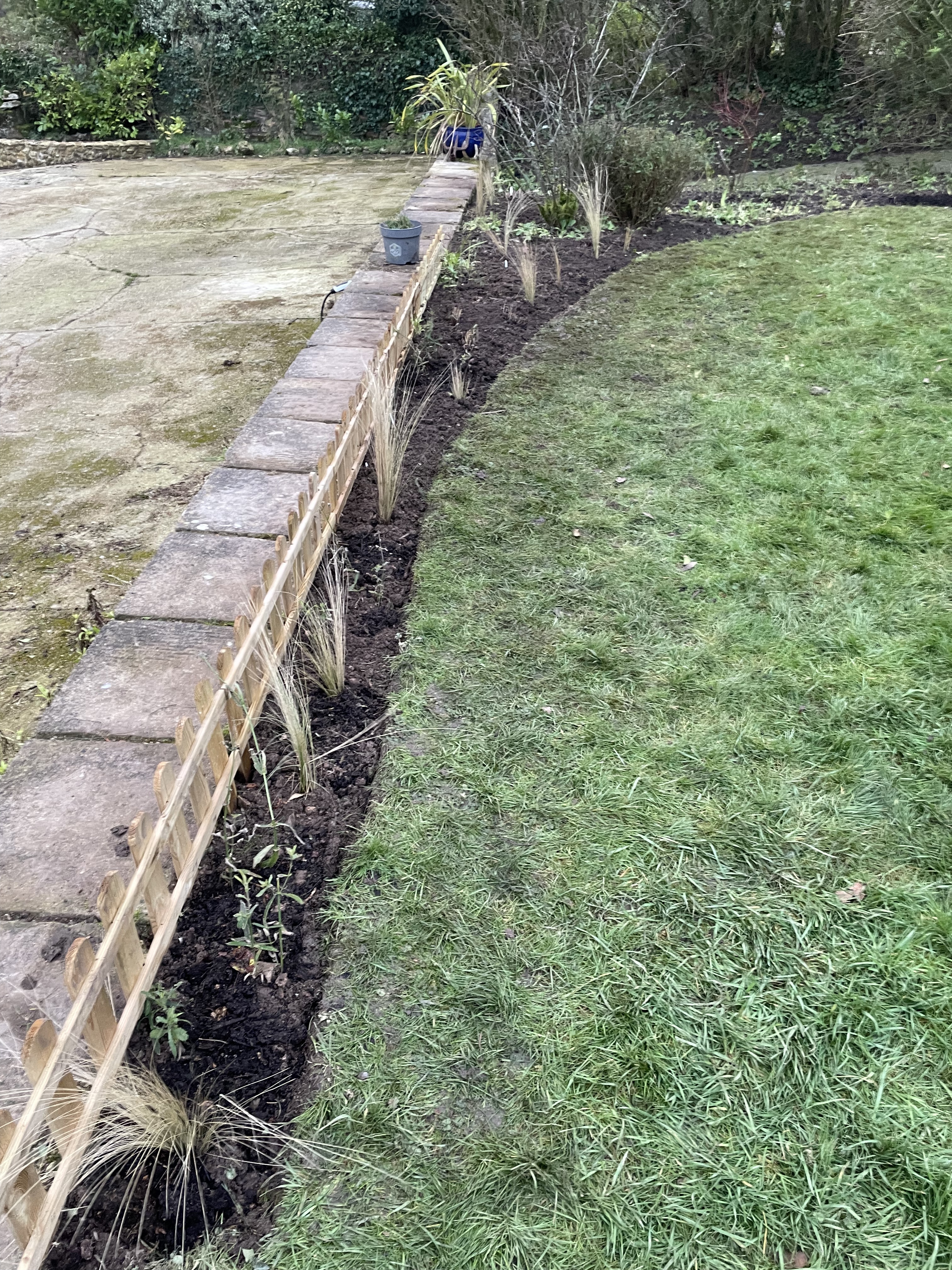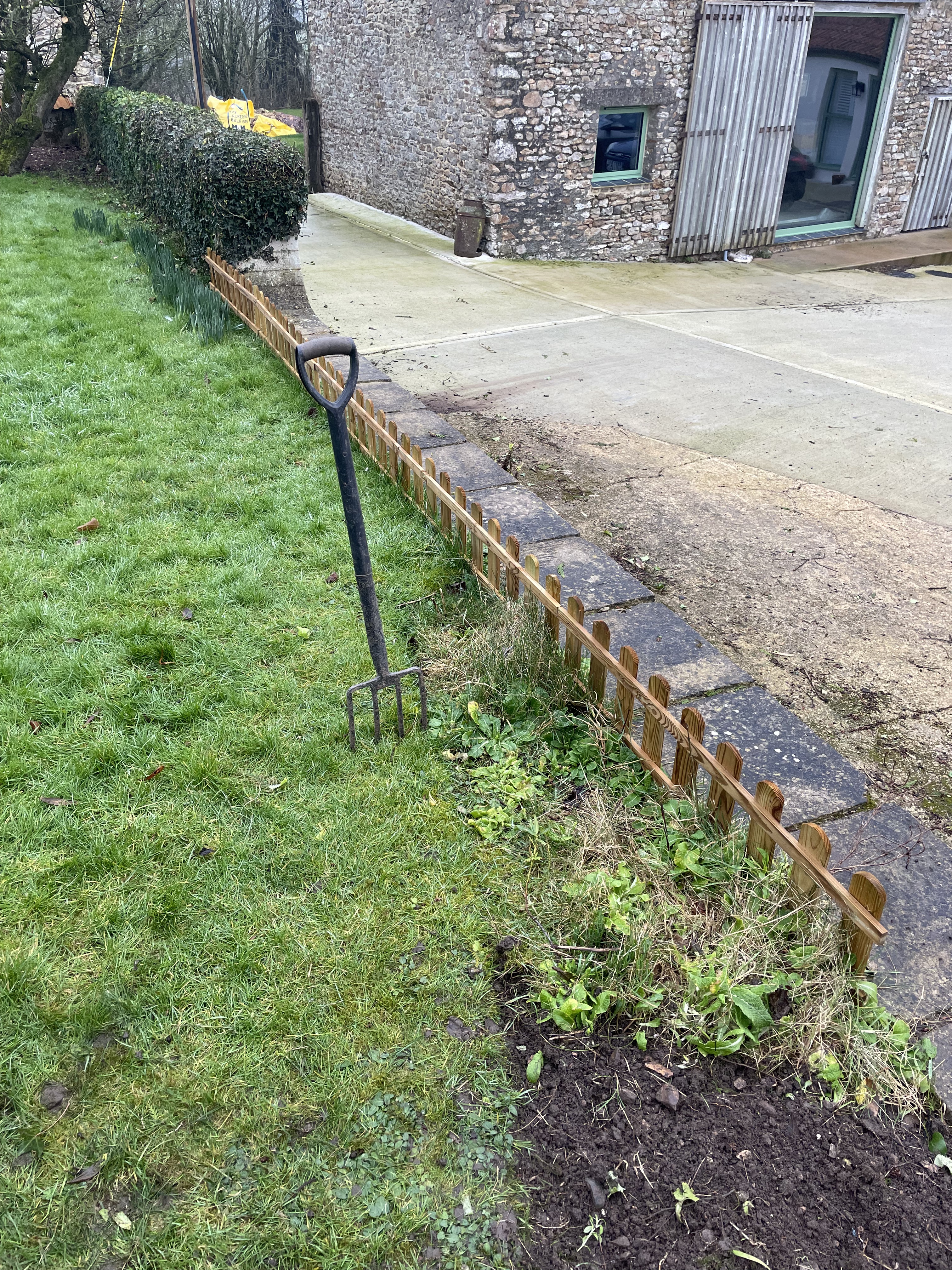 In the main bed we took out most of the primroses that had taken over the bed and relocated them to the snowdrop bank and beneath some of the shrubs as you walk up the driveway. We extended the bed along the picket fence up to the daffodils that were planted before we moved in, to create a break between the lawn and the courtyard, making it easier to mow the lawn too as the grass isn’t up against the fence now. And somehow we also managed to plant all of the plants we’d kindly been donated by my parents – it helps to have a garden designer in the family who is willing to dig up various seedlings from their garden and pot up for us to take!