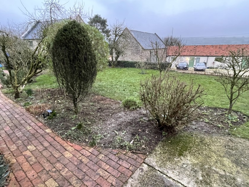 This week we’ve had a near-single focus – to finish tidying the Farmhouse gardens ready for the season. It’s our last ‘empty’ weekend which meant our final chance to weed the flower beds and cut things back without getting in the way of our guests, so I took Friday off to get as much done as we could. The extra day helped – over the course of the weekend we cleared all the remaining beds, including redoing the main bed to remove the deep grass roots and the three-cornered leek that we’d missed first time round. Brambles had taken over large parts of the flower beds bordering the brick path to the games room, so it took a lot of clearing. And John cut back the magnolia growing against the Farmhouse and the last bushes in the front beds. Our bonfire pile is growing!