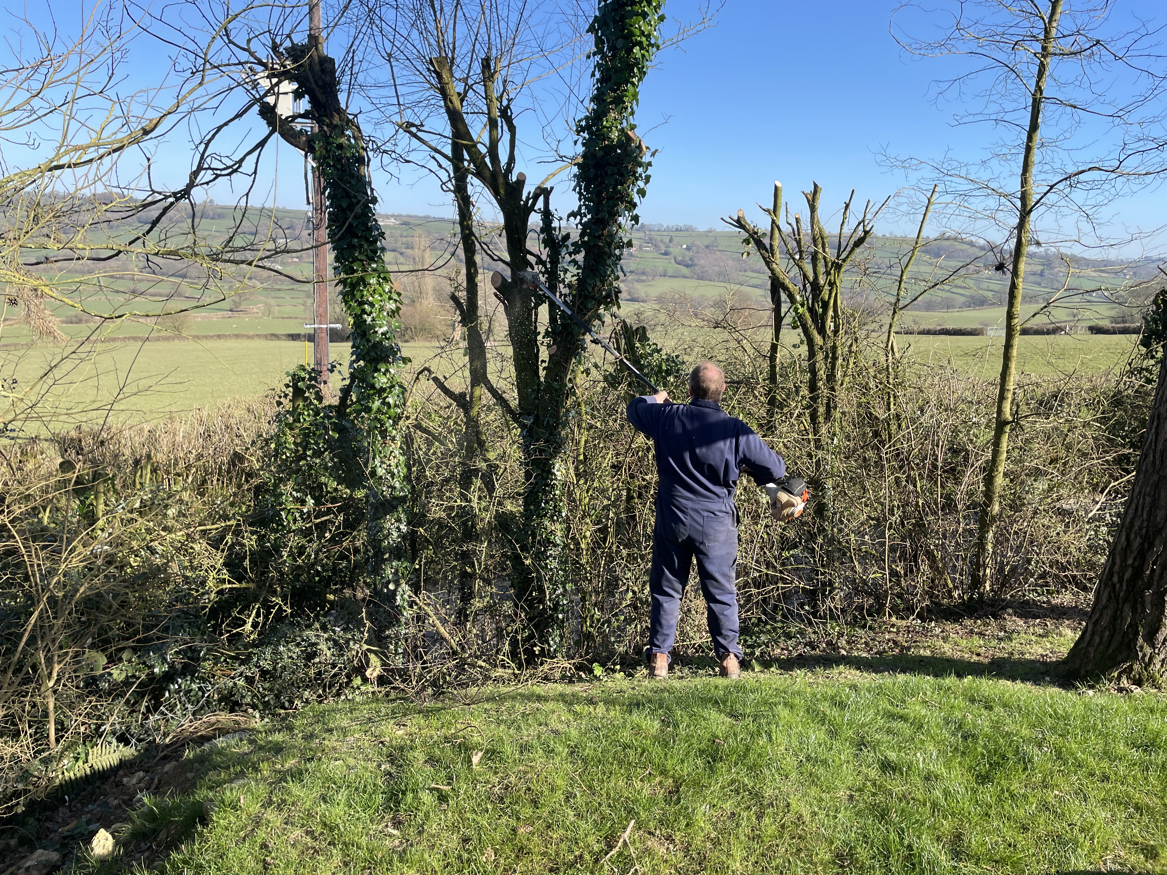 In our new back garden John enlisted the help of our lovely neighbour Nick to cut back the bushes along the roadside. He’s a professional hedger and had planned to cut it right back and hedge it – where you cut through most of the trunk and bend it horizontally so the bush regrows along the length of the trunk and ends up much thicker. Unfortunately the bushes have been left for too long and the trunks are too thick to bend, so instead he and John cut everything right back. It’ll still encourage new growth and create more of a barrier between our garden and the road. We now have a beautiful view across the valley and there’s so much more light in the garden too. Philip – one of our farmer neighbours down the road also helped us by taking away most of the green waste. There was so much I honestly don’t know what we would have done with it otherwise! We’re so lucky to have moved somewhere with such great people living nearby who are so willing to help out.