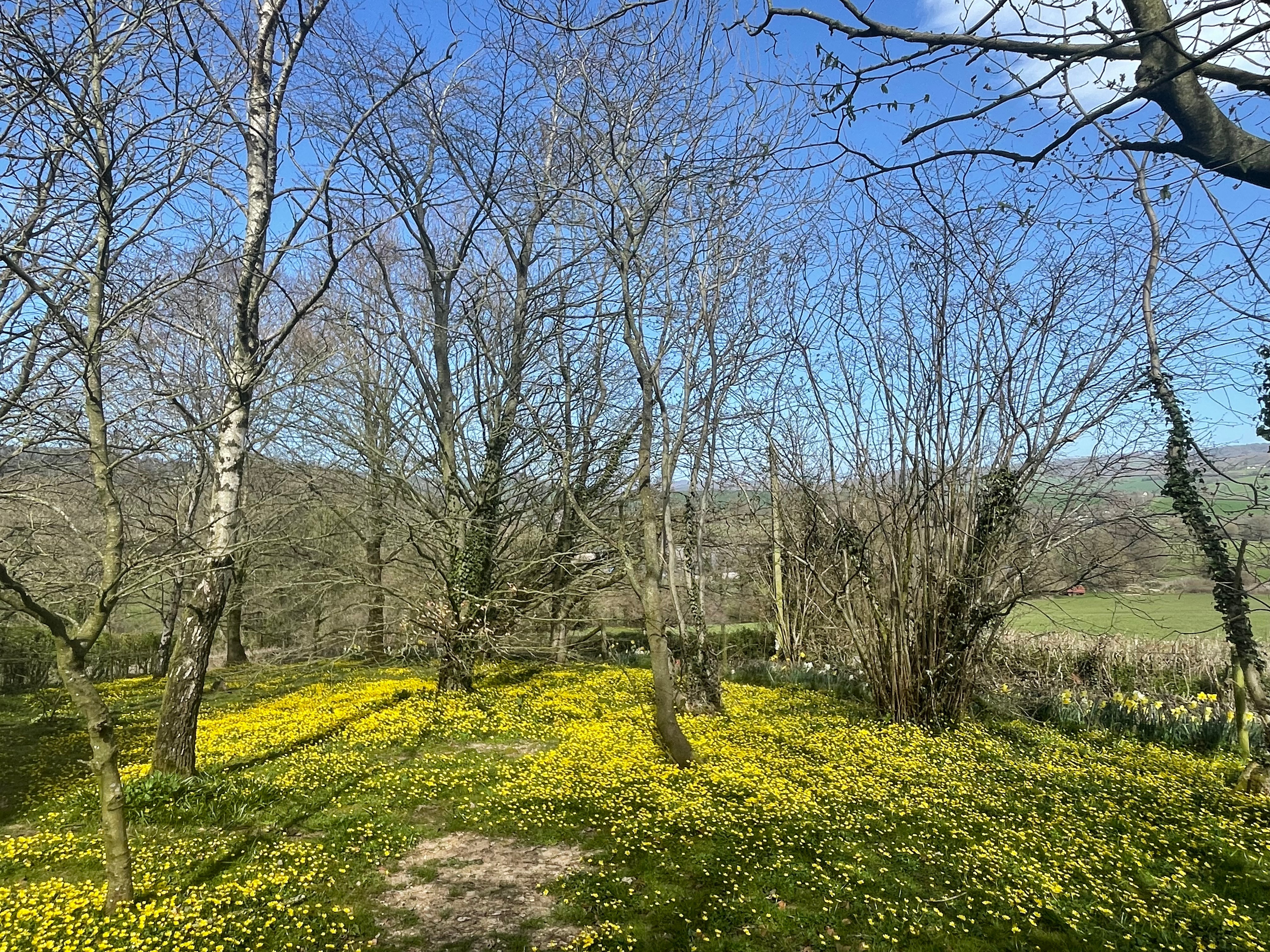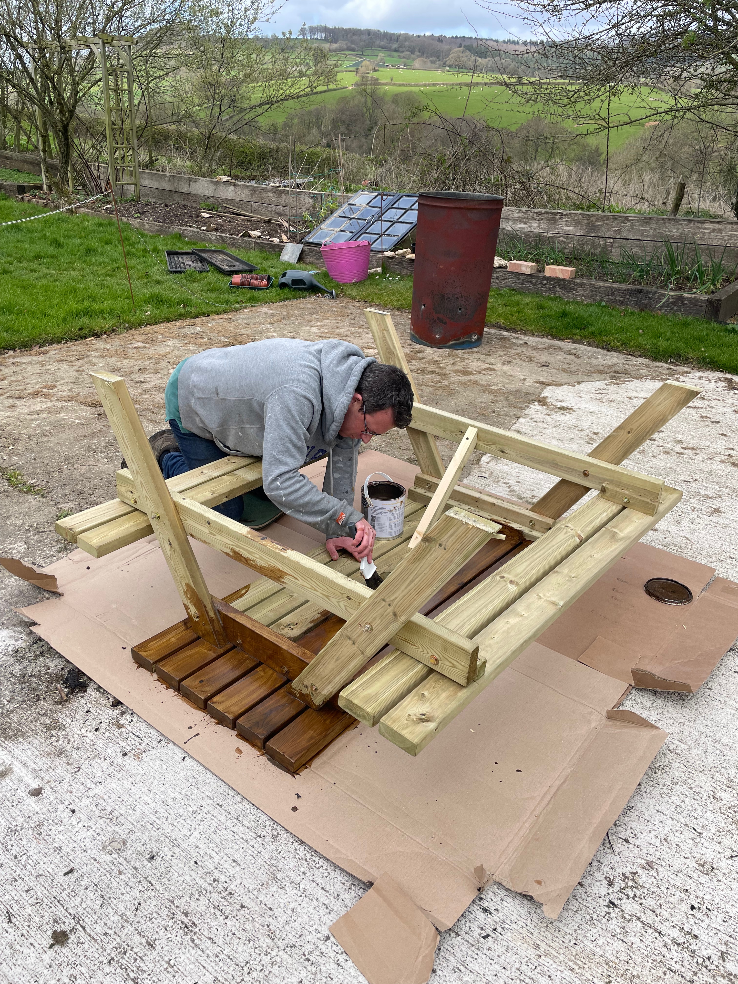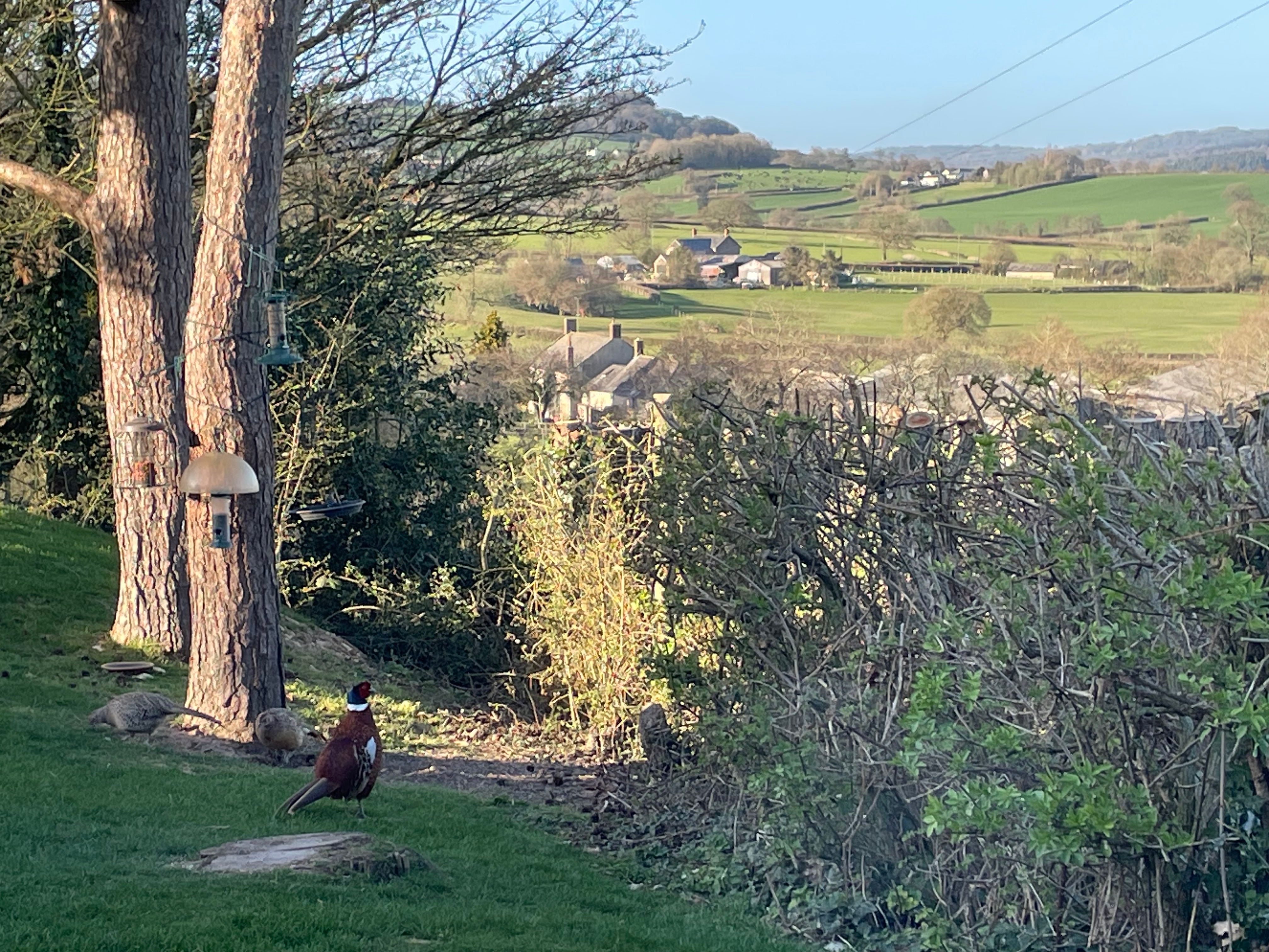 This weekend we built and treated a new picnic bench for our guests to use in the wood, so we now have seating for eight people. It’s the perfect place to enjoy the views across the valley – at the moment the lesser celandine is out throughout the wood and the daffodils we planted a few years ago line the fence beautifully. A few patches haven’t taken so we’ll try and replant them this autumn – it looks much better when it’s a continuous yellow line. Guests might even see one of our pheasants who live between the wood and next door’s field. Now we’re getting into Spring, our male has attracted his harem – we’ve started seeing up to 4 females clustered round the bird feeder.