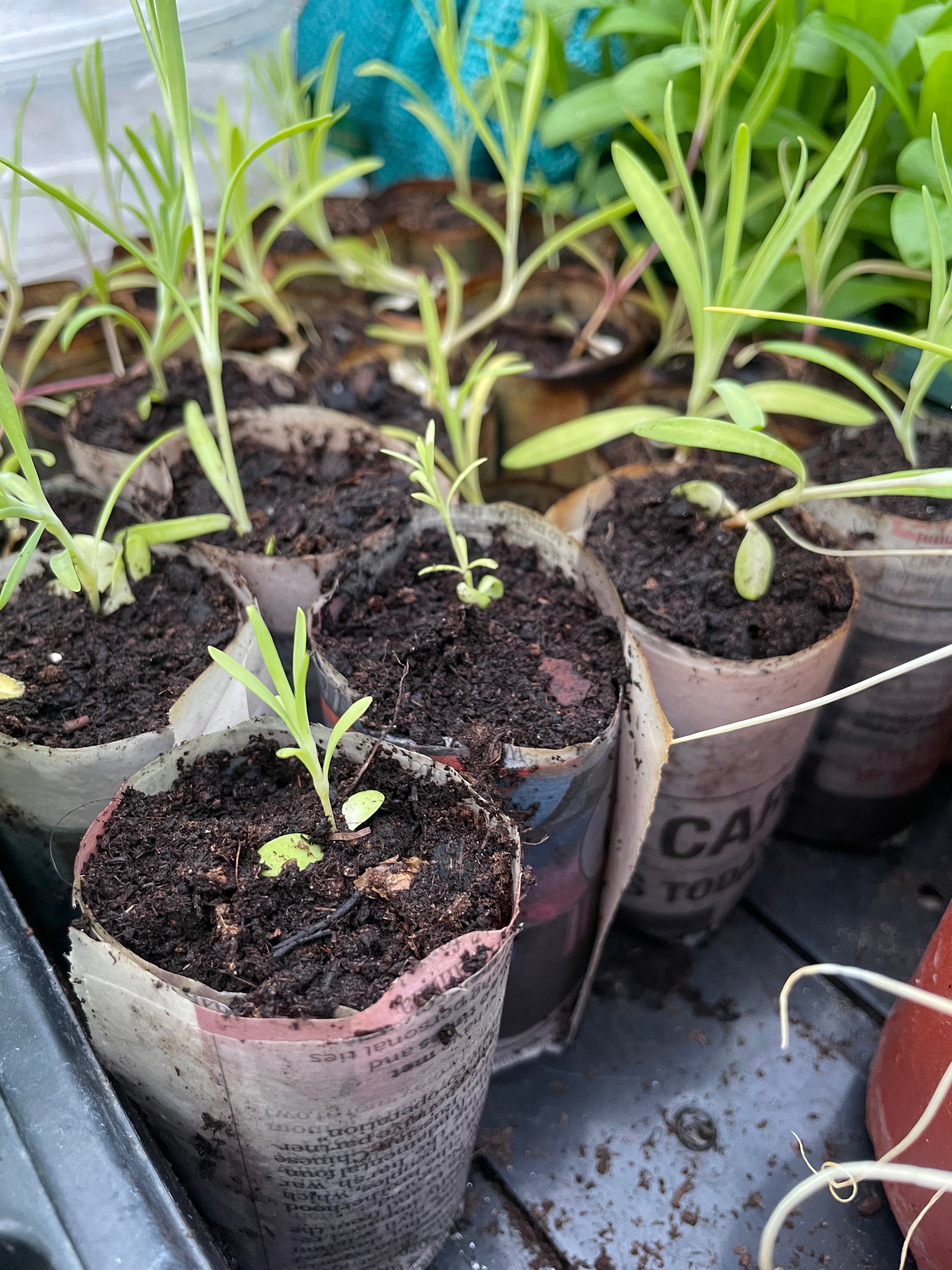 Planting everything out means I finally managed to make enough space to pot up more seedlings and plant out the next round of seeds. During our build, our architect kindly gave us a device you can use to make pots out of newspaper which is a complete gamechanger to keep on top of all our seedlings as we don’t have enough pots or enough space for the larger pots. I’ve spent a long time potting up seedlings into newspaper pots until we’re ready to plant them out. Now we just keep running out of newspaper…