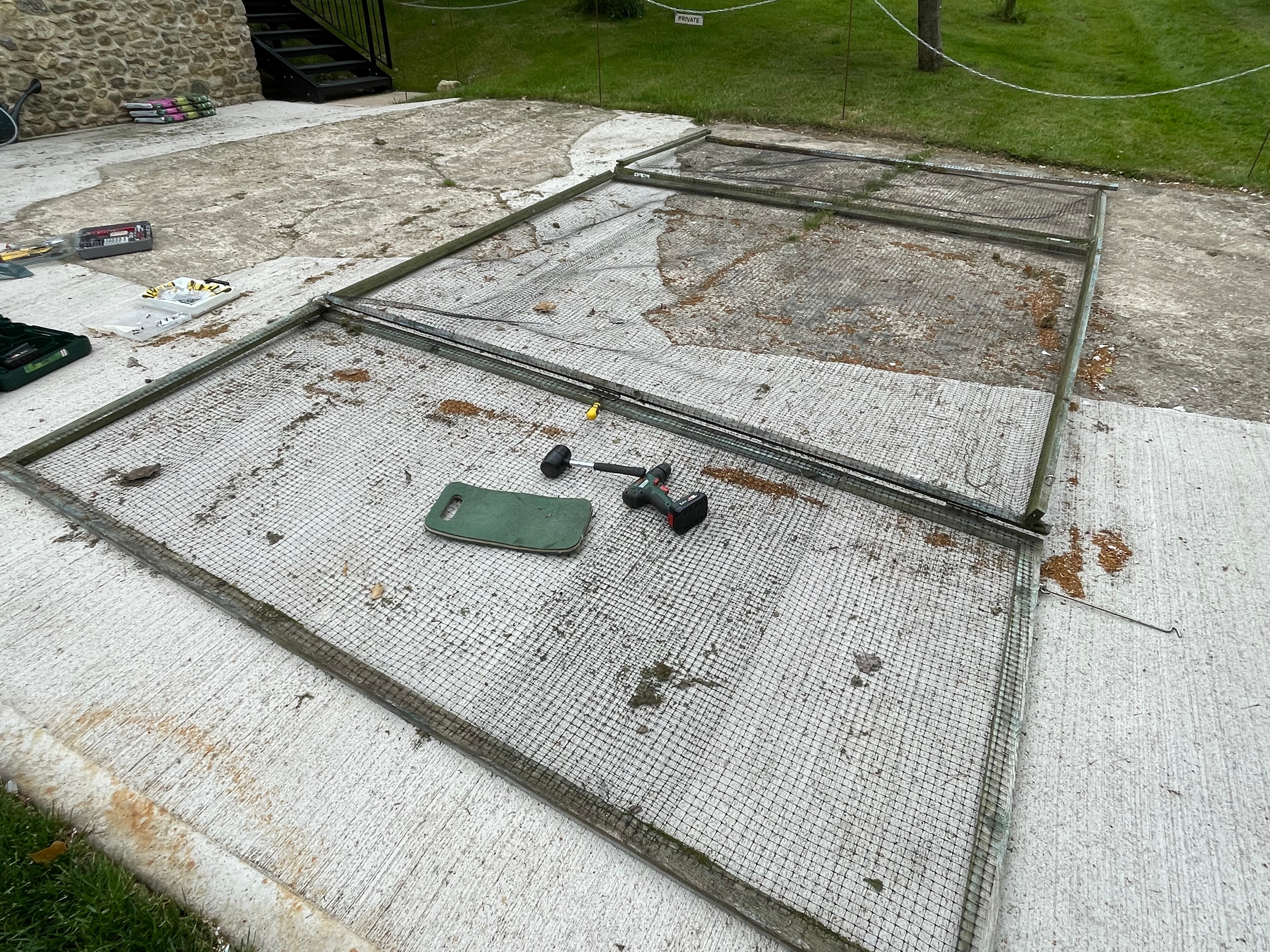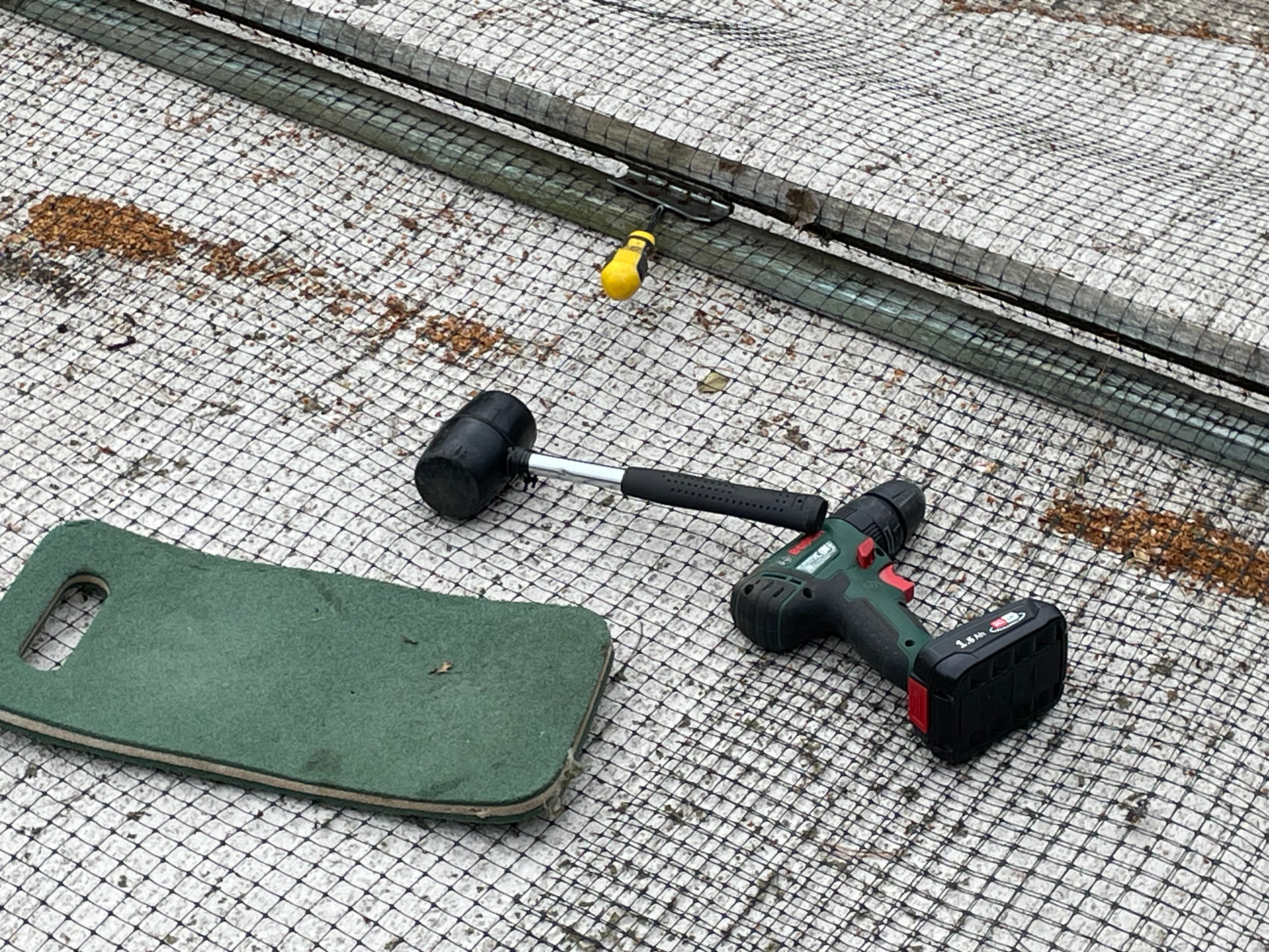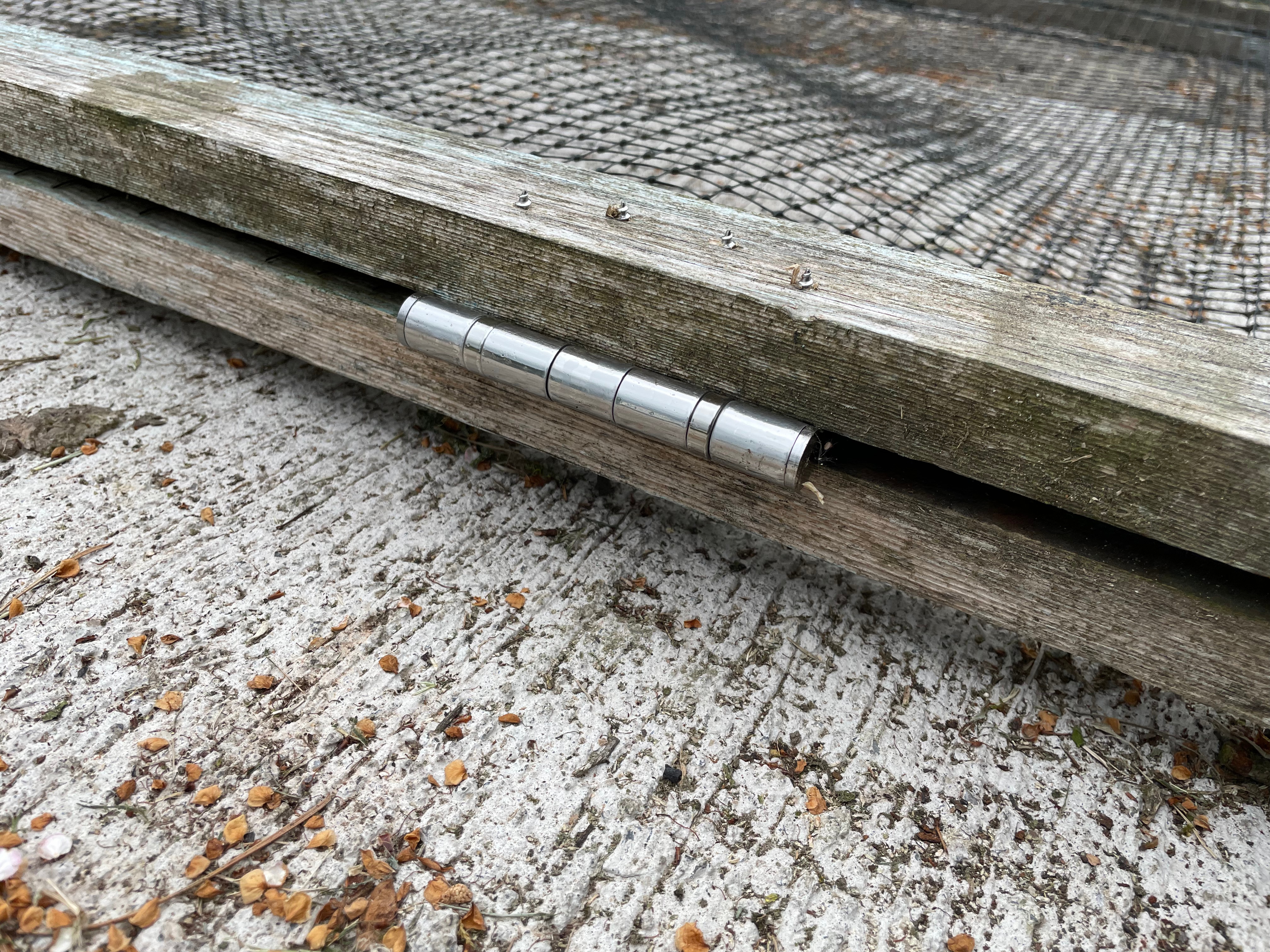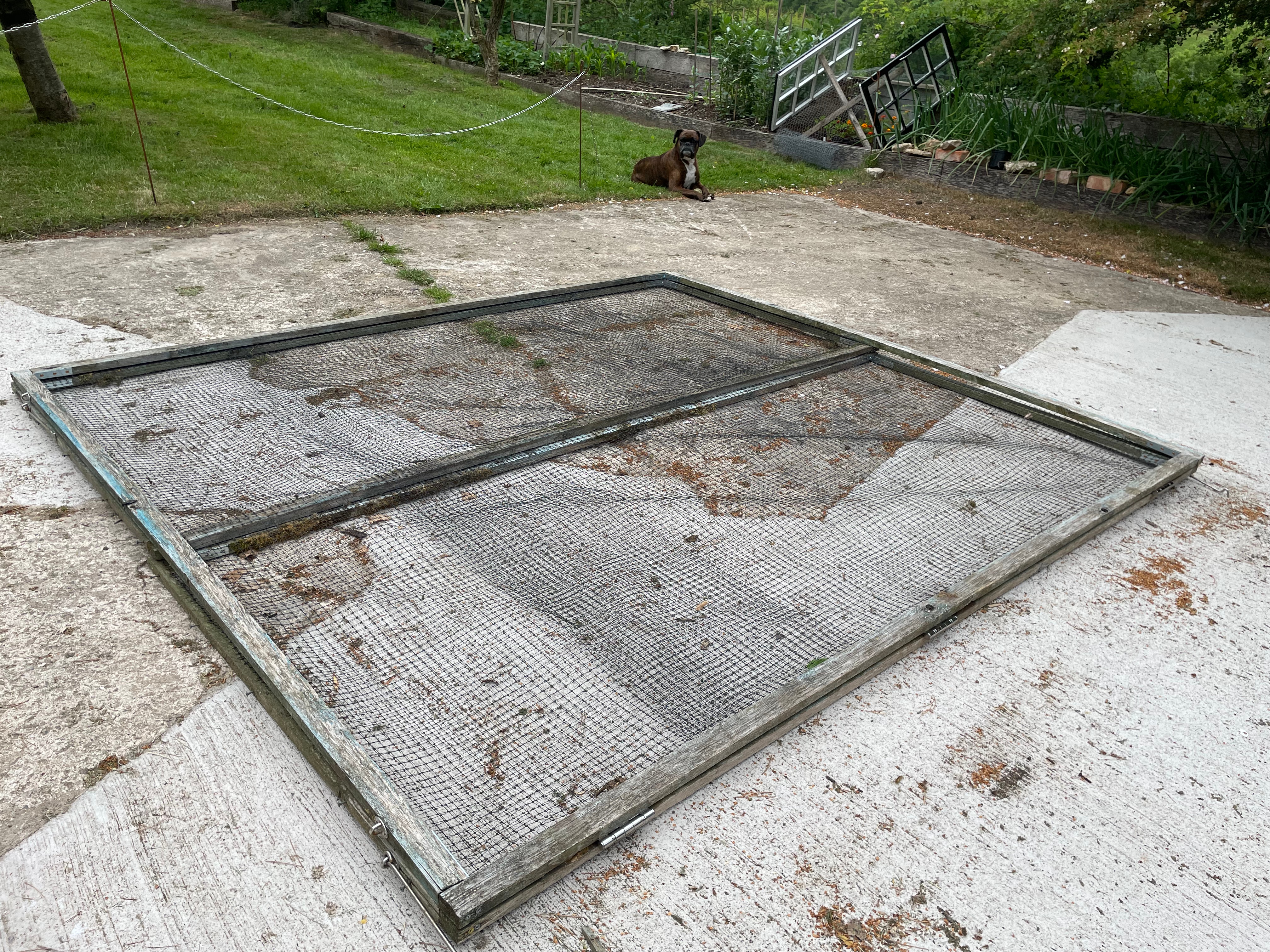 We spent most of the rest of the long weekend getting through gardening jobs. There’s always so much to do!! The most important job – and one of our ‘major jobs for 2025’ was to mend the covers for our vegetable beds in the kitchen garden. We’ve already had our vegetables nibbled (or in the case of some of the lettuce and chard, completely demolished) so delayed planting most of the vegetables out until the covers were done. The hinges on the vegetable bed covers had rusted closed so John had to force them off with a mallet and screwdriver before replacing them with exterior stainless steel hinges. The corners of the frame had also been damaged because of the hinges, so he had to reattach them and reinforce them with metal corners. It took us so long to make the covers that we’re very keen to keep them going as long as we can!