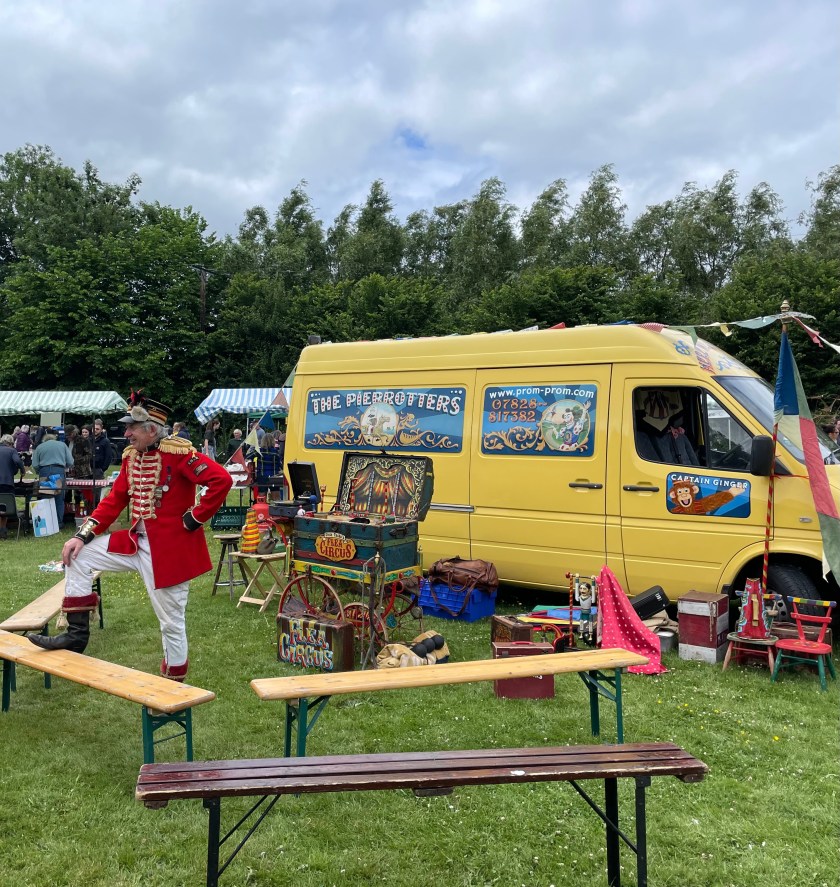 The second Bank Holiday Monday in May always means the Stockland village fair. It’s an eclectic mix of entertainers, games and market traders to keep people amused, and this year was no exception. There was an electric mini train you could ride on, children’s face painting, exotic animal petting, vintage tractors and camper vans, and all sorts of games such as welly toss, bat the rat, hook a duck and hoopla. Local organisations were demonstrating their skills – including sheep shearing and hedgelaying (who were actually making a wooden chair). We wandered round stalls selling everything from handmade crafts and plants to clothes and bric-a-brac. You could even pick up pet chickens from a local poultry seller. And throughout the afternoon there were performances from Honiton Band, a flea circus and a folk group. It’s always an enjoyable way to spend the afternoon and catch up with our various friends we see there.