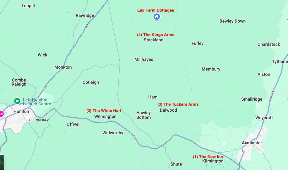 And finally – we spent Saturday on another pub hike – this time heading South to try out two new pubs that we’ve not been to before. We started with the longest leg out to The New Inn in Kilmington near Axminster, then out to Wilmington to The White Hart, before heading back via The Tuckers Arms at Dalwood and The Kings Arms in Stockland as our final stop. The route we took was probably a bit too far to repeat – especially the stretch out to Wilmington and back, but it’s always good to try new places and they were pretty reasonable venues. We were all pretty exhausted by the end of it!