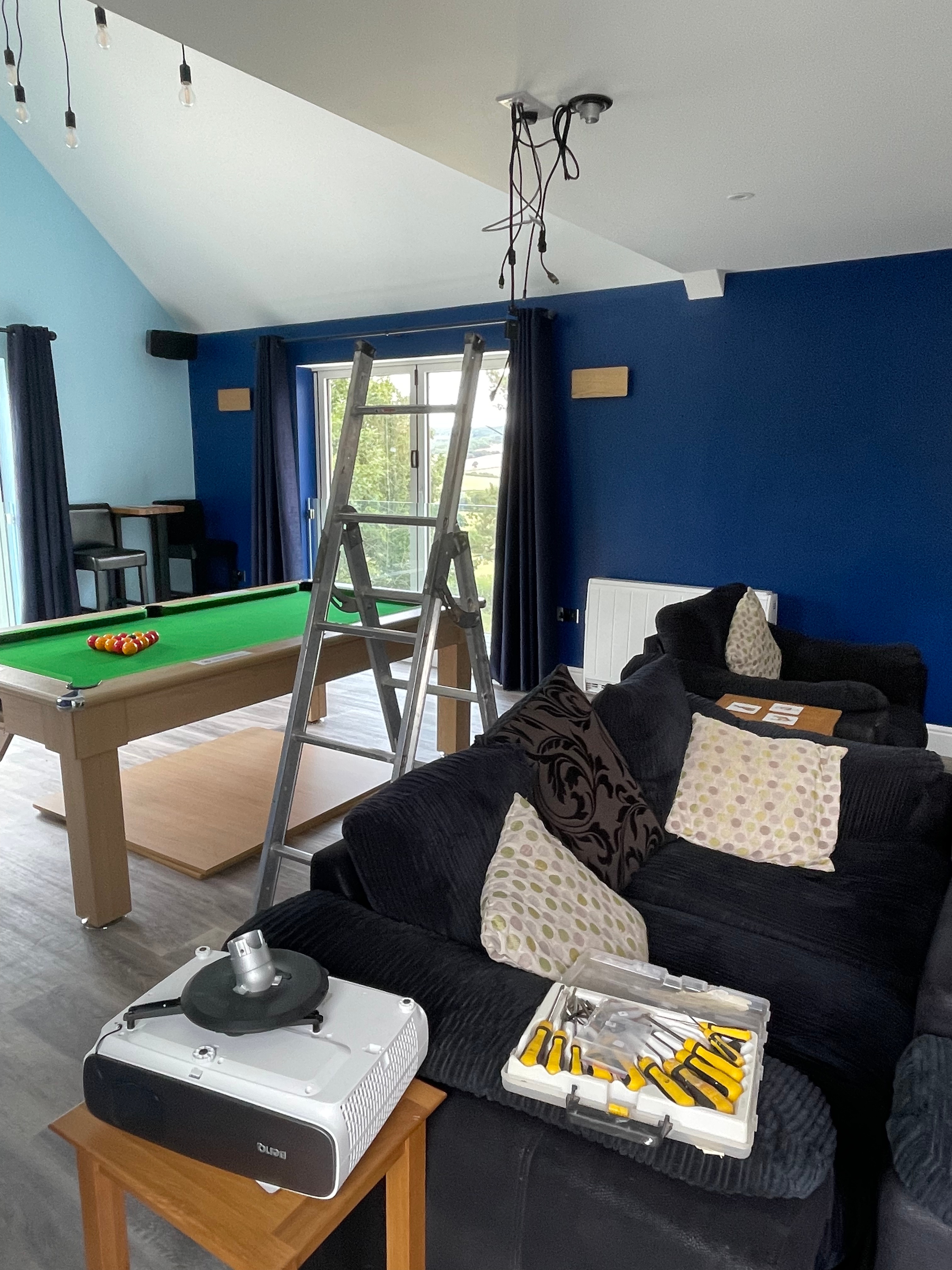 He started by sanding back and oiling the kitchen worktop to make it all smooth and shiny again, and gave the aga a good deep clean. We’re also hoping to get some time to paint the walls during the week and touch up the various scratches and cracks. We’ve had to send the projector from the Games Room back to the manufacturer as we suspected the dongle we’d put in to connect laptops to it wasn’t working. This will be more of an issue in future when we have more cottages completed and plan to set up a corporate away day offering, but we needed to get it sorted while the projector was still under warranty. The company wouldn’t send out a new projector until we’d returned our current one so we had to wait for a gap in bookings – luckily they sent a replacement one straightaway that works.