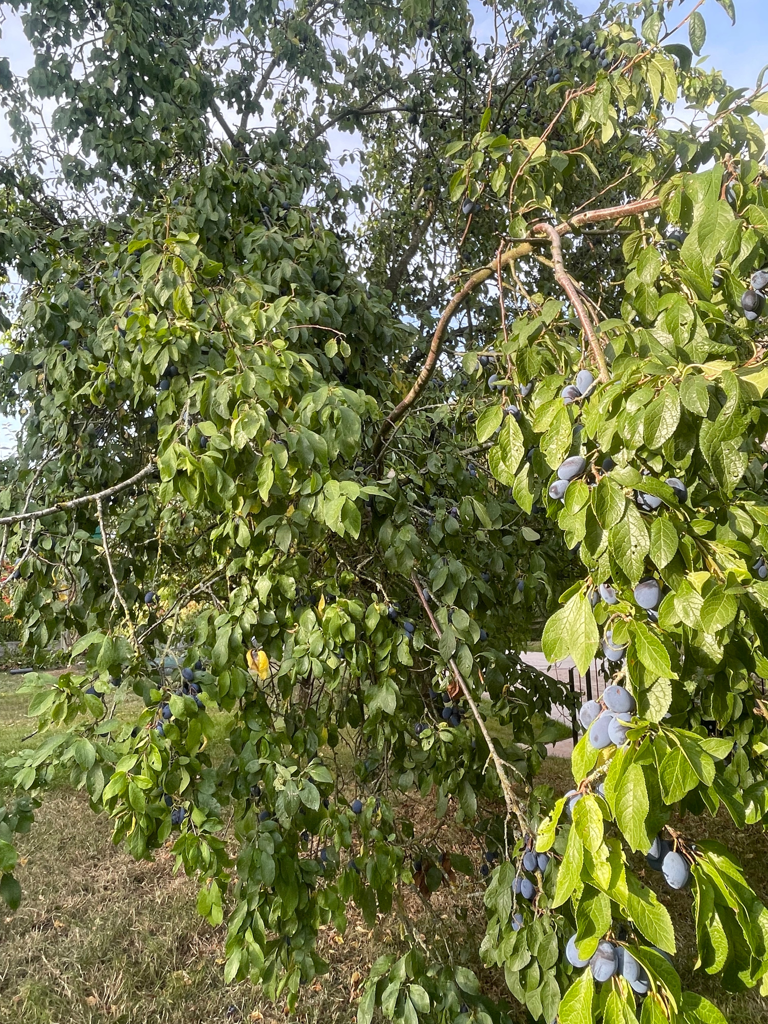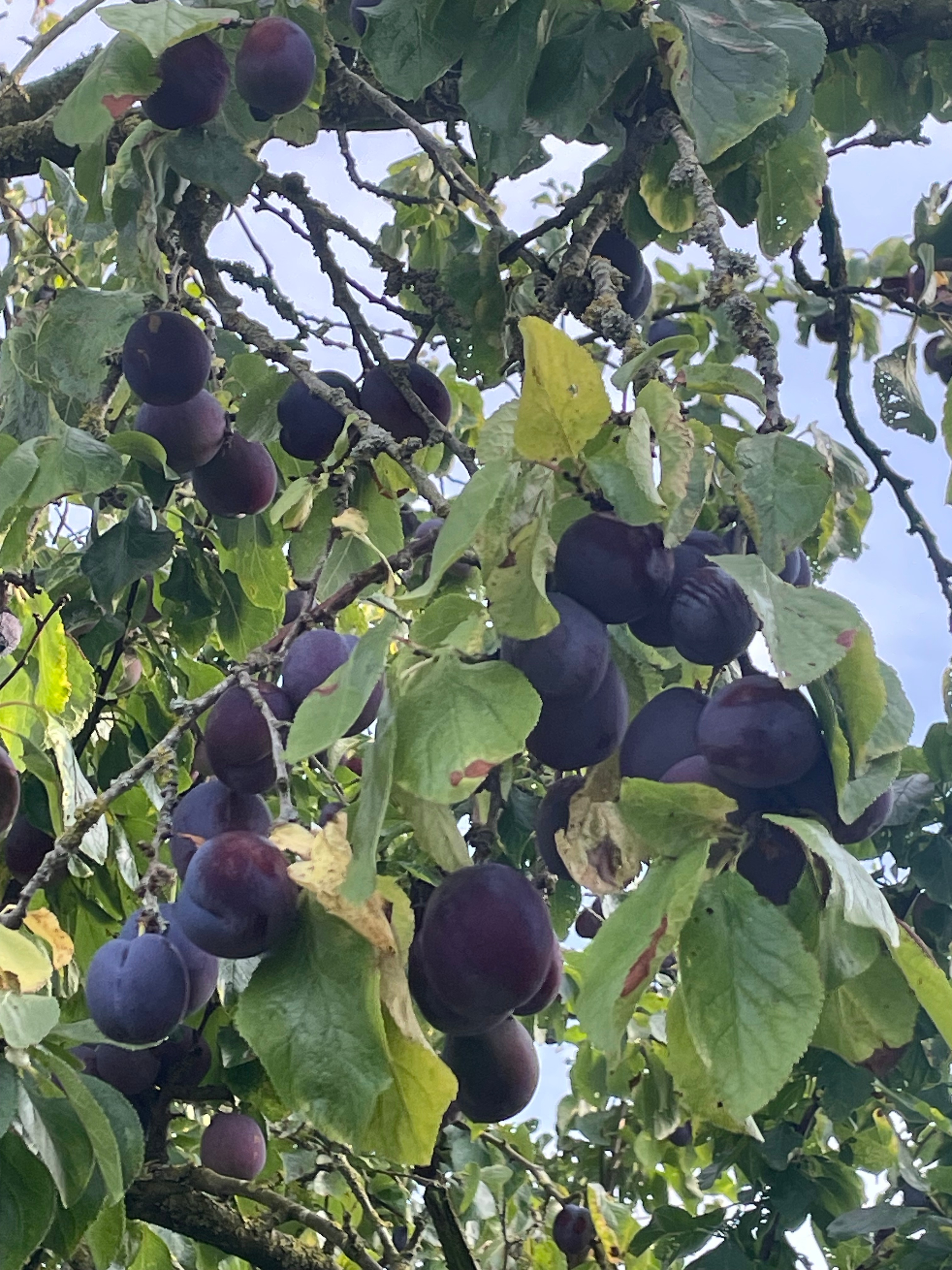 A little earlier than in previous years, this week our 2025 fruit season officially started. We’re having really difficulties this year navigating wasps, birds, squirrels and the heat when it comes to our fruit trees. We had a fabulous start with huge amounts of blossom and fruit, only to watch as bit by bit it disappears before it’s ripe or we get time to pick it. A few of our trees are also showing signs of trauma from the build last year, with weaker branches or parts of the tree that have concentrated on regrowing instead of fruiting.