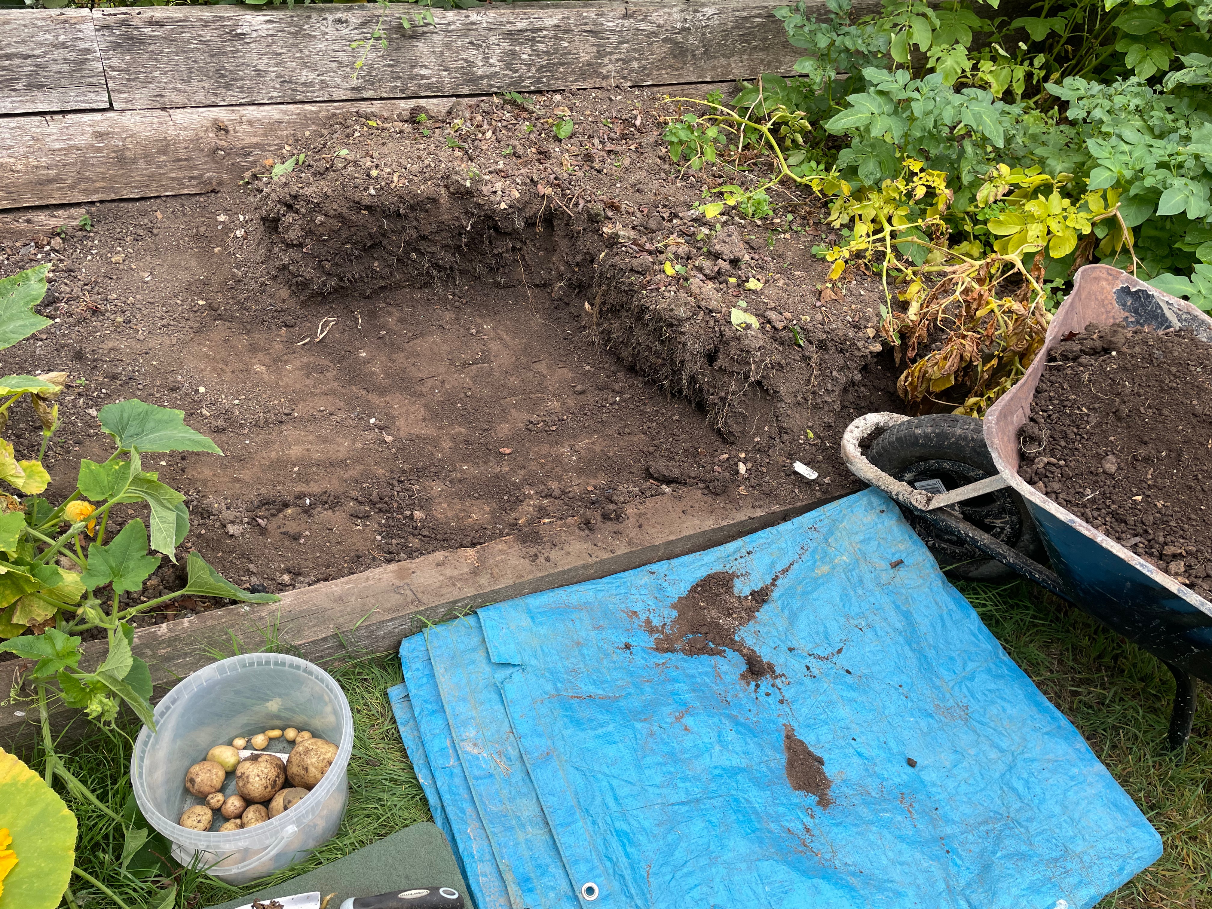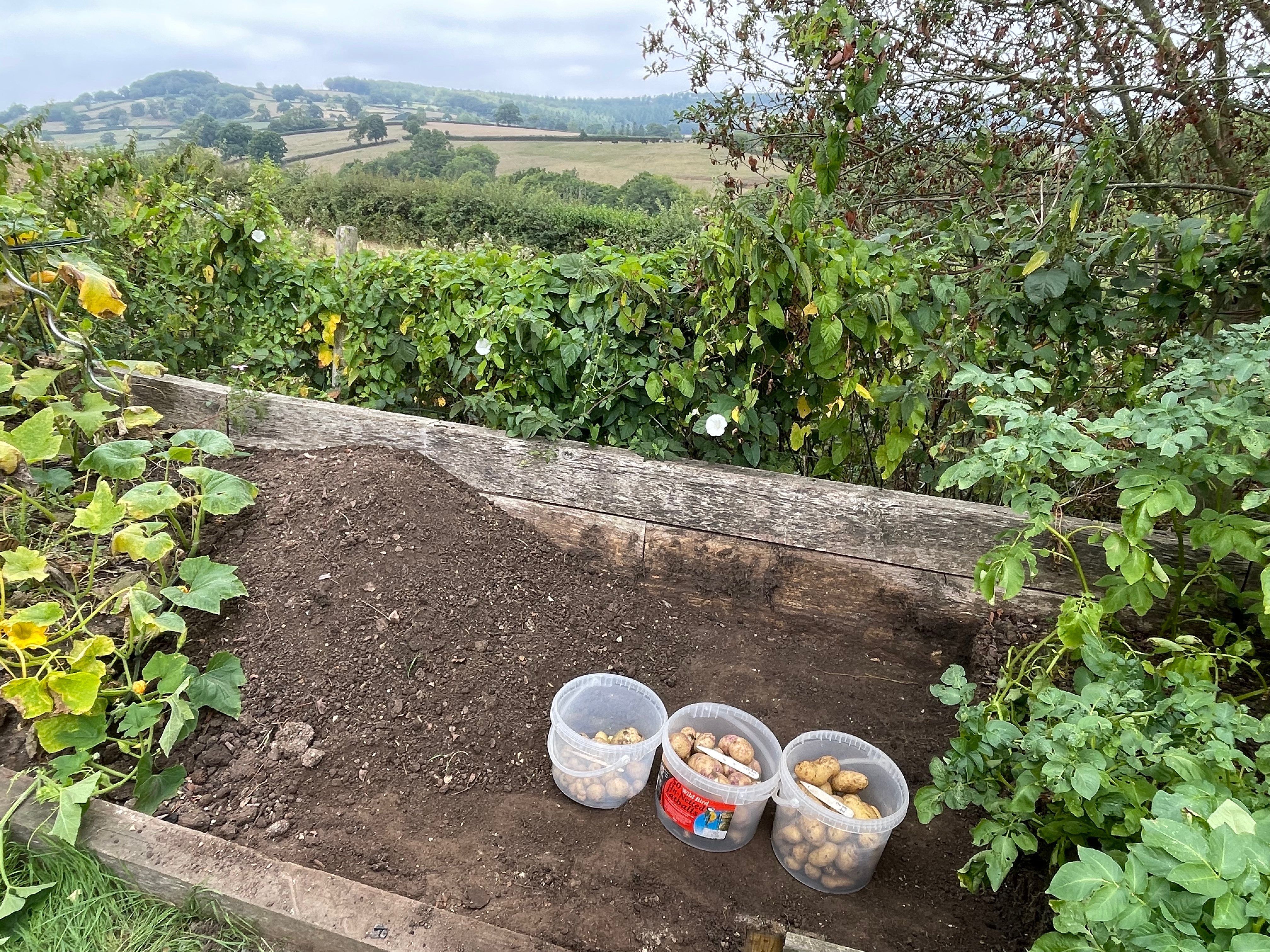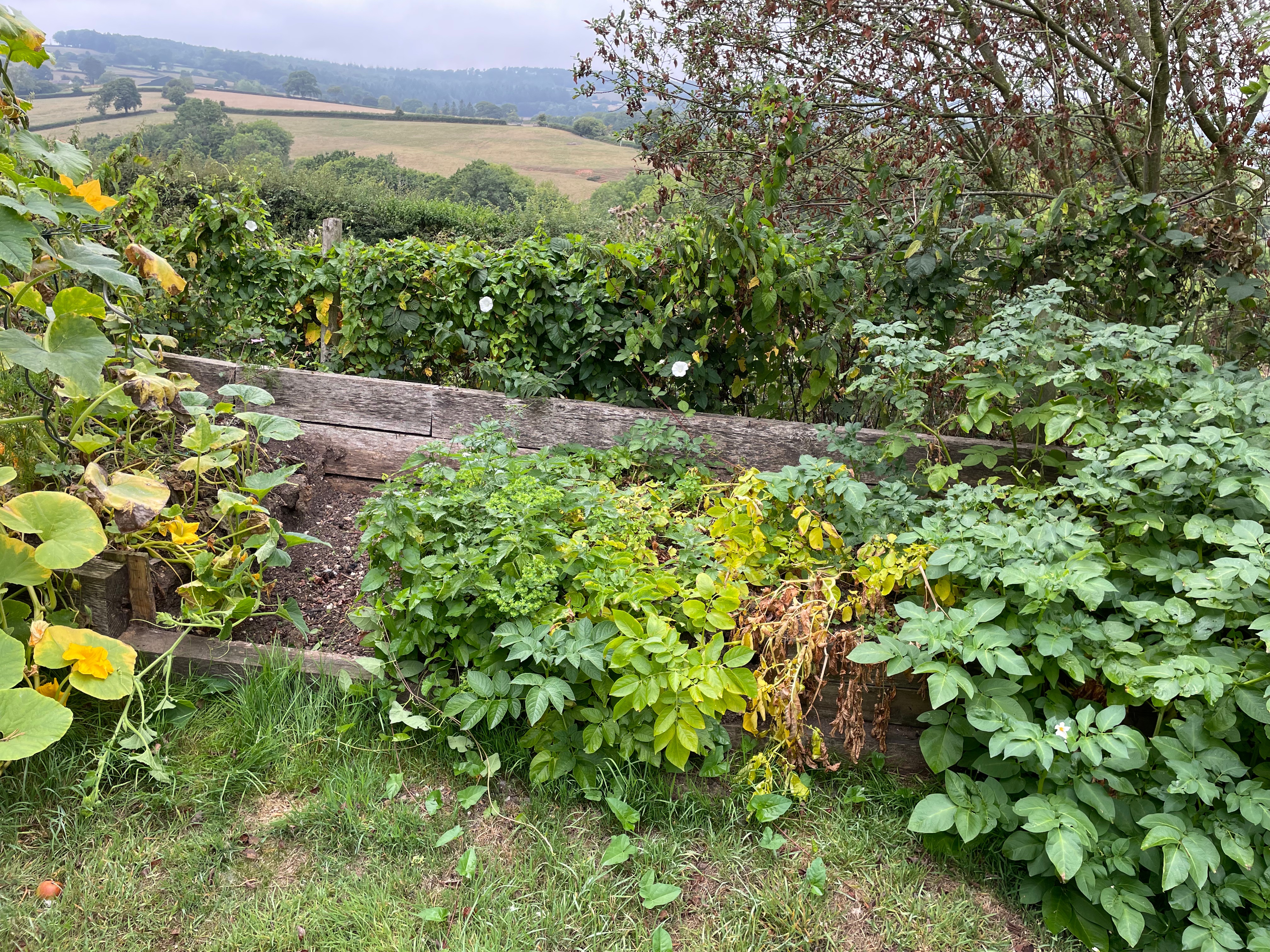 We’ve also been harvesting some of our vegetables – later than some people and certainly not as plentiful or well shaped (cucumbers in particular!). Our onion crop has been a success, and our potato bed seems to be doing well so far. Our squashes and pumpkins less so – powdery mildew has done for most of our plants, so we cut back what we could this weekend and have sprayed it in an attempt to prevent it getting worse. Our entire sweetcorn crop was stolen by squirrels this year again – it’s such a shame as our homegrown sweetcorn has tasted quite nice in the past!