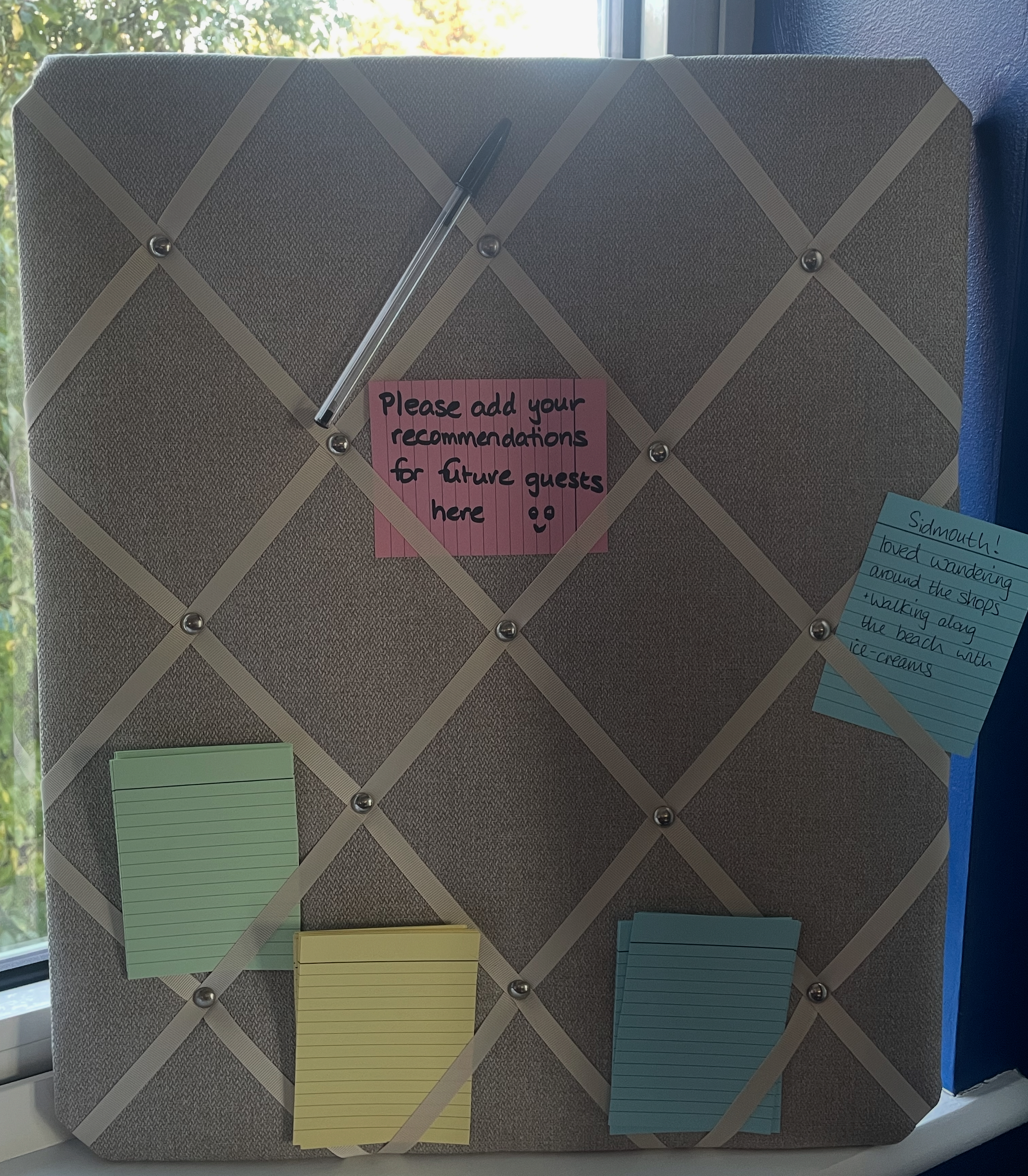 Our autumn calendar is filling up after a flurry of bookings this week. Our half-term gap is now filled (thank goodness!) and we have another same day changeover – luckily on a Saturday so I don’t need to fit work around it. Last week’s guests left a lovely review on facebook, and this weekend’s guests (a family celebrating a 60th birthday) said how much they’d enjoyed their stay when they left. It sounds cliché but it really does make everything worthwhile when you receive positive feedback. We also added a new feature into the games room in the New Barn – a board where guests could add their recommendations for things to do for future guests. Anything to help our guests make the most of their stay here.