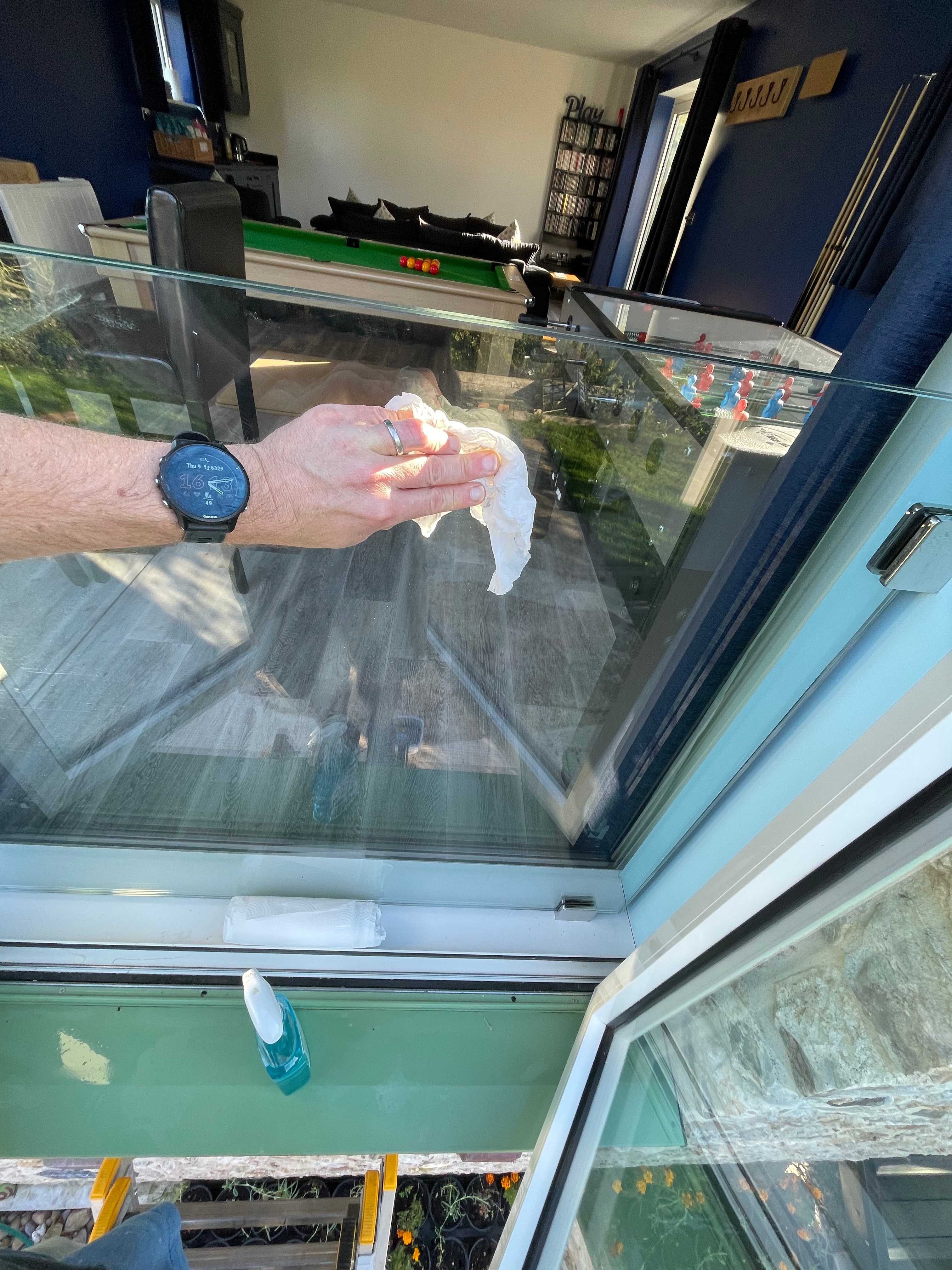 This week’s major job was to deep clean the Farmhouse and New Barn windows inside and outside – including behind the glass balustrades which John had to do from outside on a ladder with the doors wide open. It’s a job that certainly helps to build up your arm muscles having to hold the pole for so long!