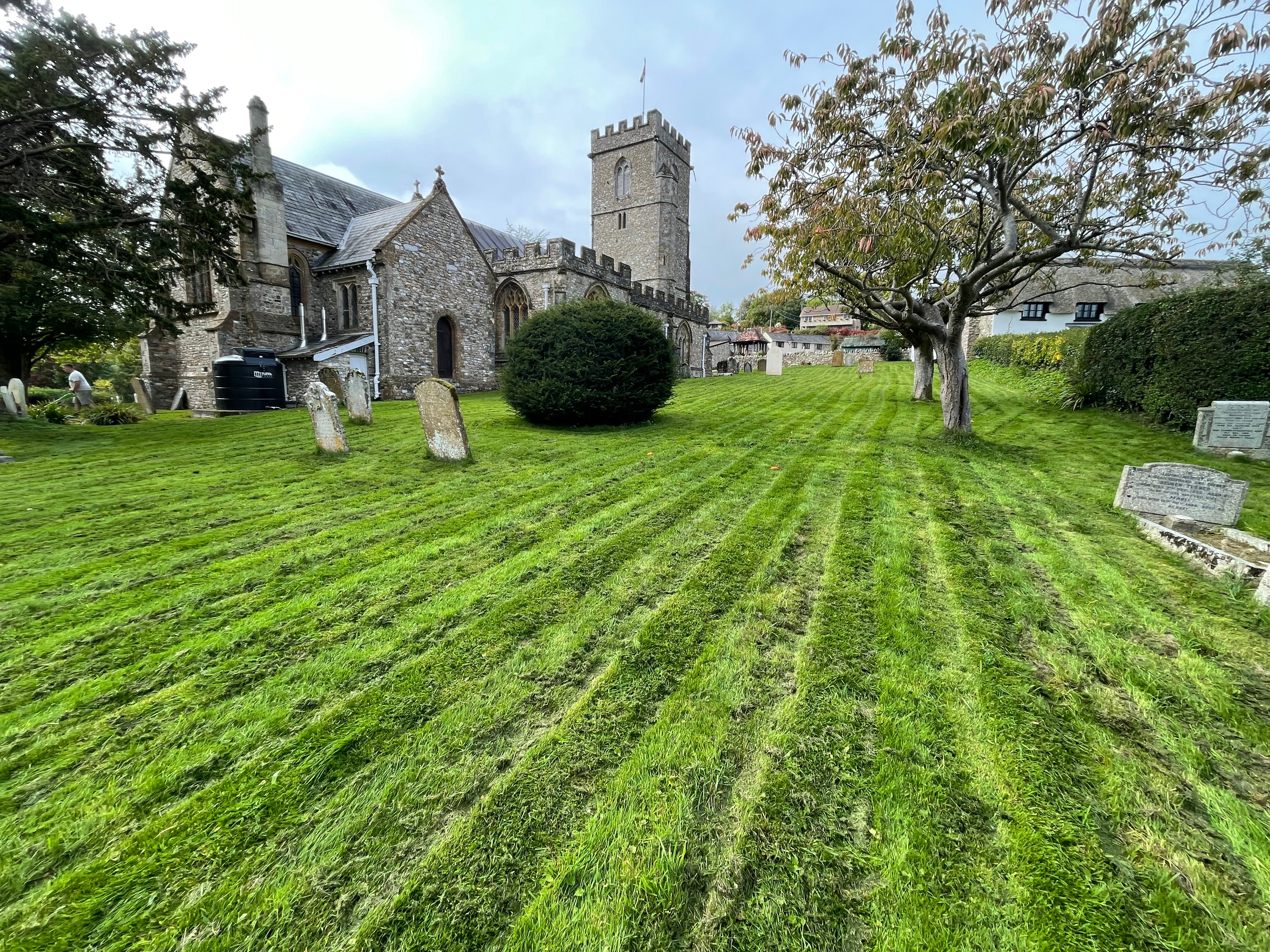 It’s been a quiet week for us this week – with a weekend visiting friends and a mid-week work trip making a dent in our available time. We’re now firmly into weekend bookings in the Farmhouse (this weekend hosting the third 60th birthday in a row and another in a fortnight’s time!) which has allowed us to get into an ‘off peak’ weekly routine of a Monday changeover and 2 days of washing and ironing. Then John spends the rest of the week doing a major upkeep job in the Farmhouse, keeping on top of the lawn care and fitting in a few seasonal gardening jobs. This week though one of the days was taken up mowing the church grounds in Yarcombe along with one of our neighbours further up the valley. As soon as we moved to Devon we realised that in such a small community, it’s so important to get involved – otherwise a few people end up doing everything and it’s unmanageable. Plus it’s a good opportunity for him to catch up with our neighbour who he doesn’t get to see often otherwise!!