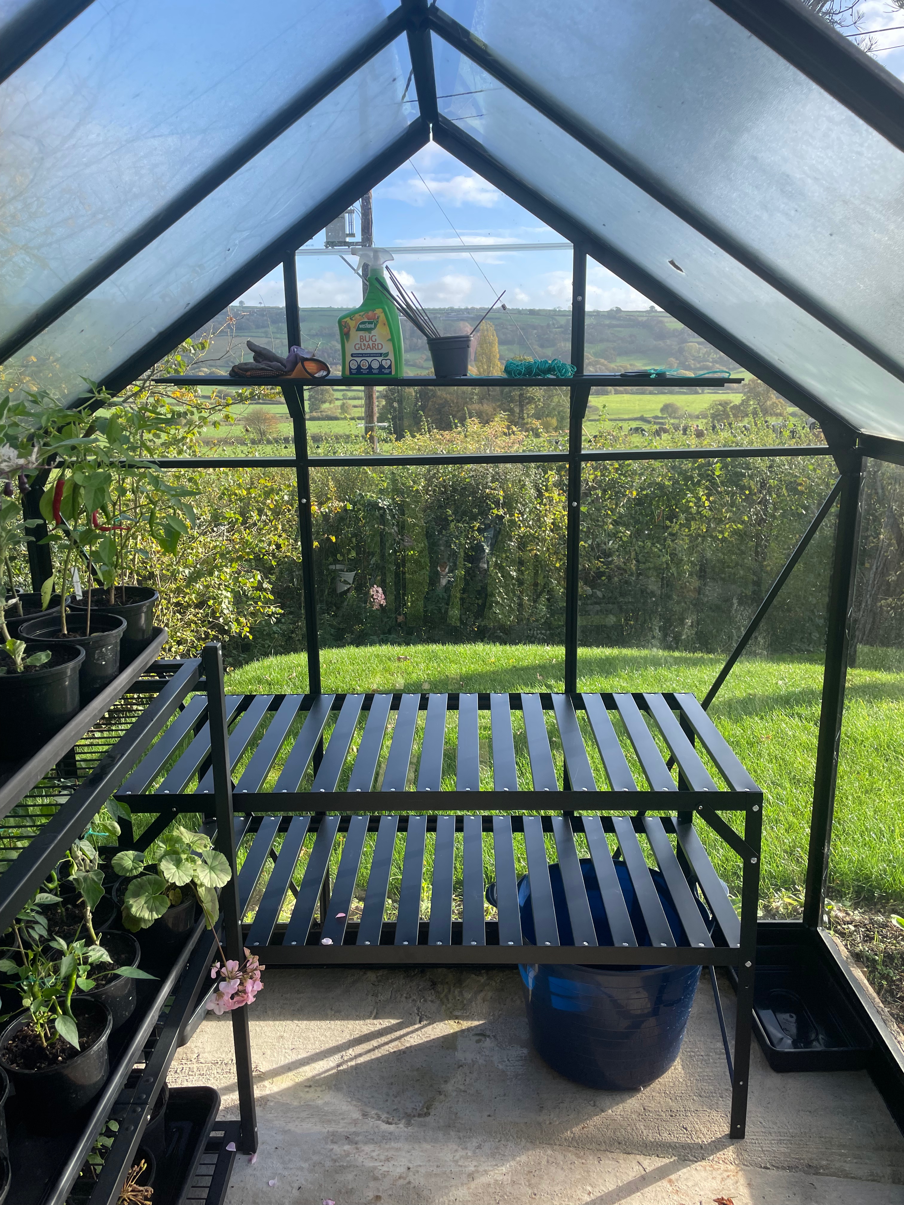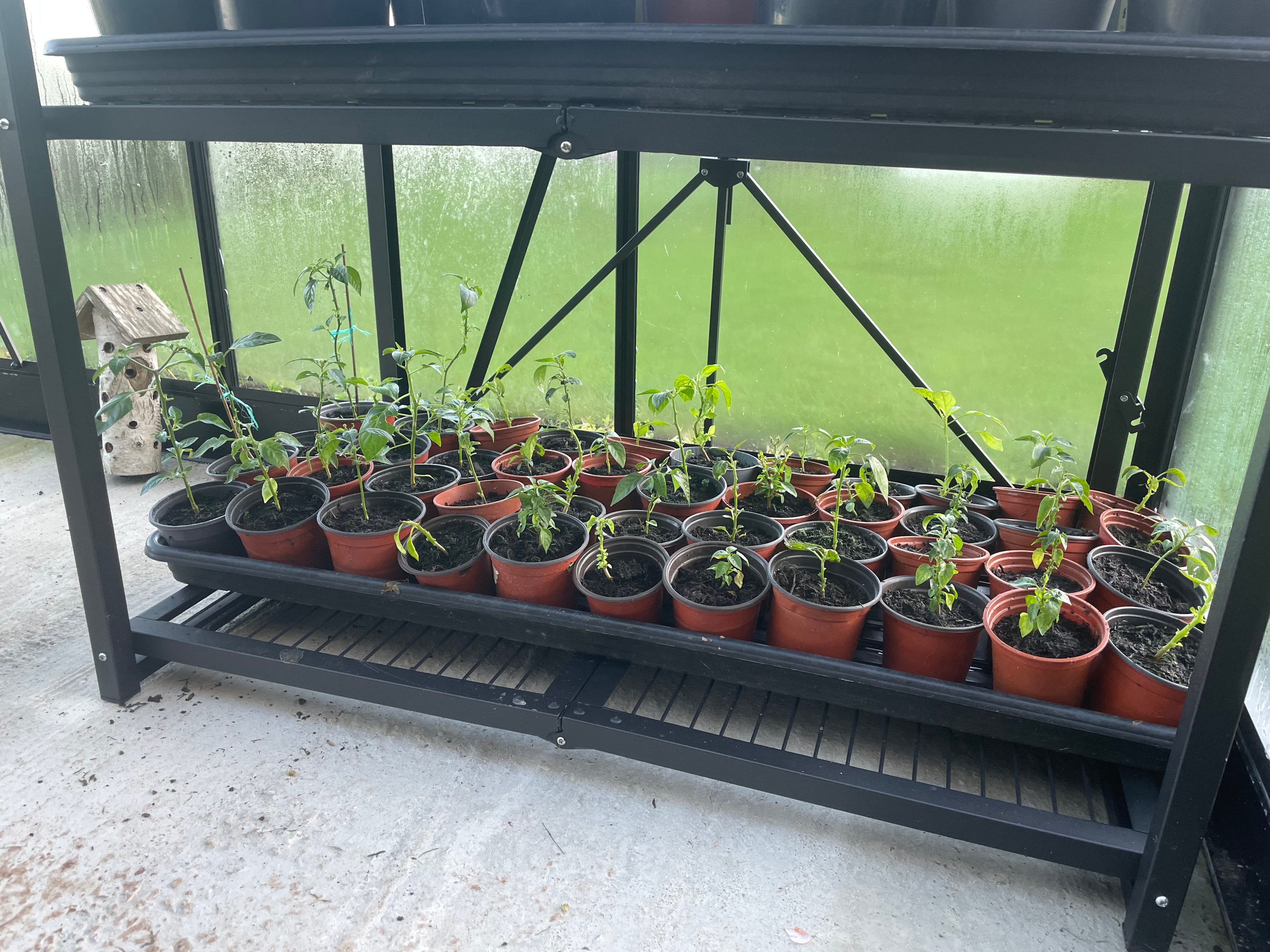 The new table for our chilli greenhouse arrived this week so we built and installed that, and moved the rest of our chilli (and a few random aubergine) plants down from the main greenhouse so they’re all in one place. We gave them the same treatment as last week’s plants to remove the aphids and signs of mould – as these are much smaller plants though I’m hoping they survive. 24hrs in a warm greenhouse and they seem to have perked up a little…