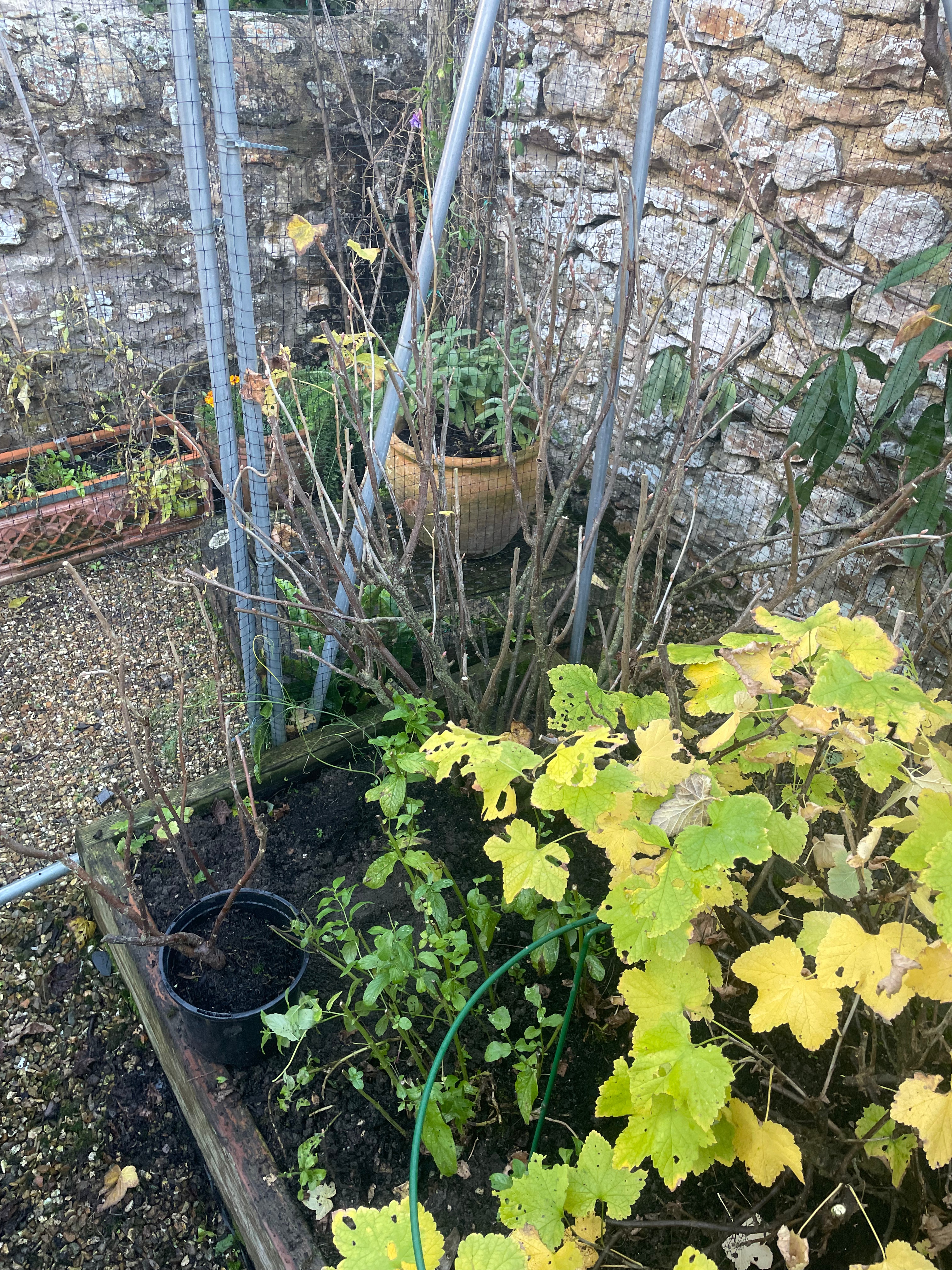 In the kitchen garden we’ve started tidying up the beds, although many are still full of vegetables to be harvested. We took down the sunflowers and have hung the heads in the greenhouse to dry out so we can harvest the seeds for next year. And we pruned the gooseberry plants and the soft fruit bushes in the fruit cage. Raspberry canes have popped up in various places near the fruit cage so we dug those out and replanted some of them in the raspberry patch. It already looks much neater.