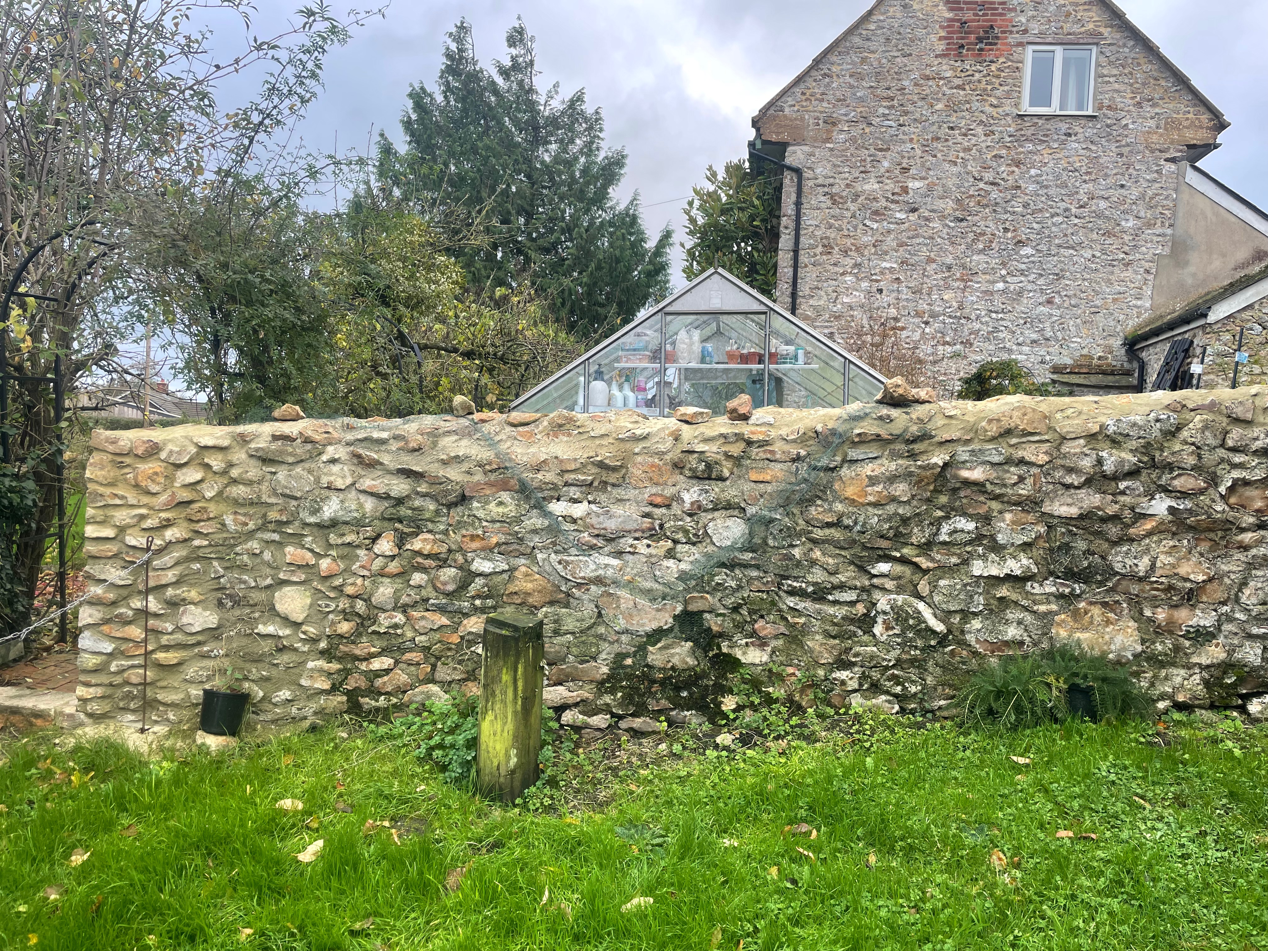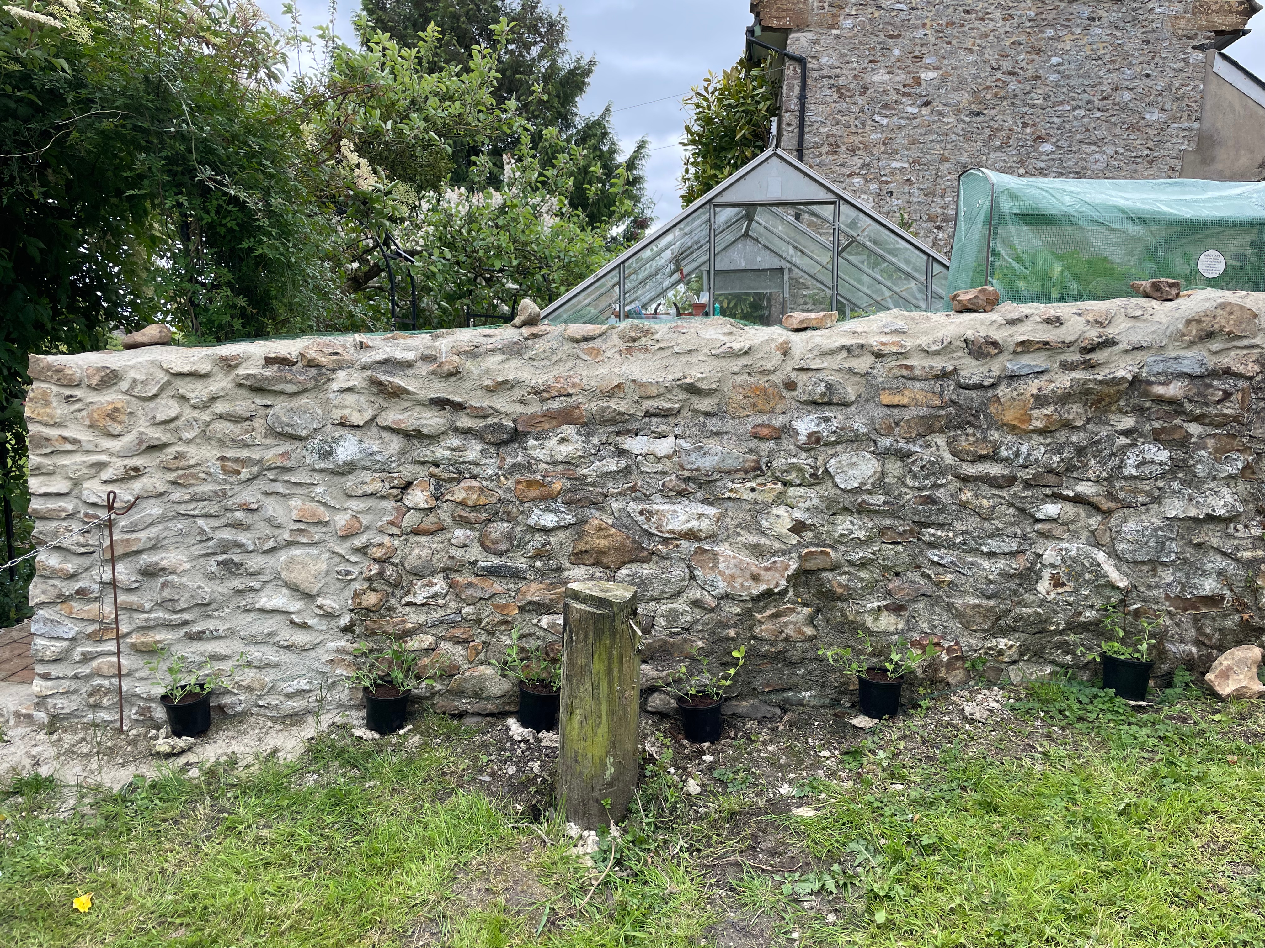And we dug out a new flower bed. When we come up with new ideas we try them out on a temporary basis for a year first, before putting in a more permanent solution if it worked. This year we tried growing sweet peas up our kitchen garden stone wall that we had restored at the start of the year. I grew them in flower pots that were perched on stones and kept falling over (the hill is quite steep along that area). That combined with the weight of the plants dragged down the netting I’d put over the wall. Despite all that the location was a success and we had loads of lovely flowers so we decided to make a more permanent solution by digging a proper flower bed. It’s been on our list to do this side of winter so we could plant the sweet pea seeds now – I read that planting sweet peas now gives them strong roots, and planting in the spring produces lots of growth so we’re going to try both!