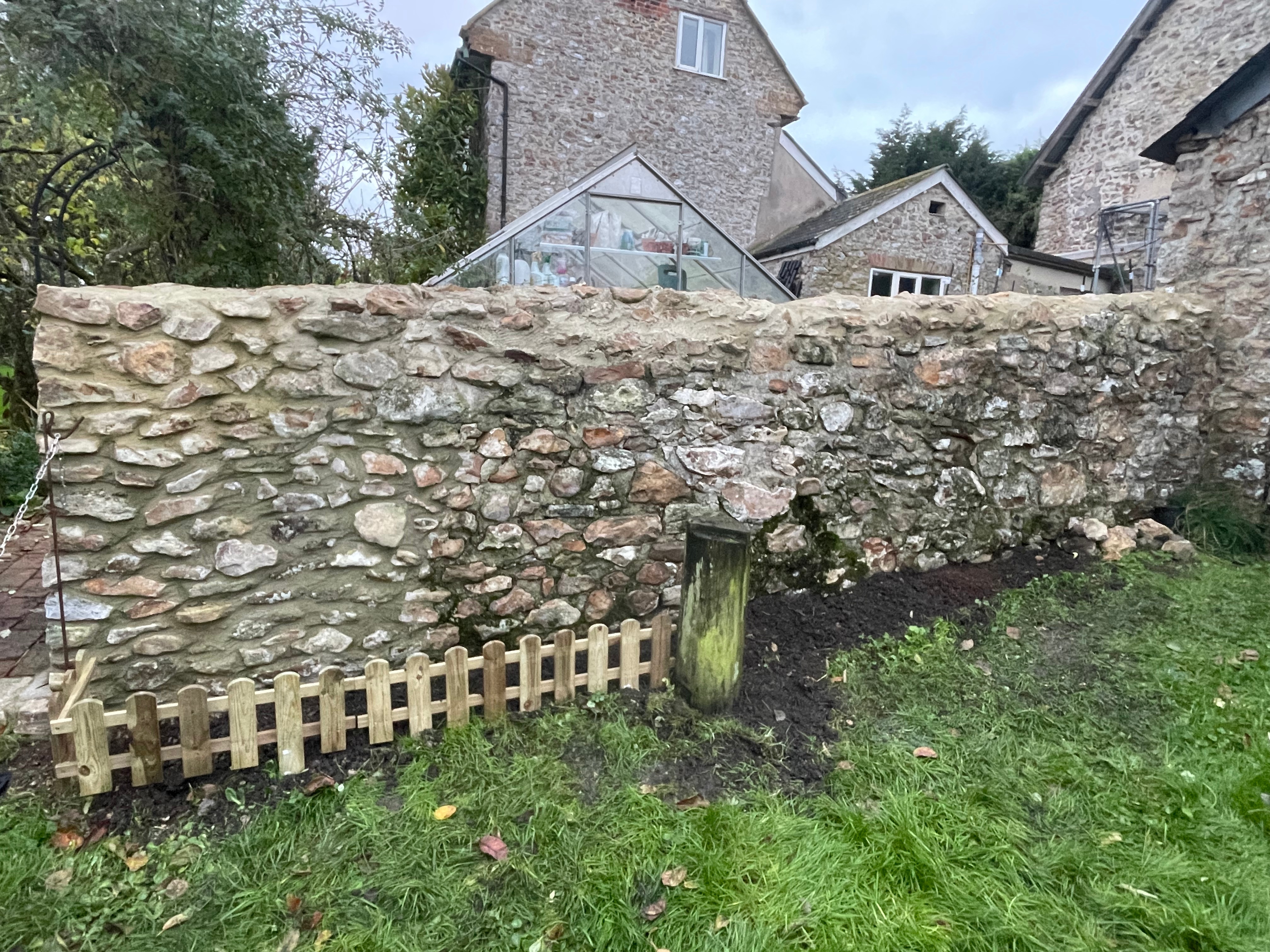 We’ll weight the netting down on the other side of the wall as well – we have some long bits of wood that will be surplus to requirements once we’ve laid our patio that should do the job nicely. We even managed to find a use for the picket fence left over from doing the Farmhouse front garden – just a shame we don’t have a bit more. There’s no point buying another pack though as then we’d end up with even more leftover pieces and would need to find a new project!