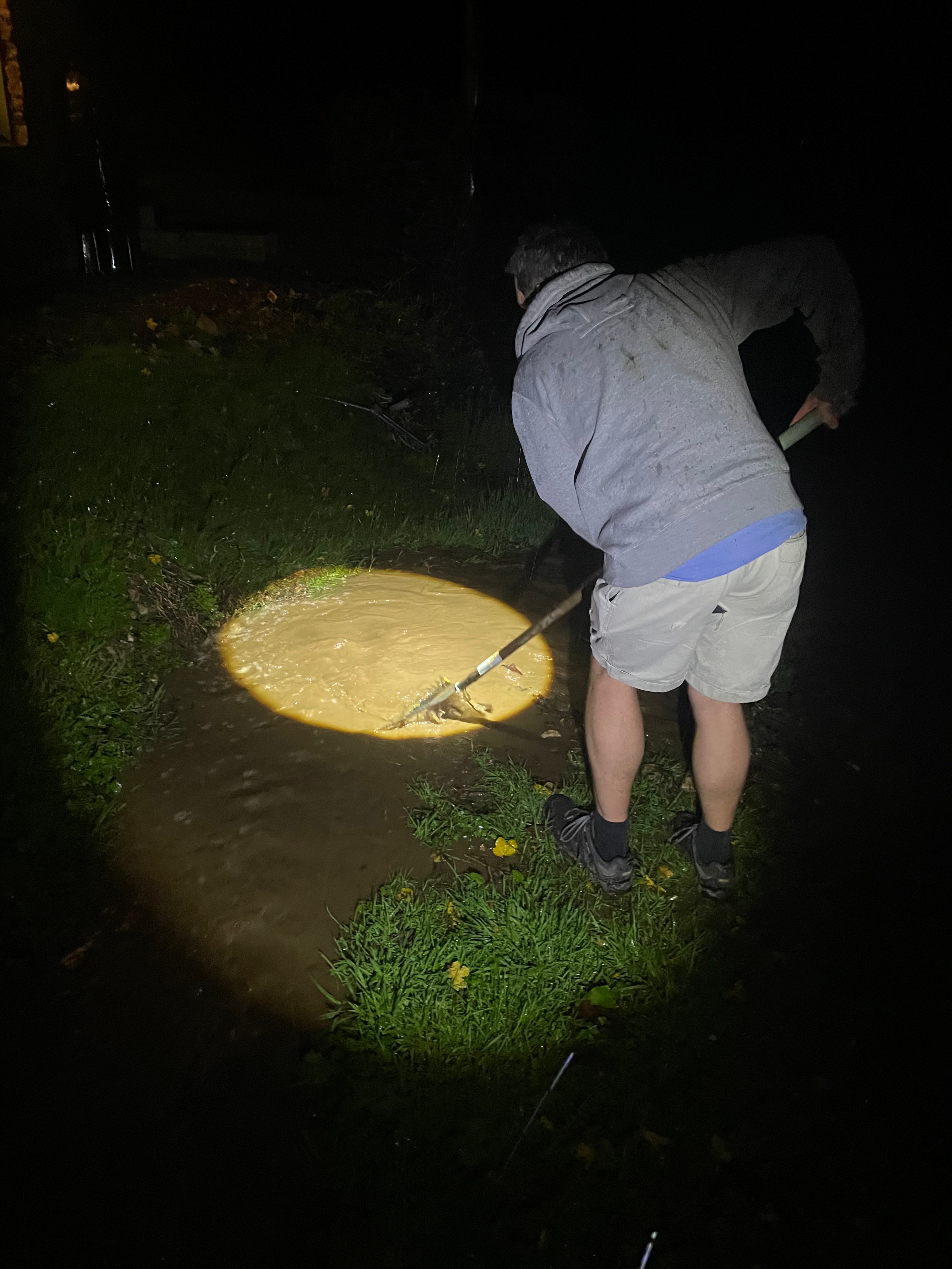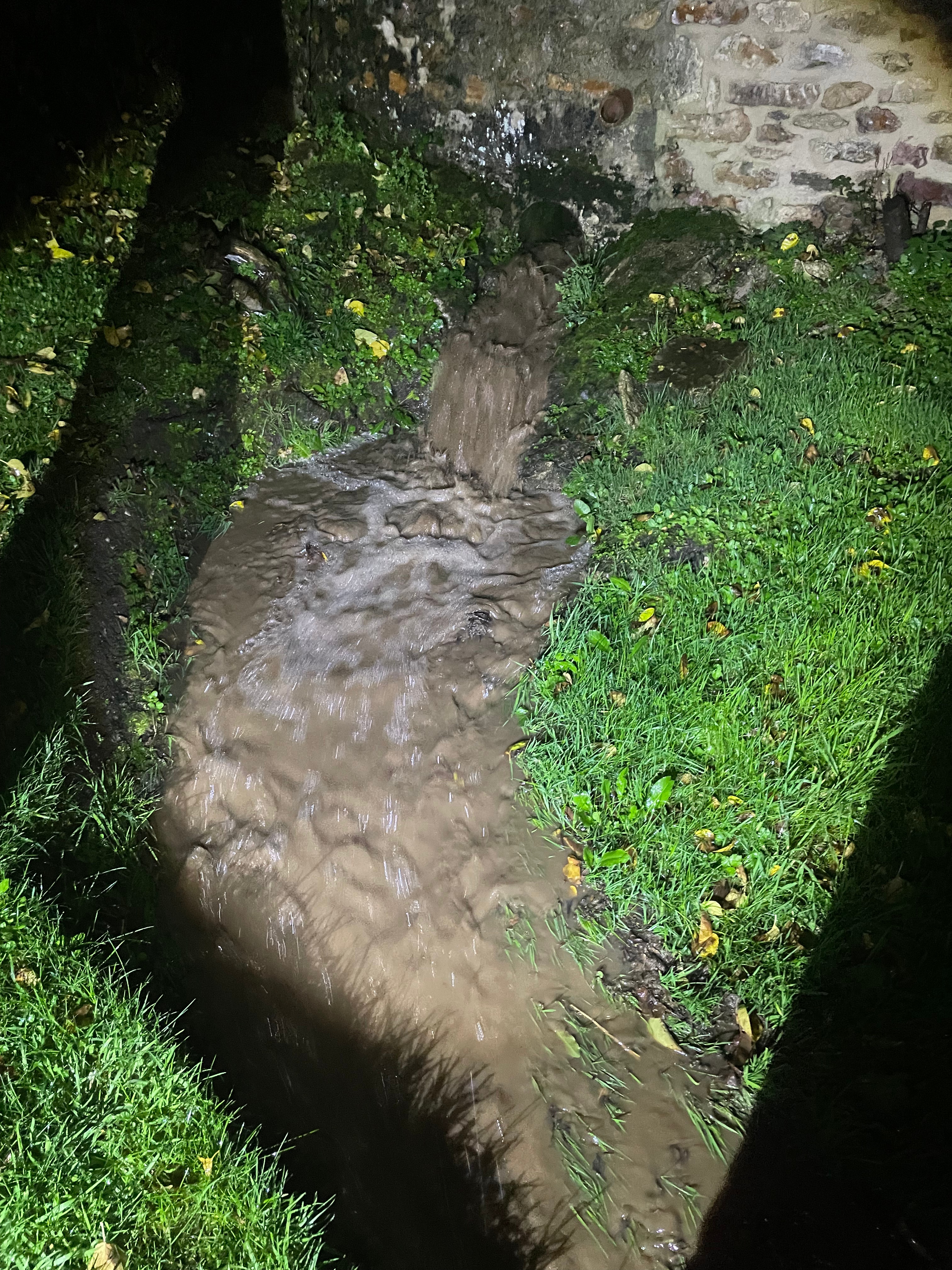 It’s been a pretty wet week which has unfortunately tested out our drains. Friday in particular we saw a torrential downpour – it wasn’t much in terms of volume but it fell quickly onto already-saturated soil. Both our main drain cover and the one outside our lounge window on Highways land blocked – luckily the overflow channel worked to take the water away from the house which is the important thing. The water that does get down that drain flows underground under our air source heat pumps and comes out at the front of our house and down through a channel to the second drain. It looks like the strength of the water is washing down stones from that channel and blocking the drain outside our lounge window, so we’re considering concreting a small area around the drain cover. It won’t necessarily stop the stones (and the whole channel is too long to concrete) but it would make it much easier to clear when we’re not slipping around in muddy water.