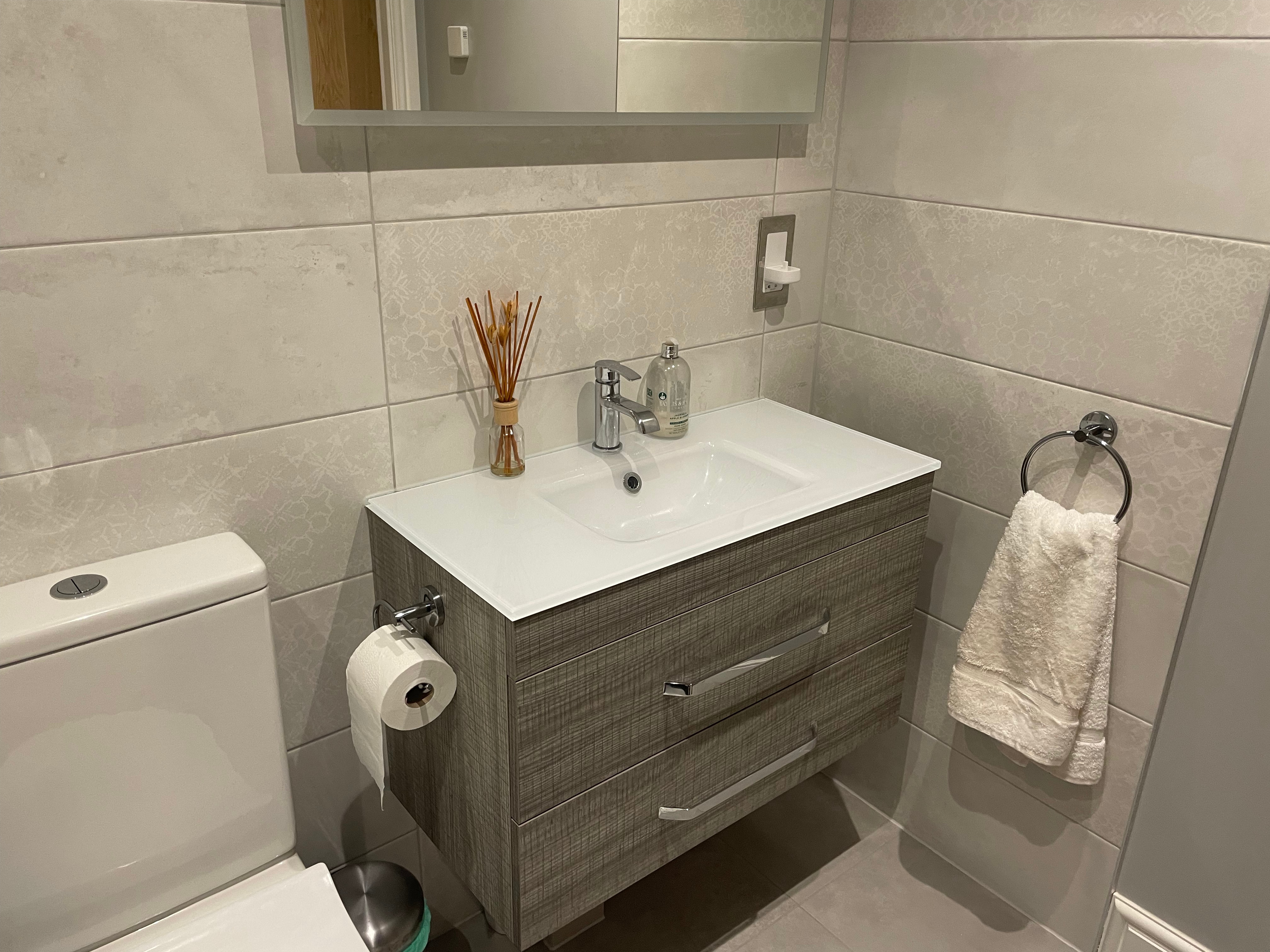 The other jobs were to put up toilet roll and towel holders in our ensuite and in the bathroom – bought not long after we moved into our house 16 months ago and sat waiting firstly in the spare room and then in the service cupboard until we got round to it. It turns out the first tile drill bit was blunt so I managed to burn out one of our screwdriver drills in the process – I’m quite glad I noticed the burning smell before the thing actually burst into flames! And at least we have (well had) two drills – big thanks to my dad who was the one advocating for having a second one!