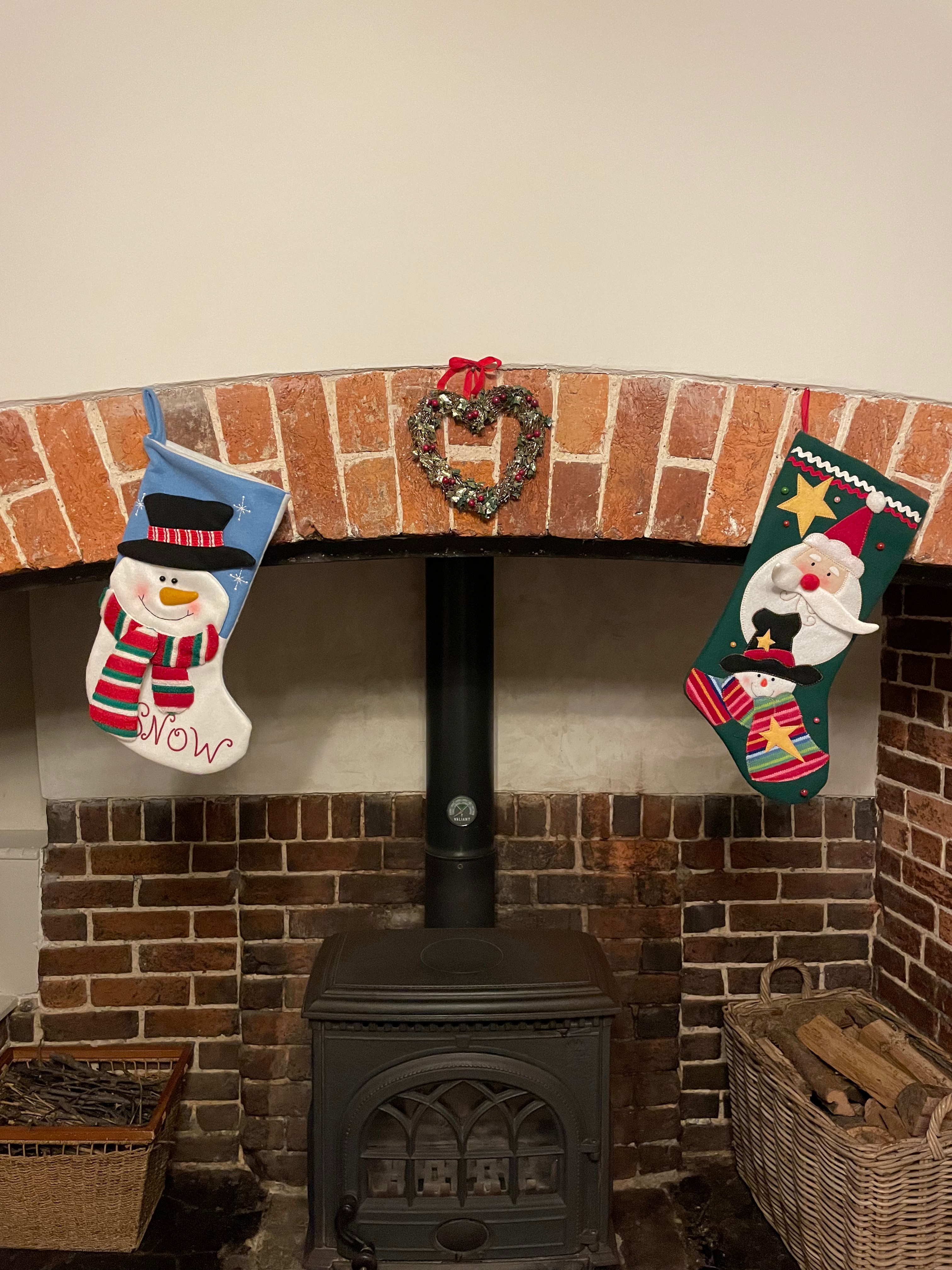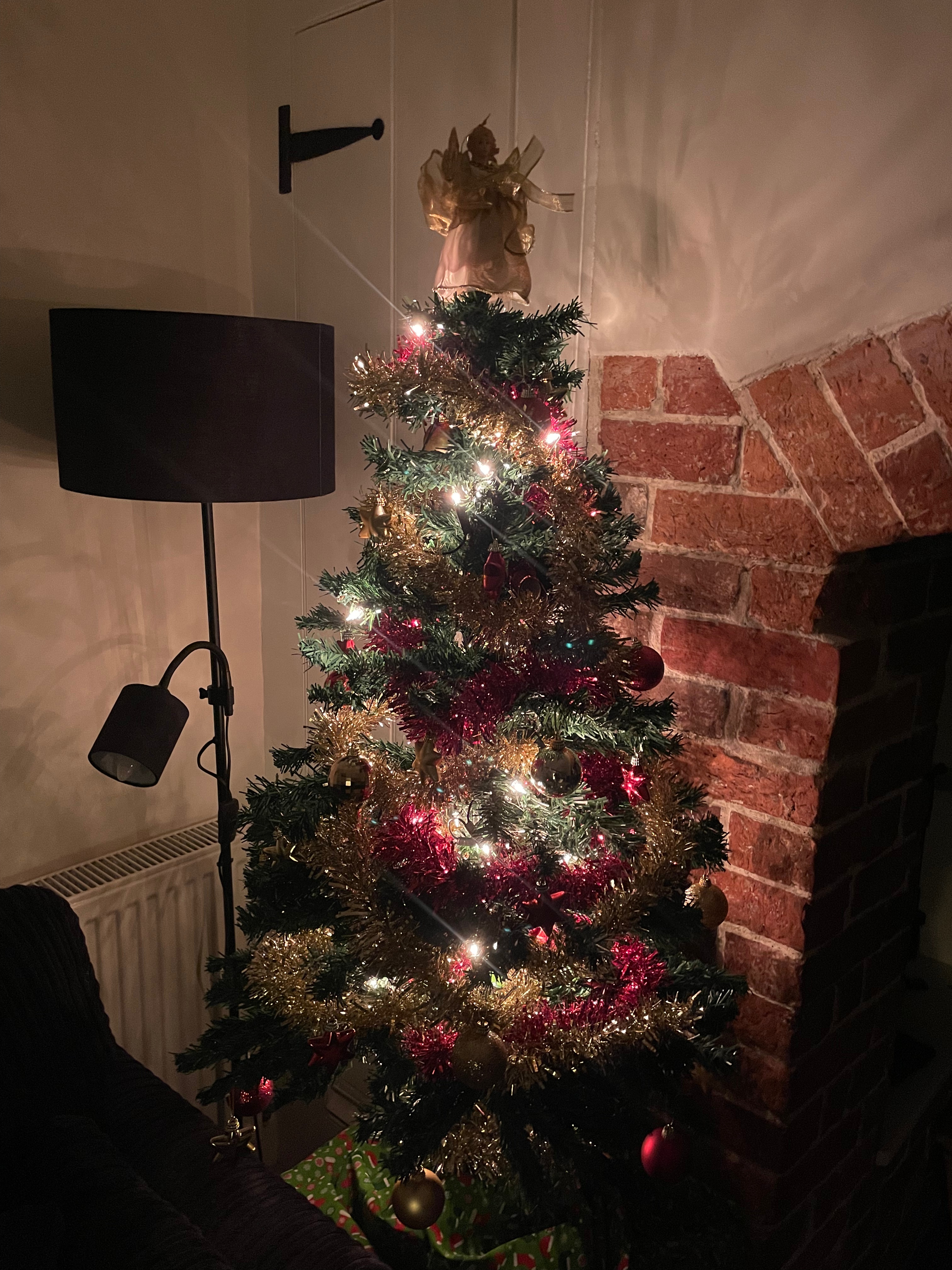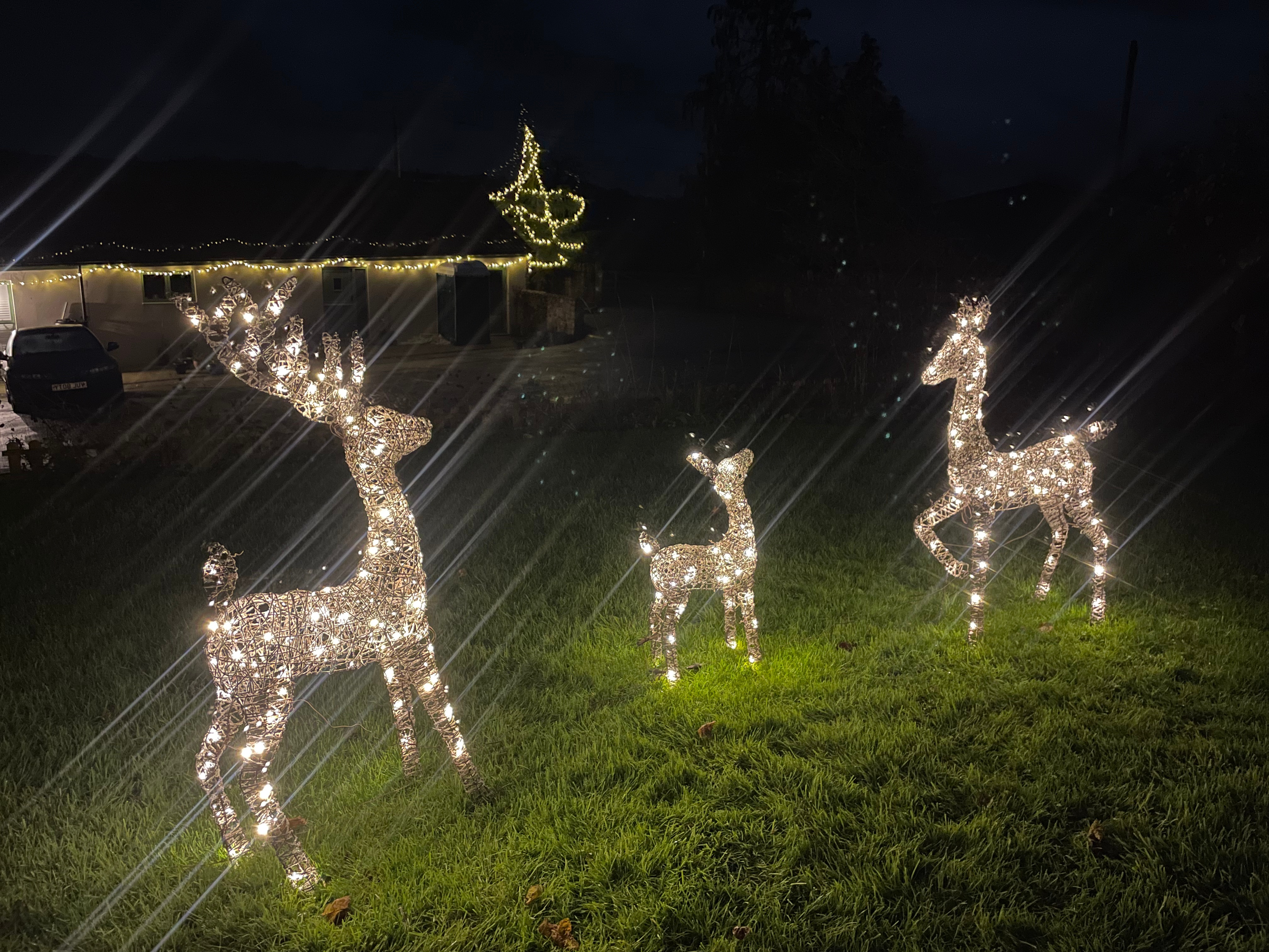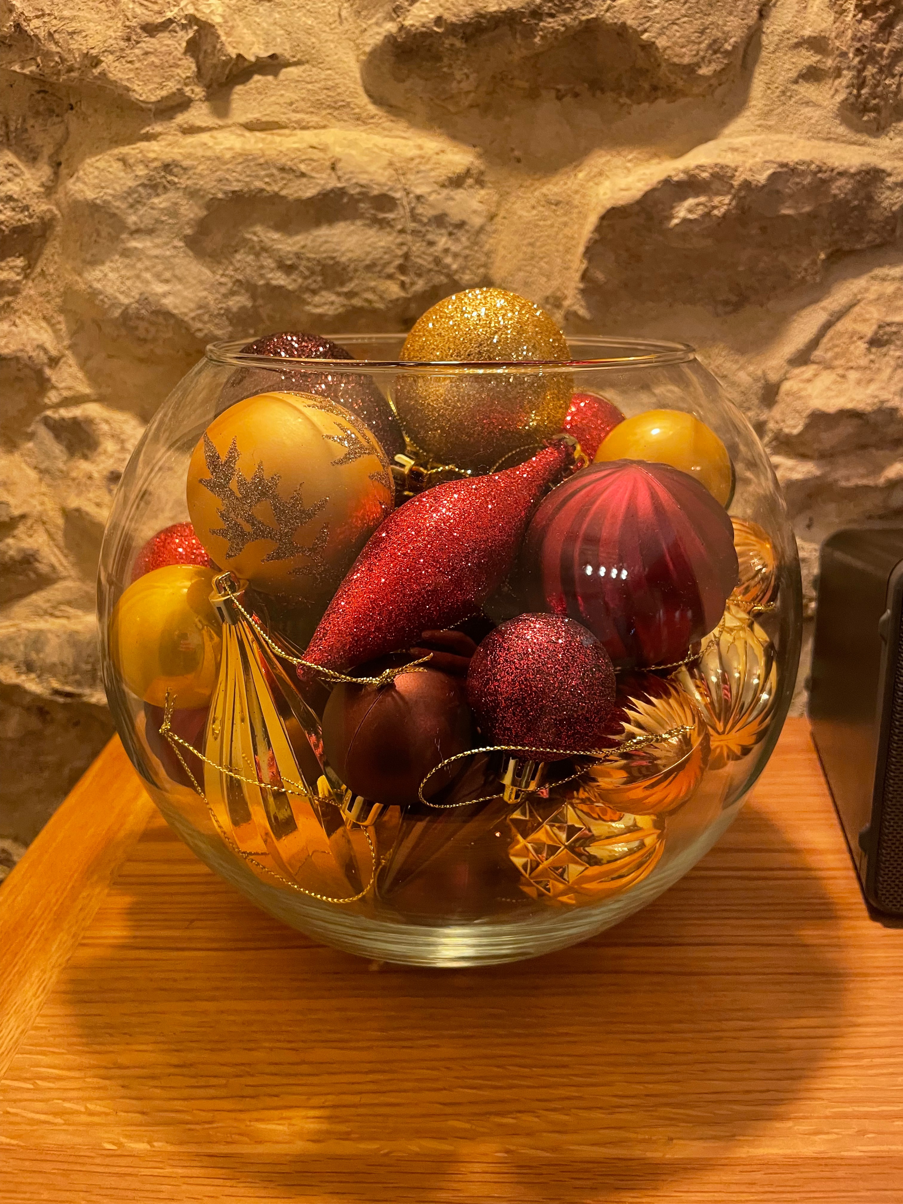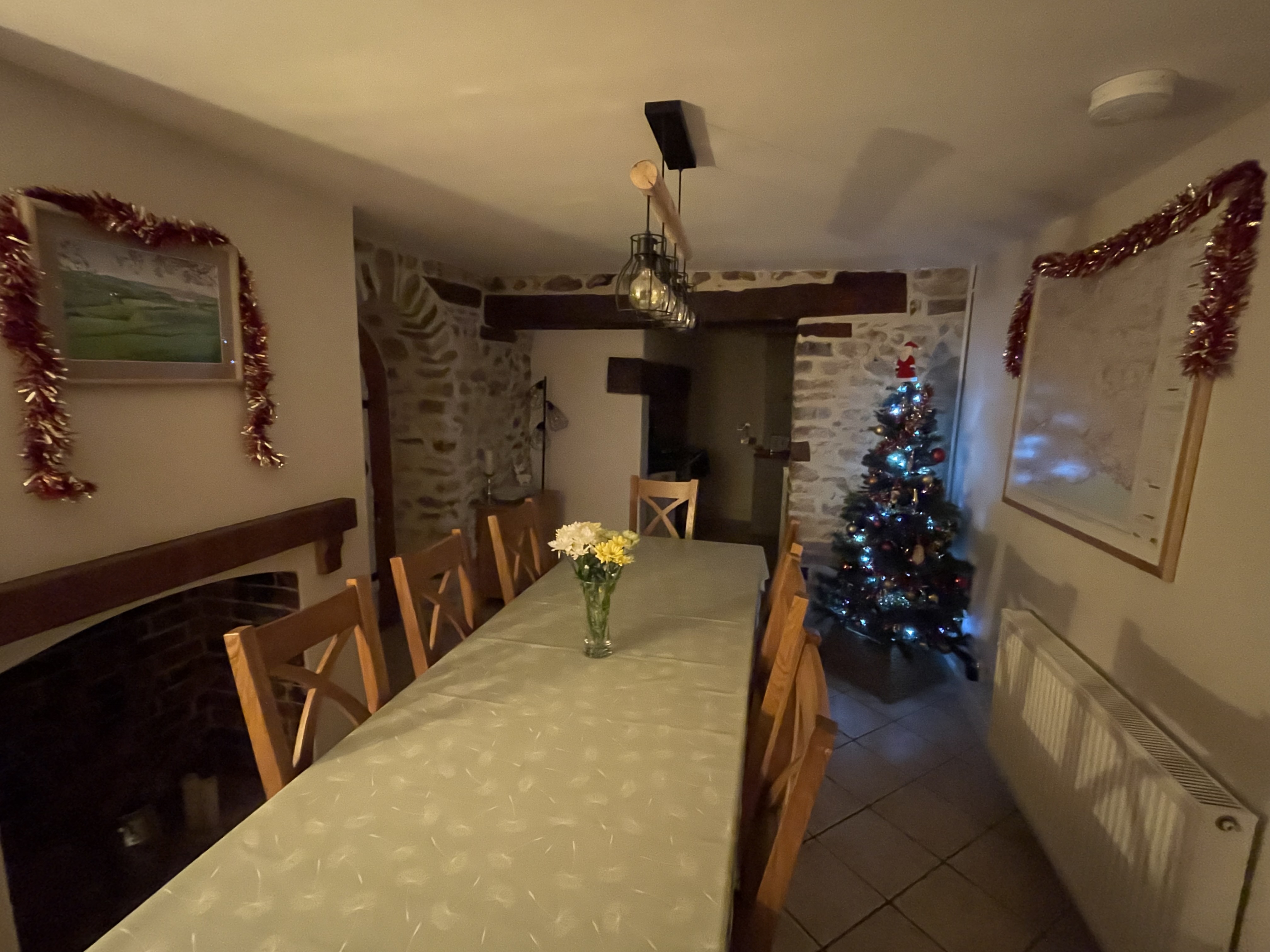 Christmas has arrived at Ley Farm Cottages!! Our guests this weekend are celebrating an early Christmas so we wanted to make sure all the decorations were up. John spent the daytime putting up the outside lights along both sides of the shippon and around the pine tree by the gate, and once the changeover was done we spent the evenings putting up the inside decorations. When the house is full of people and dogs there’s not much space in the living room for a big tree so we put the larger tree in the dining room and a smaller tabletop one in the living room. We wove garlands through the bannisters to continue the Christmas spirit up through the house. And this year we’ve added jars of baubles in various places – inspiration from a friend of mine. We love getting new ideas and adding them to the Farmhouse!
