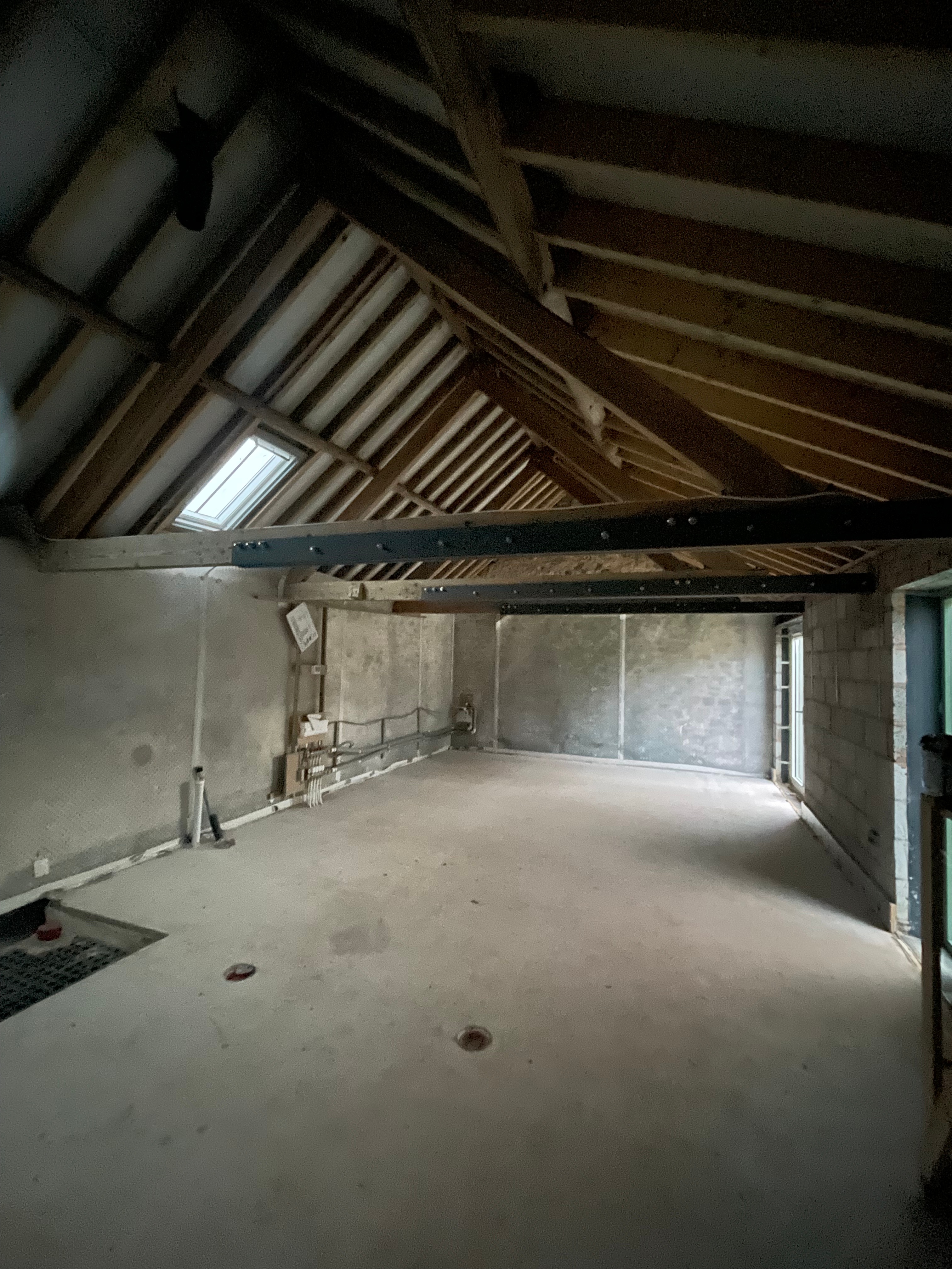 We’ve also had a structural engineer visit this week to assess the lean-to at the back of our old Elizabethan cottage. The Cottage itself is a Grade II–listed remnant of the original 16th-century farmhouse with multiple original features including the large inglenook fireplace, an internal cob wall with bits of plaster frieze still left on, and original wooden window frames. About 20 years ago, the previous owners carried out some major stabilisation work, using metal tie bars and rebuilding one of the main walls after a partial collapse. But the lean-to – which has been added later and been built up against the original farmhouse rather than being integrated into the walls – didn’t get the same level of care. It was propped temporarily and then largely forgotten—with a warning sign left inside.