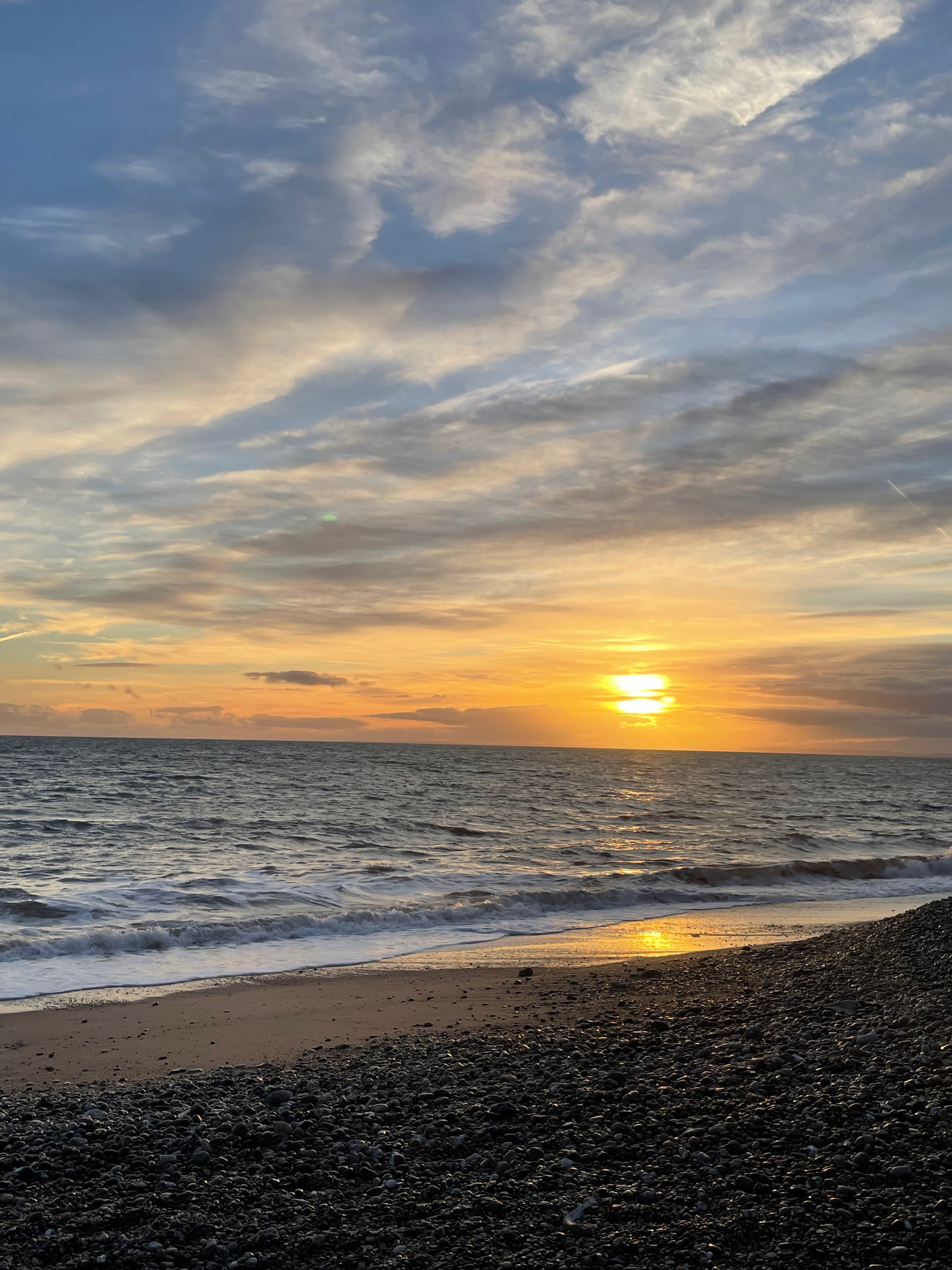 Since we were out already, we decided to make the most of an afternoon ‘off’ and head to Branscombe to take the pup for a walk on the beach. We timed it perfectly to catch the sunset and were treated to beautiful views of the sun reflecting on the water. So lovely to get out and enjoy our local area!