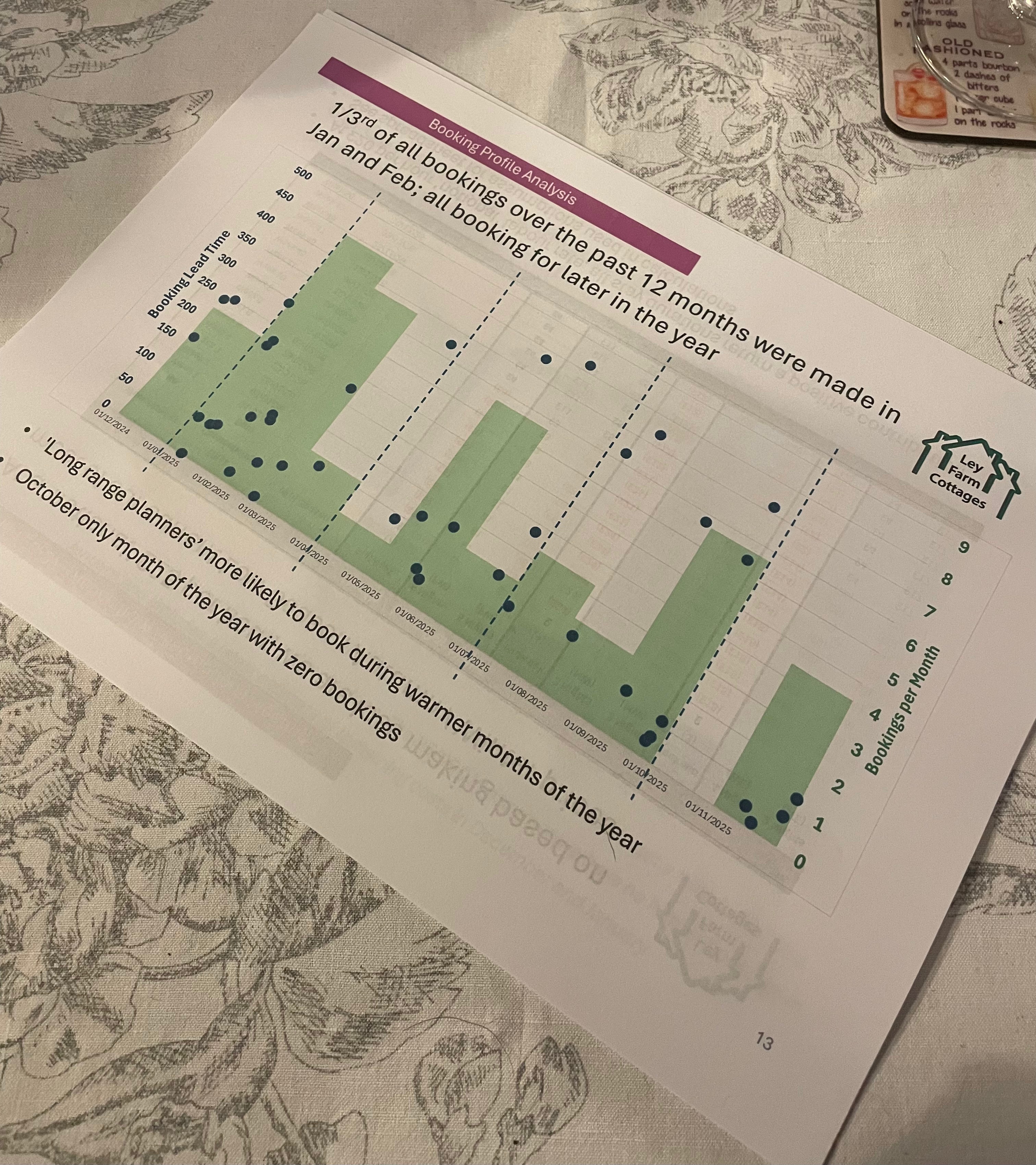 This weekend we held our annual end-of-year review and 2026 planning meeting. Something John learnt from his corporate days is the importance of reviewing our company financials to see how we’ve done over the last year and what we need to improve. It helps now we’ve had a full year of bookings to look back on, although we’ve tested a few different things this year so it’s not that easy to separate out each thing to understand the impact it’s had and whether it’s been successful or not. We are really committed to making this a strong business – we’ve seen so many places struggle in the past year, and we’re keen to make sure we continue to grow.