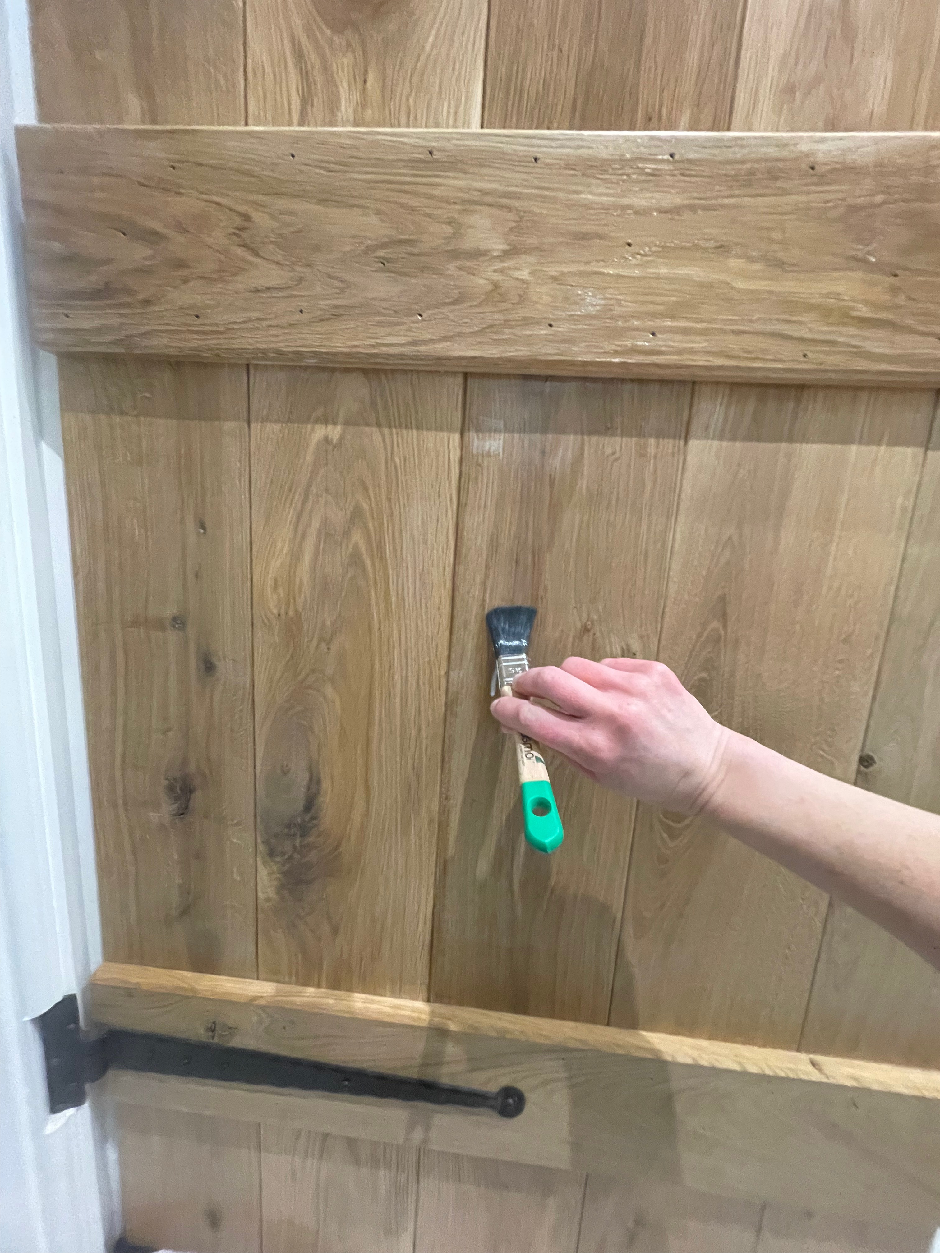 And we managed to do a little bit more in our house – having given up on any garden work until the ground dries out a bit more (the joys of living on clay soil). We’ve finally put up a mirror in our bedroom and I made a start oiling the wooden bathroom & ensuite doors. They hadn’t been sealed when we moved in and we’ve noticed water stains appearing where they’ve been splashed. Oiling them should help to reduce any marks – it’s a job that has taken a while to get up to the top of our to-do list but finally made it. Something we’ll definitely need to do in the one-bed before we start renting it out.