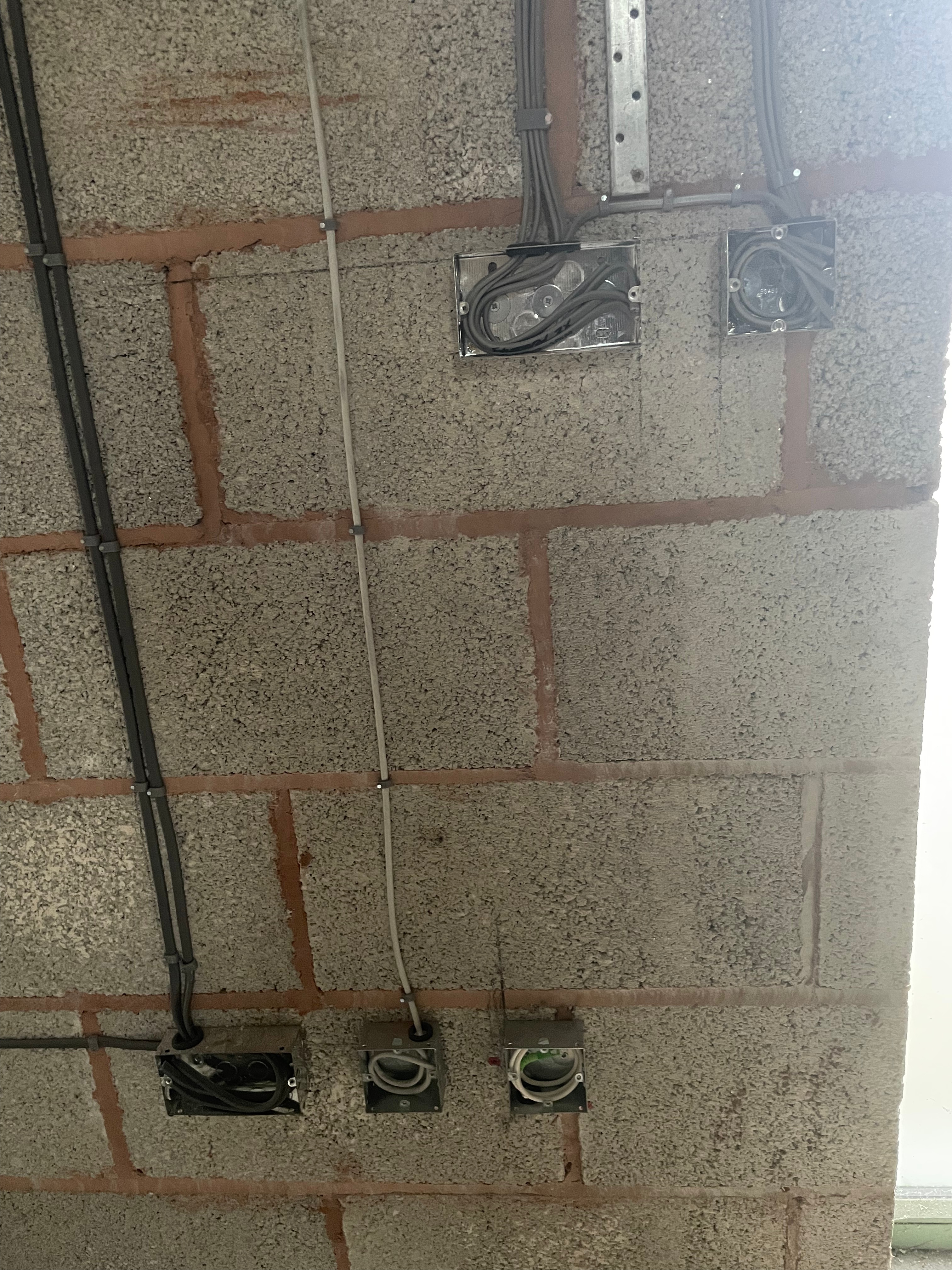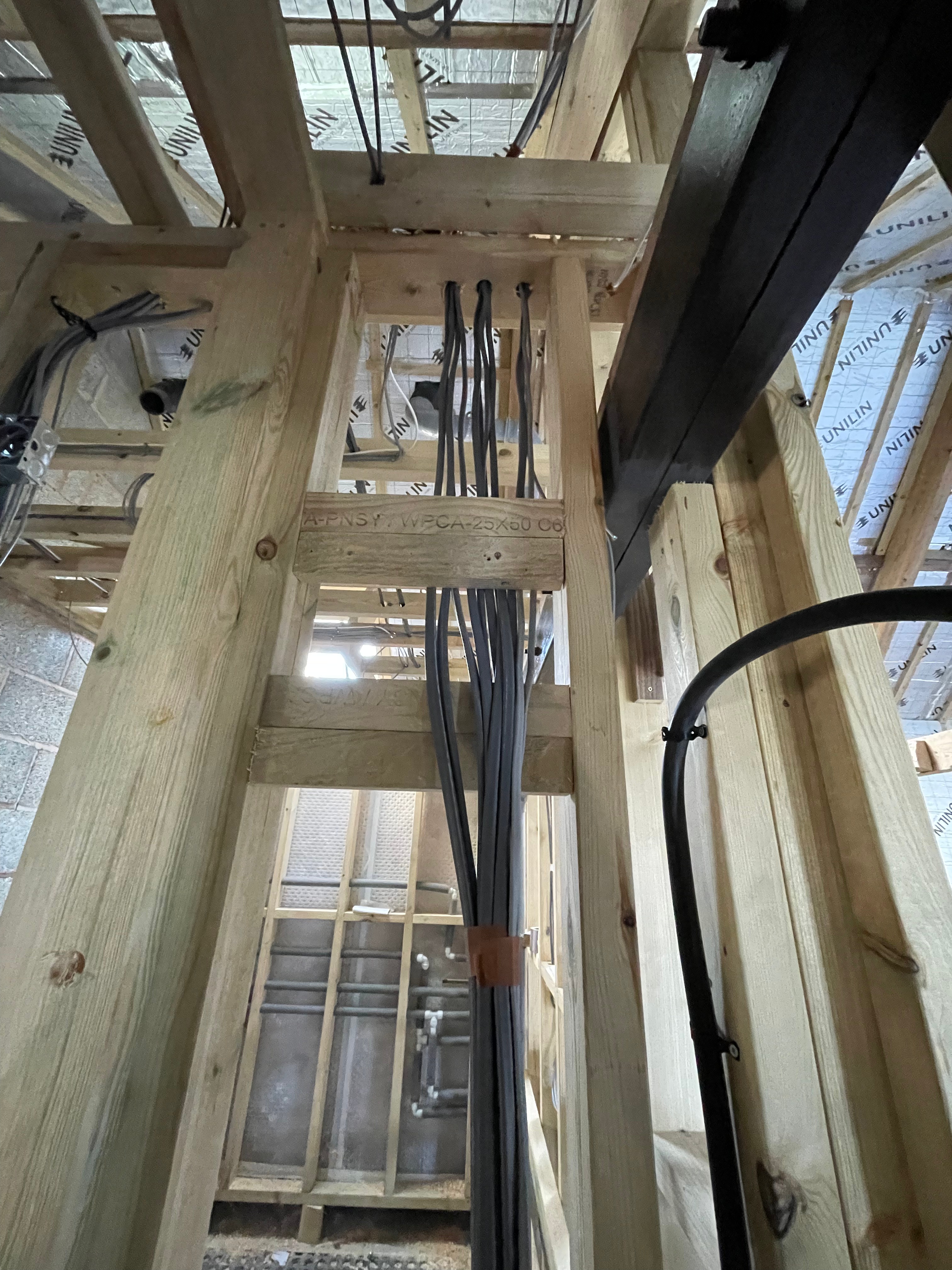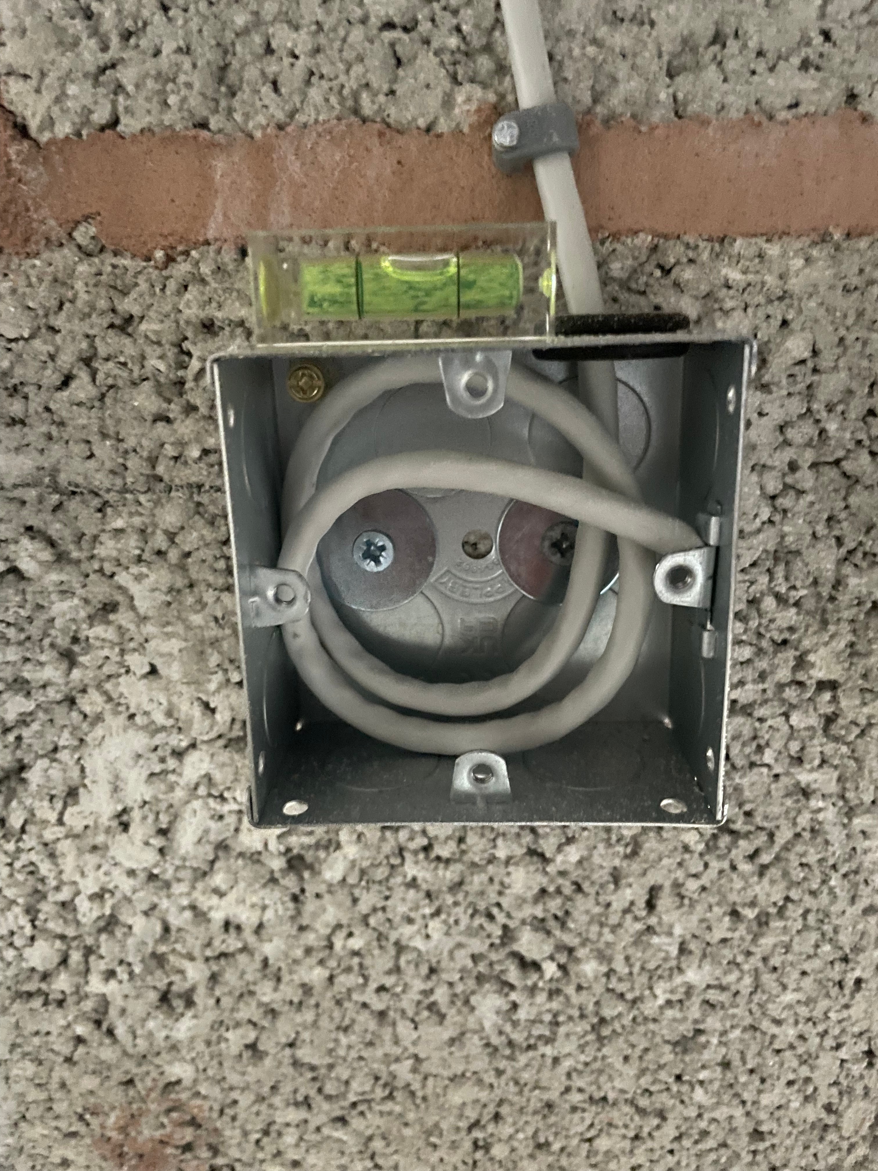 Our electricians completed their first fix – putting in all the required wiring and then adding in socket boxes and switch boxes into the stud walls. They’ve done a pretty good job getting them straight as well – there are only a couple where the boxes are slightly wonky and they’ll need to make the most of the adjustable lugs in the boxes themselves.