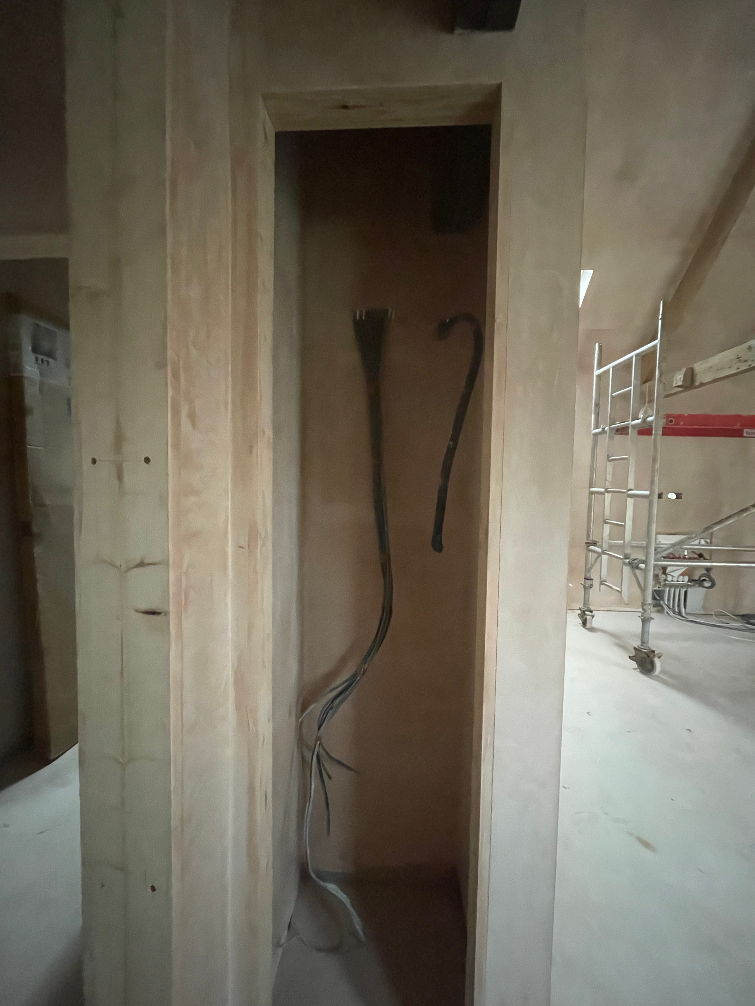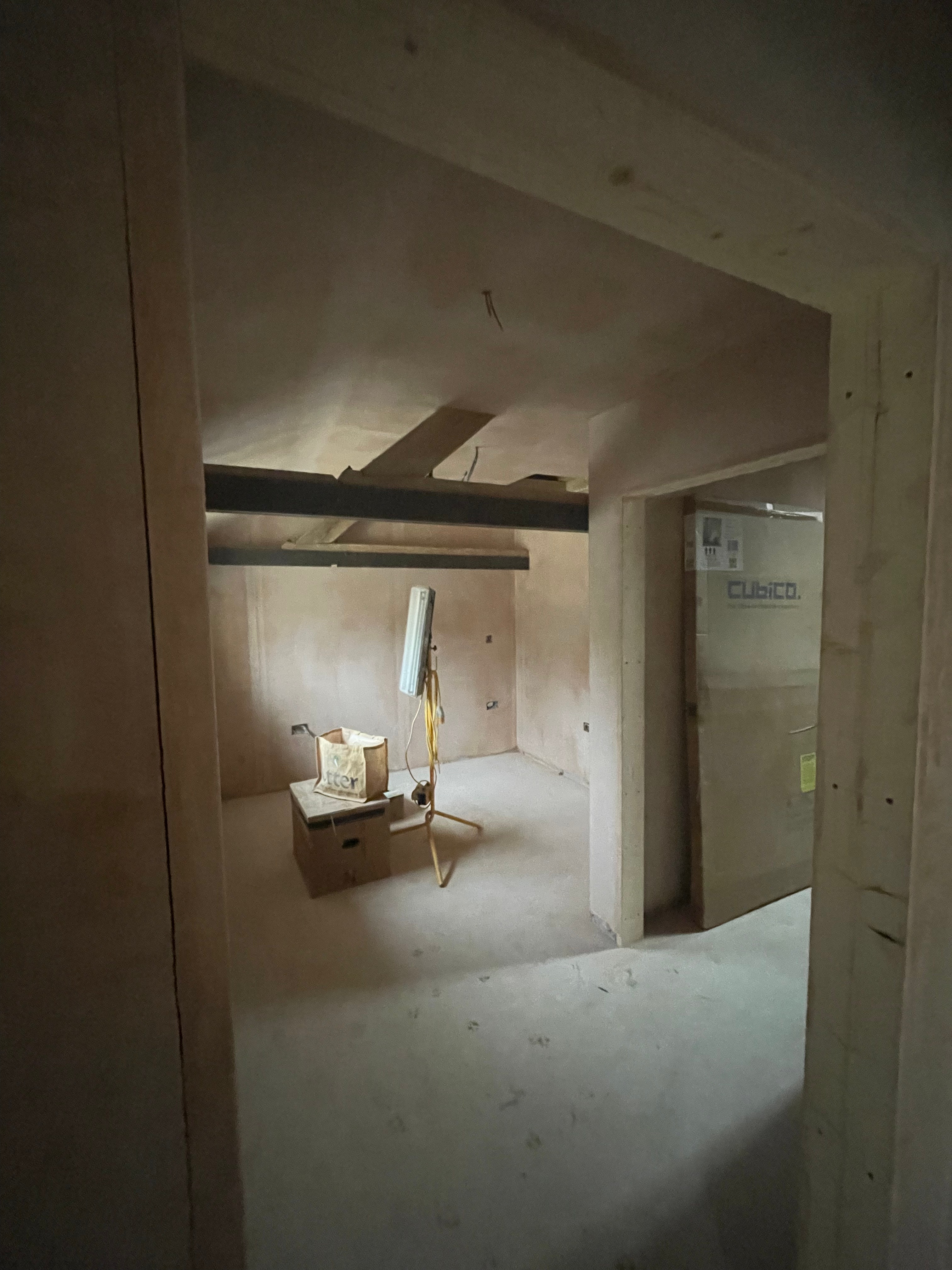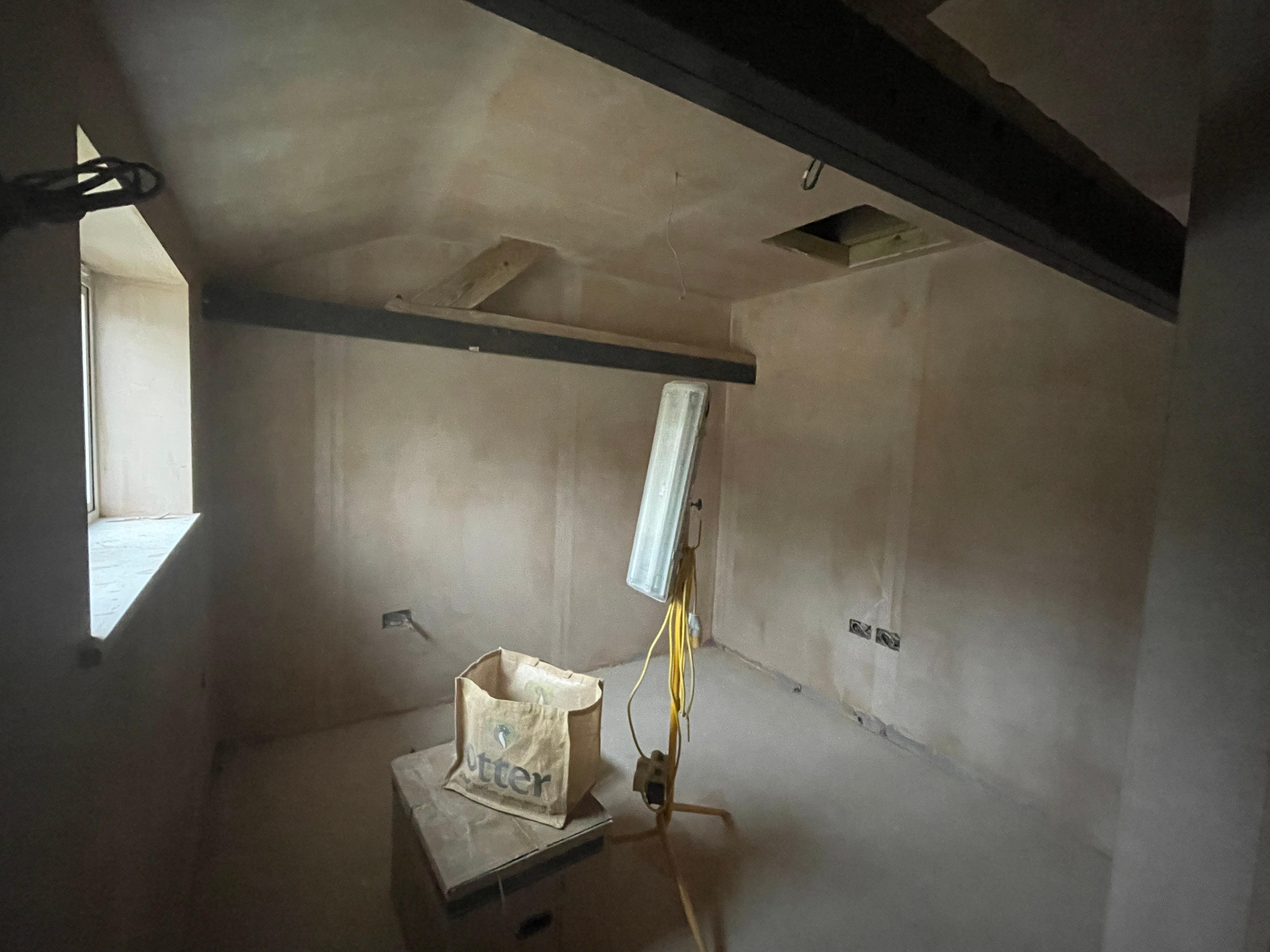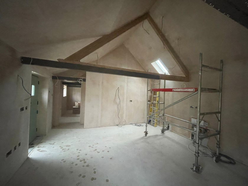 The Cow Shed is coming along quickly – our builders have now finished most of the plastering and in a few days it’ll be ready to start painting. There’s one remaining bit in the ensuite to finish but apparently that needs to wait until the toilet cistern is in. Our builder even came over on Saturday to lay the screed in the shower tray as that’s being fitted next week – we were a bit surprised to hear banging next door in the morning – but that just shows how brilliant he is.