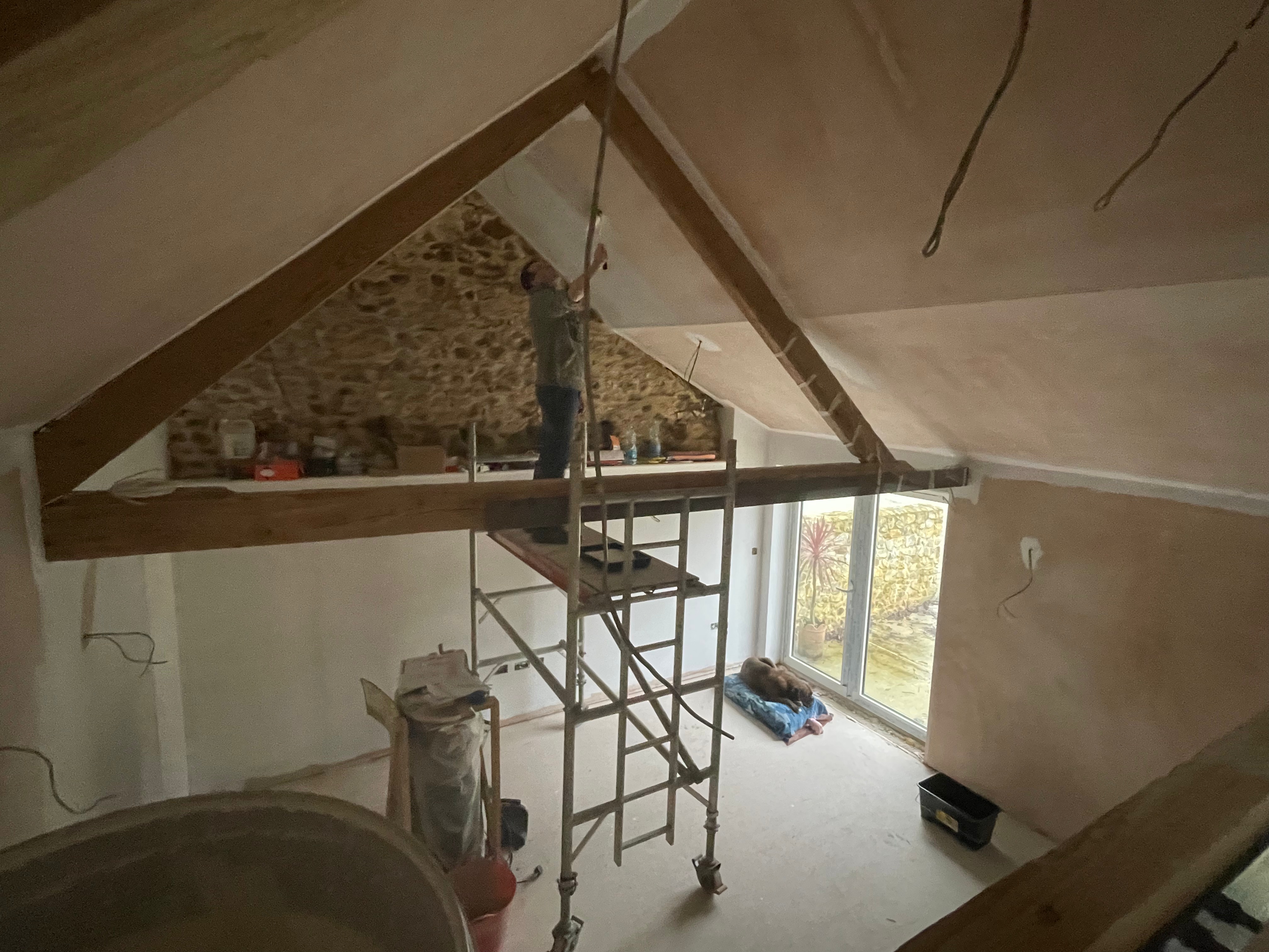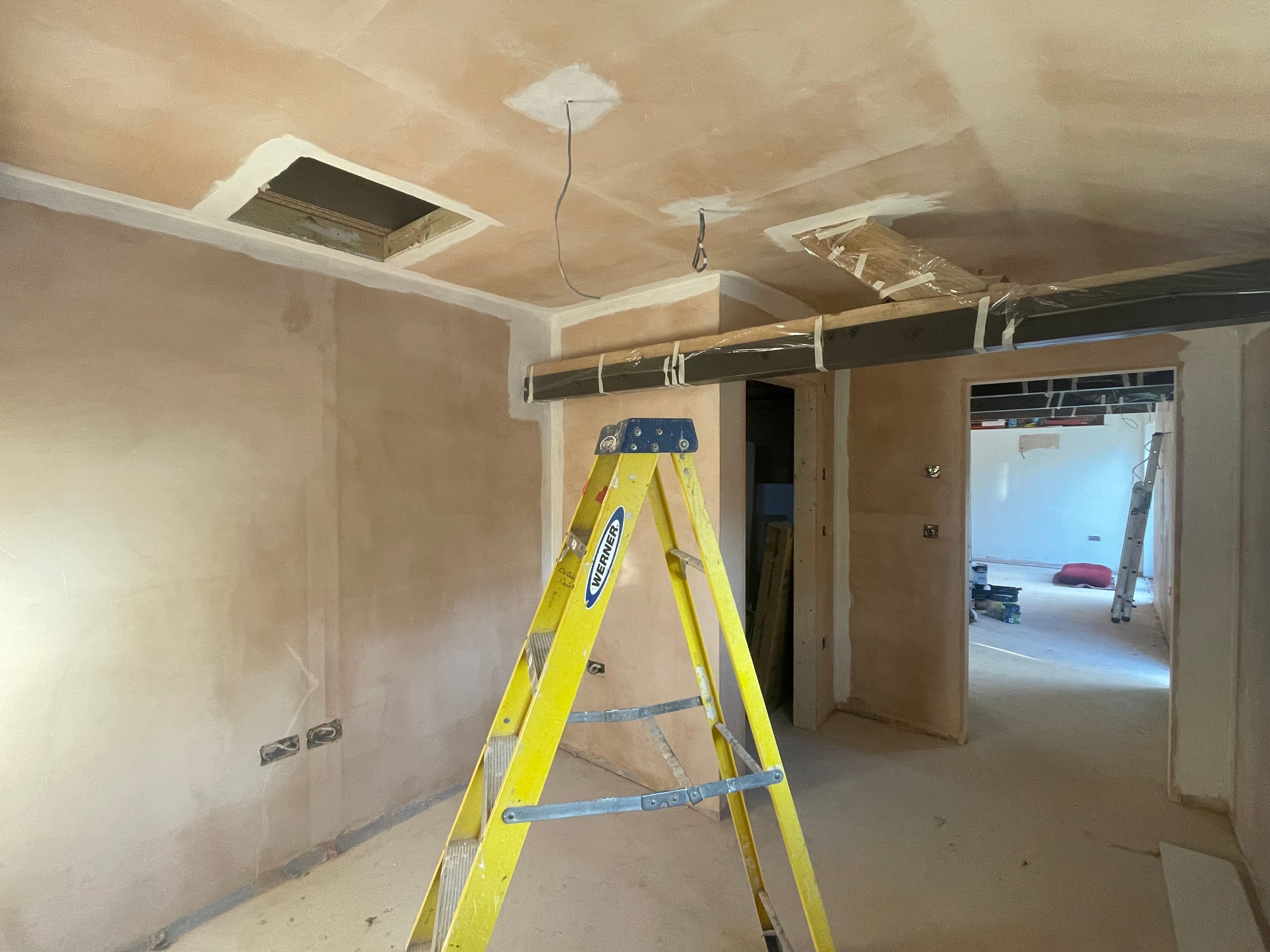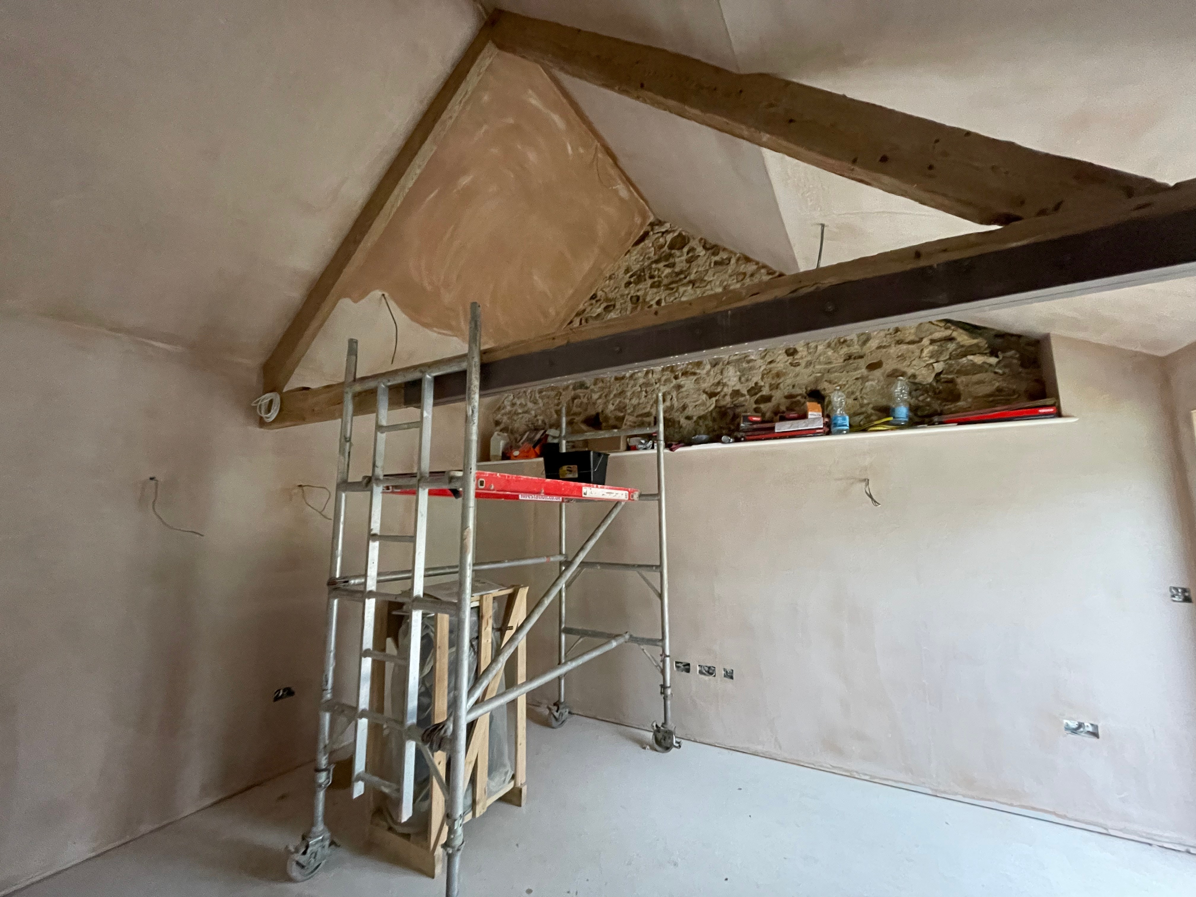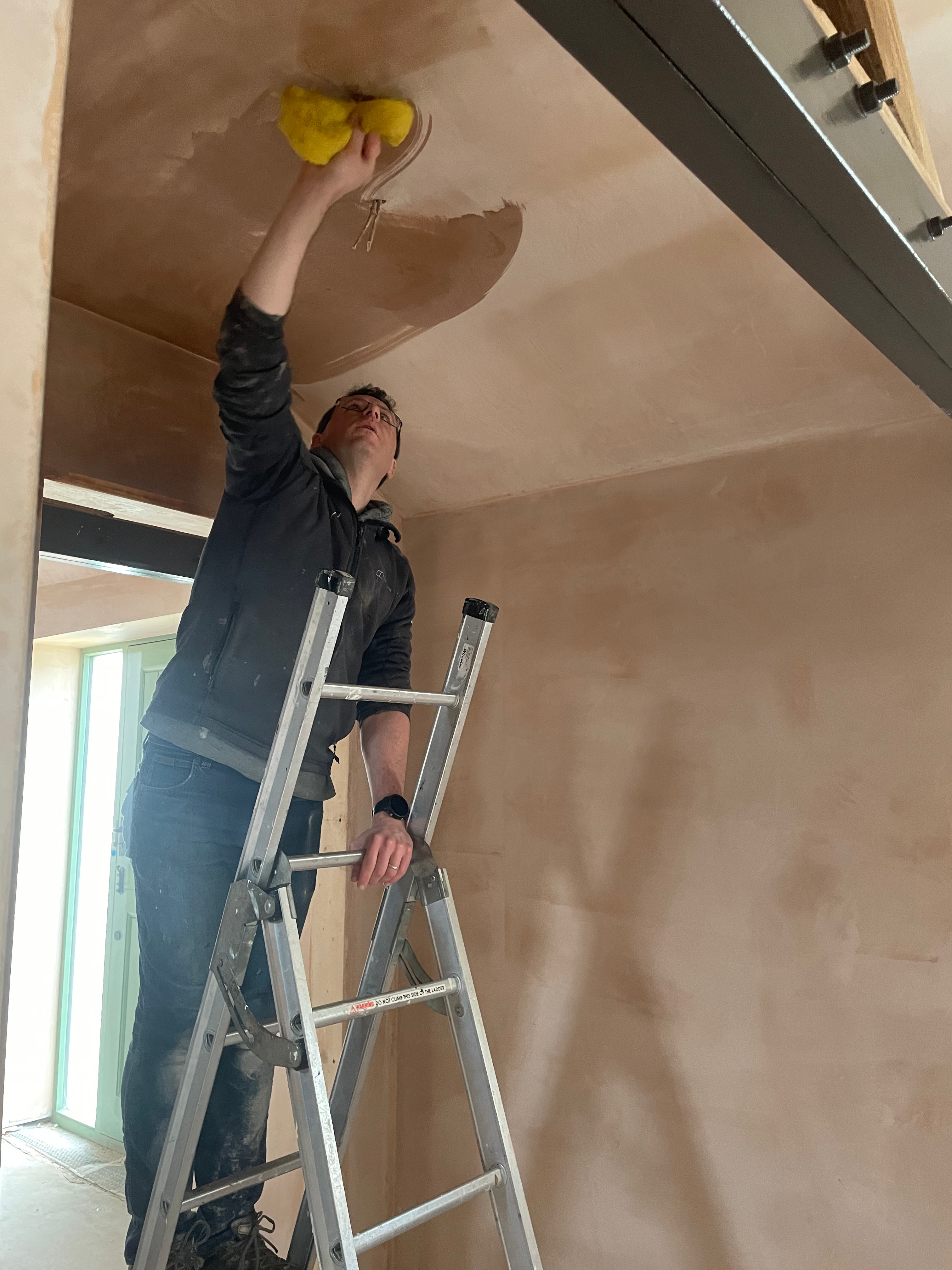 If last week felt quiet in terms of progress then this week seems to have disappeared under a pile of jobs. We took the plunge and started decorating in the Cow Shed – John spent the week moving the builders’ equipment into the shower room to make more space and then wiped the walls down to get rid of the building dust. We then started priming the bare plaster ahead of properly painting. We split the painting between us – I do the edging and John rolls. I managed to get all the edging done (bar the bathroom) but a last minute midweek booking for Monday meant that John spent Sunday doing a changeover in the Farmhouse so only got a third of the living space rolled. The hardest part is starting though! We have a busy few weekends coming up so will only make limited progress for a while now.