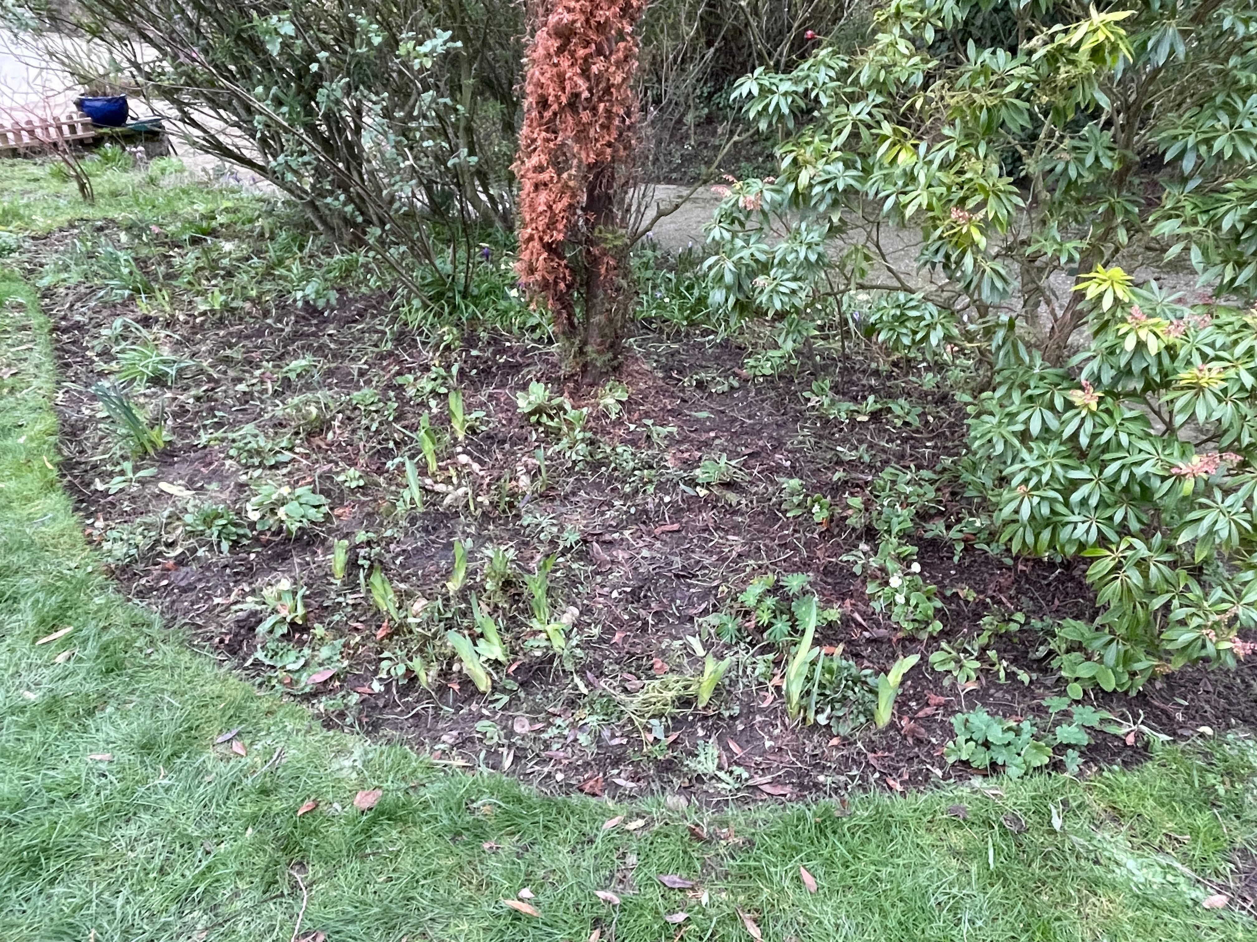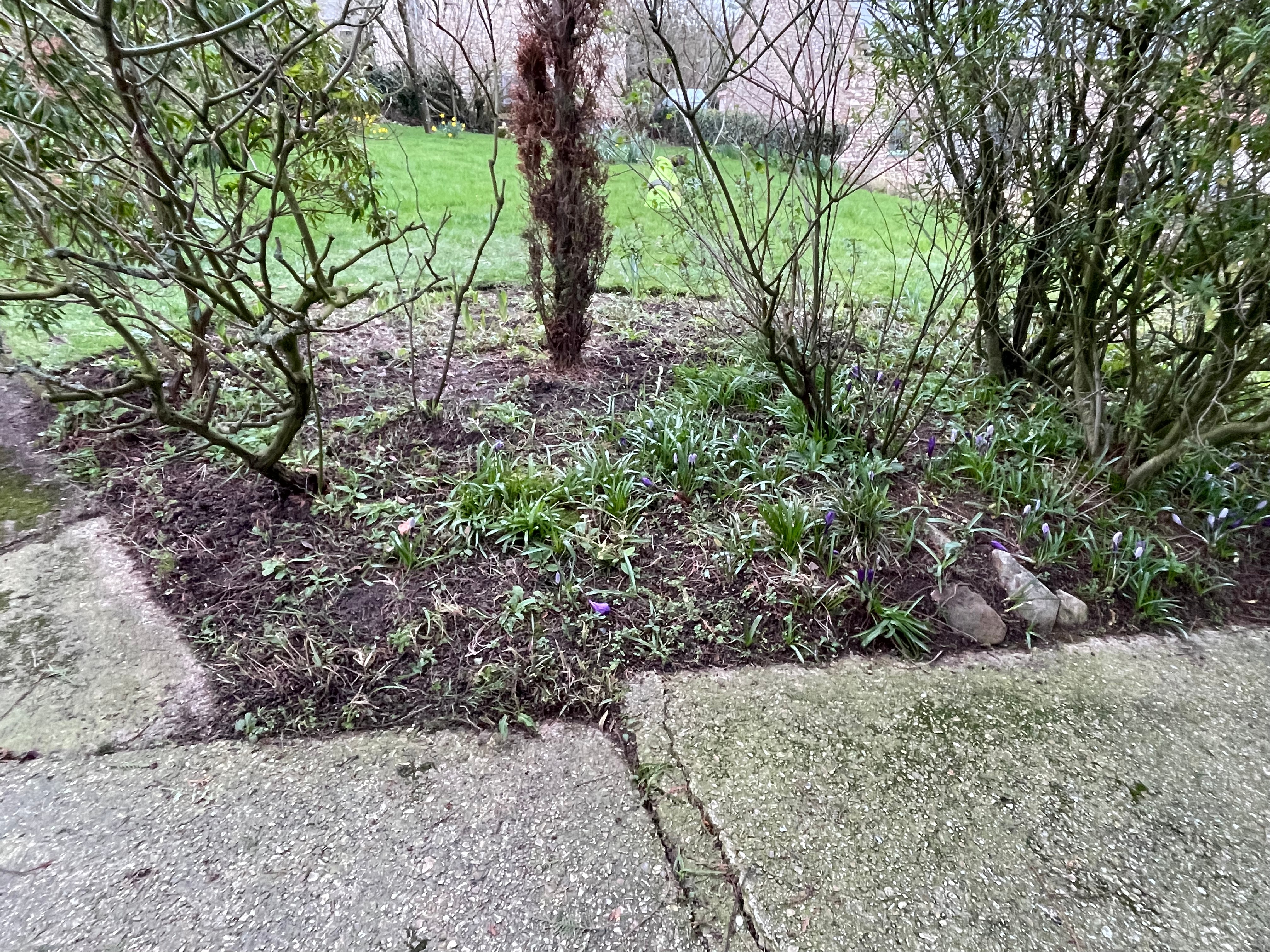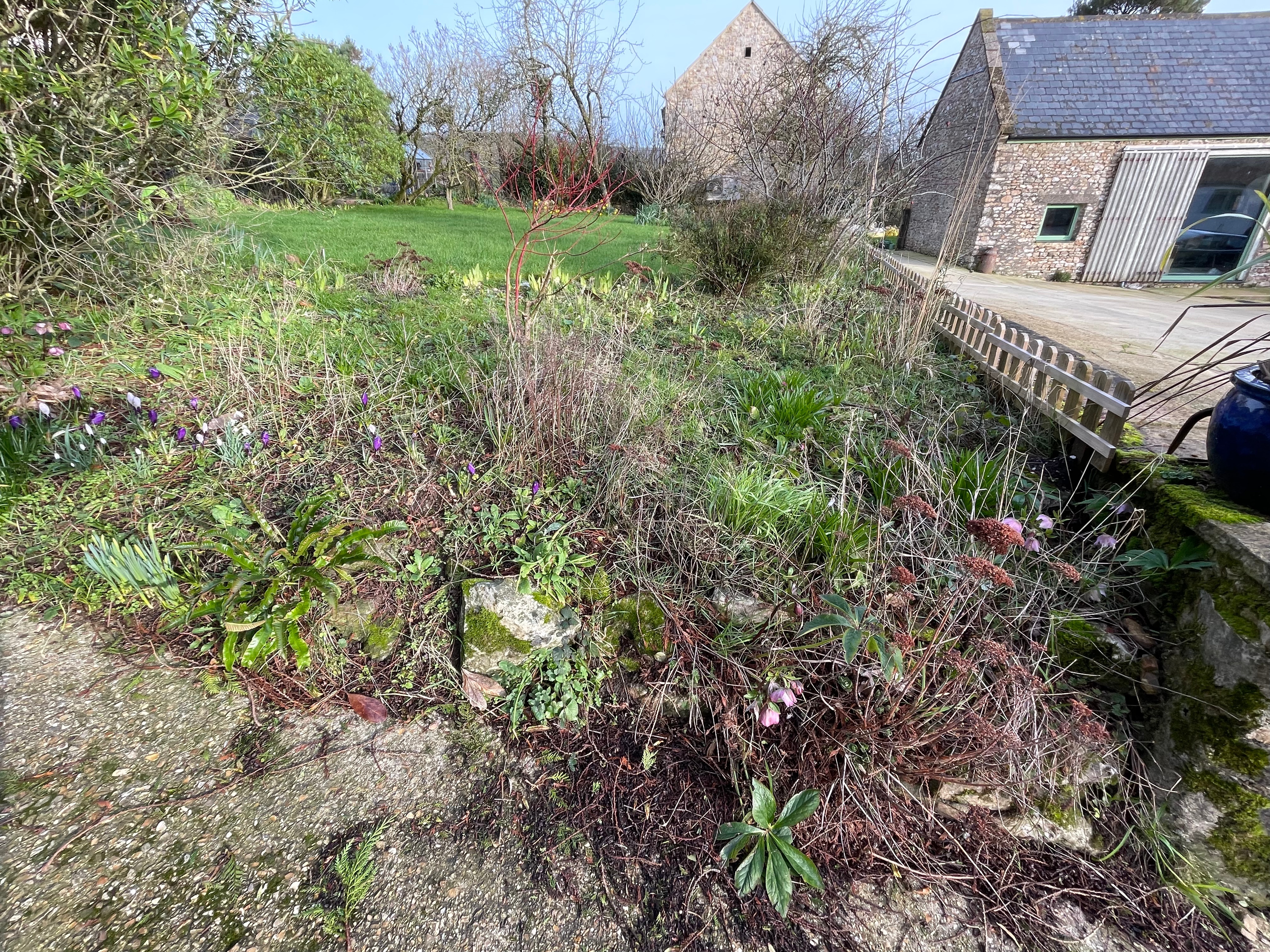 As we’ve had a few days of sunshine John spent one of them clearing the Farmhouse flower beds. Even though we spent several weekends at the start of 2025 clearing all the weeds, many of them (including three cornered leek and countless clumps of grass) have returned. Now some of the flowers have started to appear it’s been an interesting challenge to avoid disturbing them!