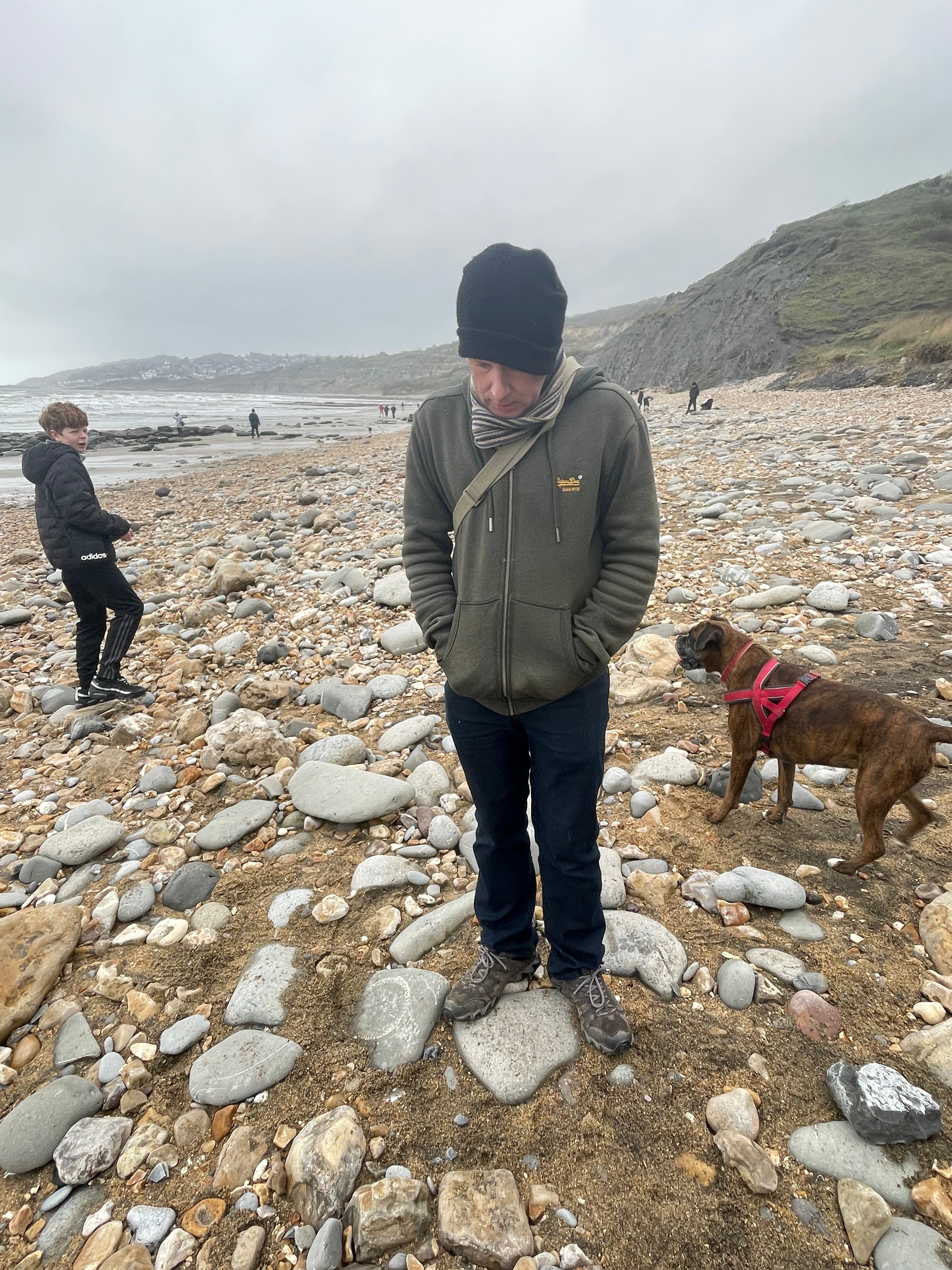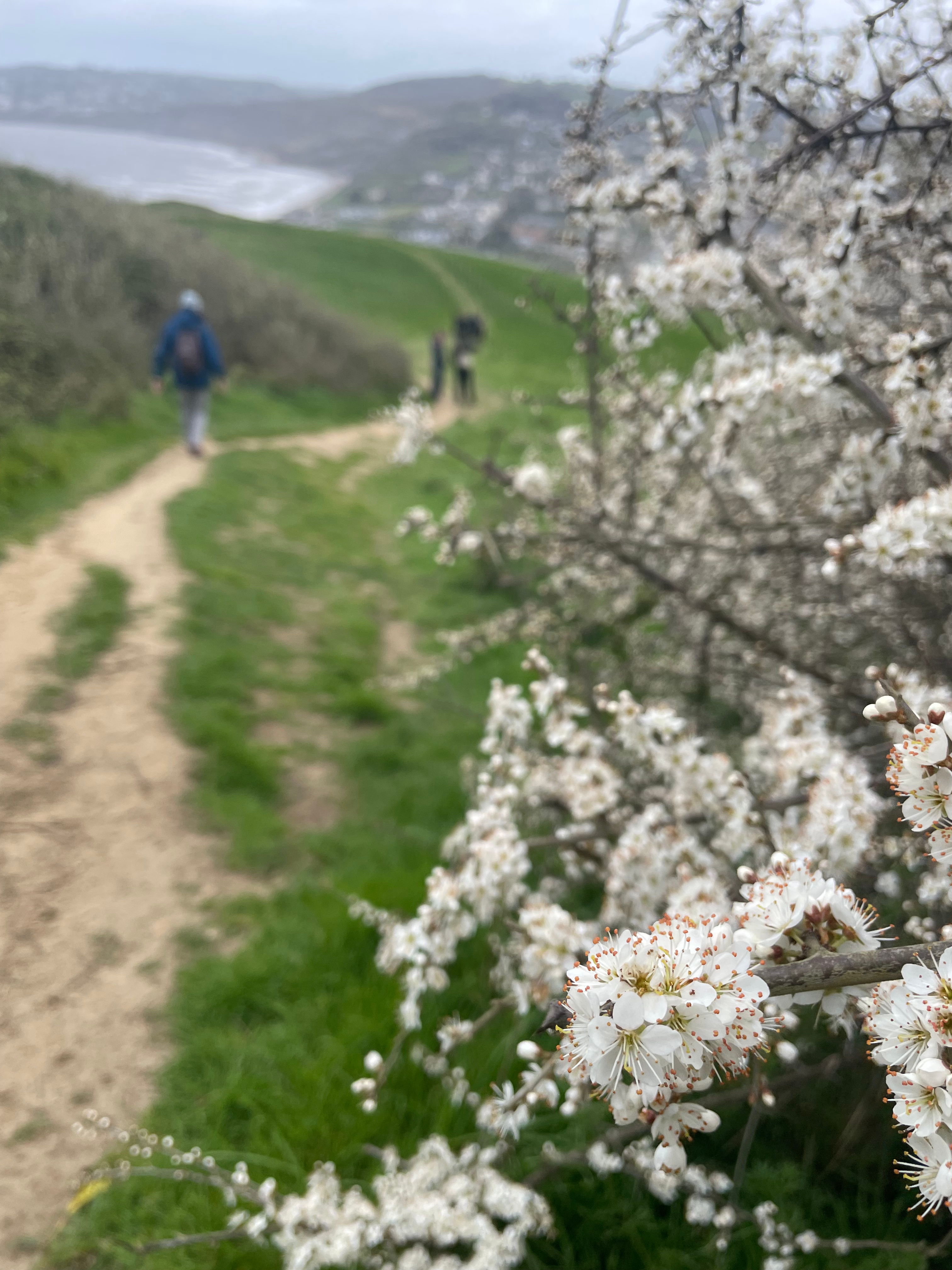 Despite having a four day weekend we’ve had family to stay in the Farmhouse and so not had much time to catch up on jobs. Good Friday was taken up with a same day changeover, and then Saturday we headed out to Charmouth for a walk and some fossil hunting on the beach. We’ve only been to Charmouth once before but several of our guests choose to visit there when they stay – it’s been added as a recommendation on our Guest Recommendations board in the Games Room so we felt like we had to go. The views along the South West Coast Path were fabulous – you had great views of Golden Cap further along the coast – and all the spring flowers are starting to appear, providing very colourful bushes and hedges.