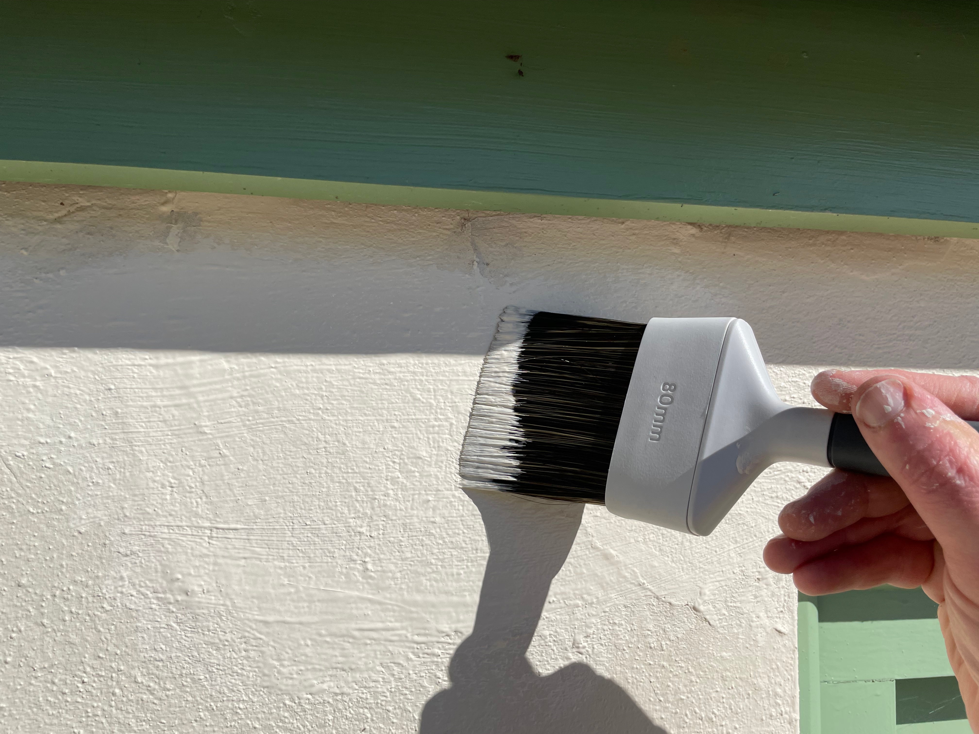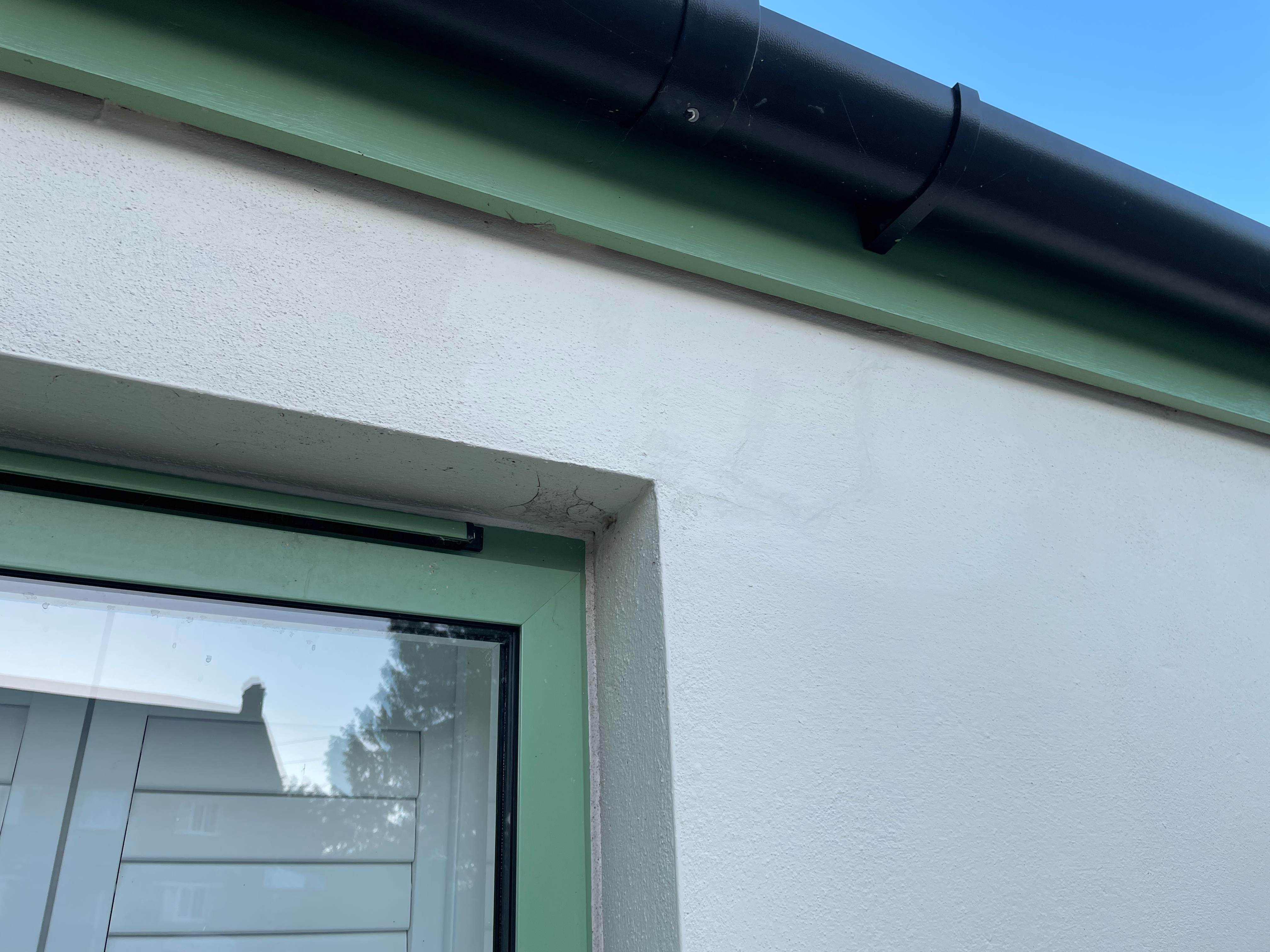 The Cow Shed has seen a little more progress, with the first coat of paint now finished on the ceilings. We have time set aside next weekend to get the second coat done. And we’ve also touched up the front of the Shippon wall where the render cracked and the plasterers repaired it when they did the interior. One step at a time…