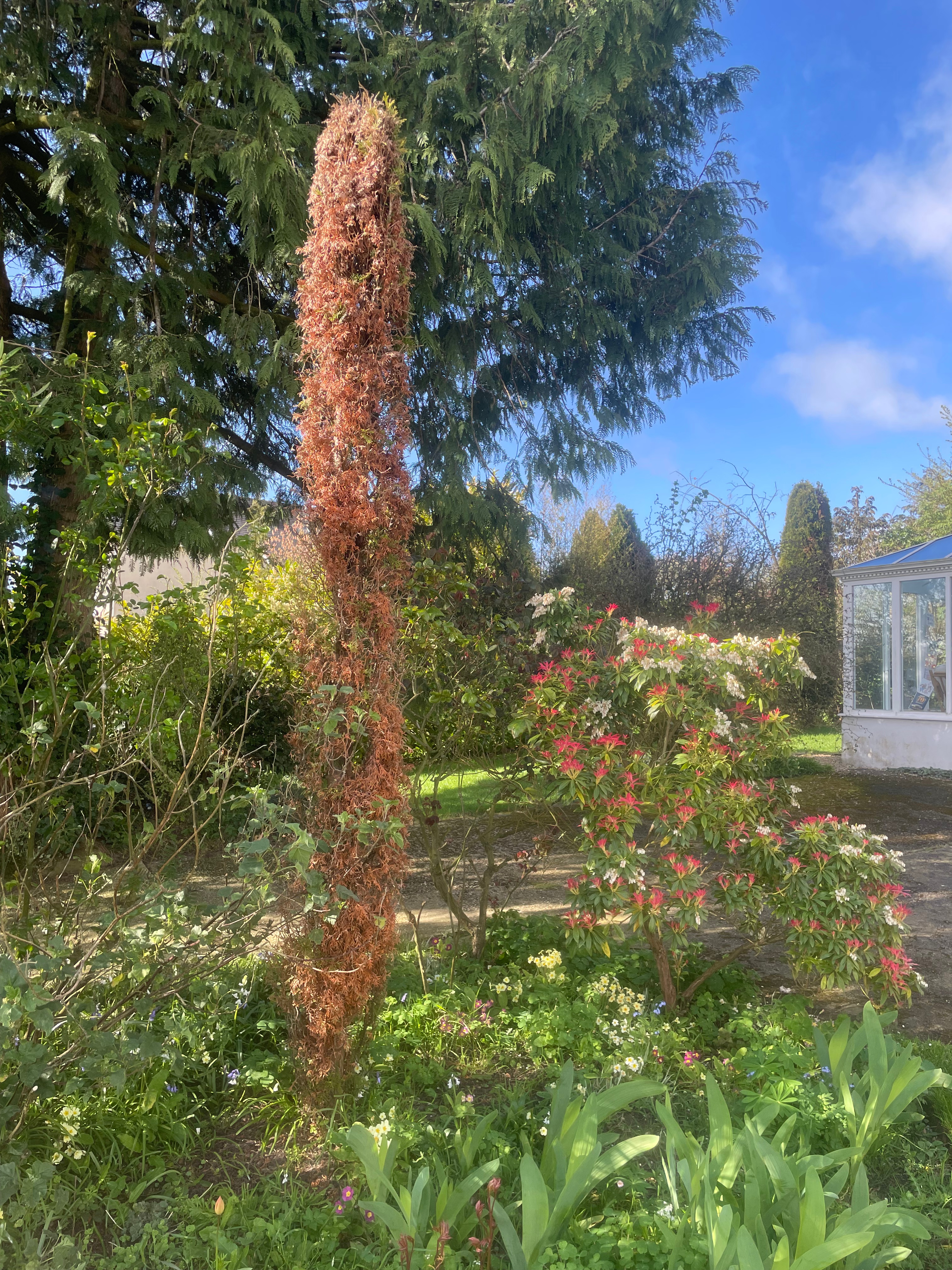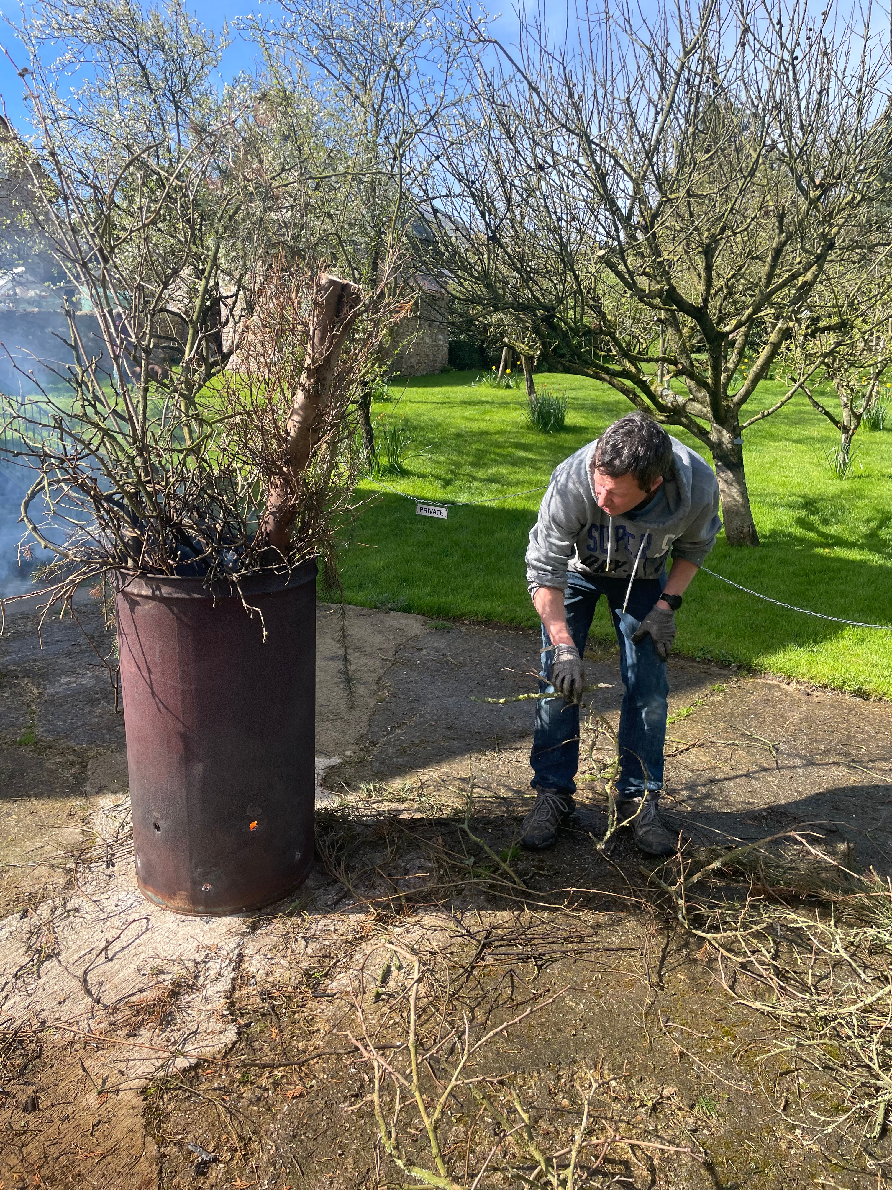 We made the most of having family staying in the Farmhouse to do a few bits in the garden this weekend. We replaced a fir tree in the front garden that died in last year’s heatwave – we’d hoped in vain it would recover. We had to wait for a weekend we could access the garden – it’s quite a hot sweaty job to dig out all the roots and not one you want to do with guests in the farmhouse! We’ve replaced it with a pittosporum and some poppies, and planted some lupin seeds which hopefully aren’t too late to take – now we’ve cleared the weeds around it too the soil looks quite bare and is just likely to attract more weeds if we don’t fill it. John also managed to get through a little more of our bonfire pile – he still has a mammoth job ahead of him though to clear it all!