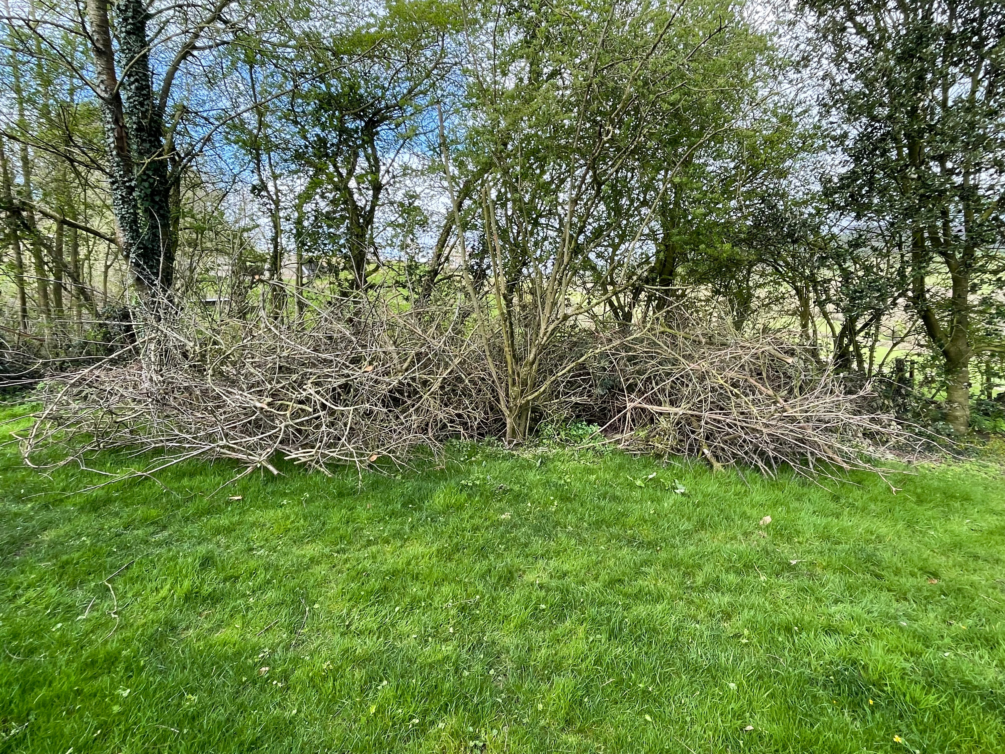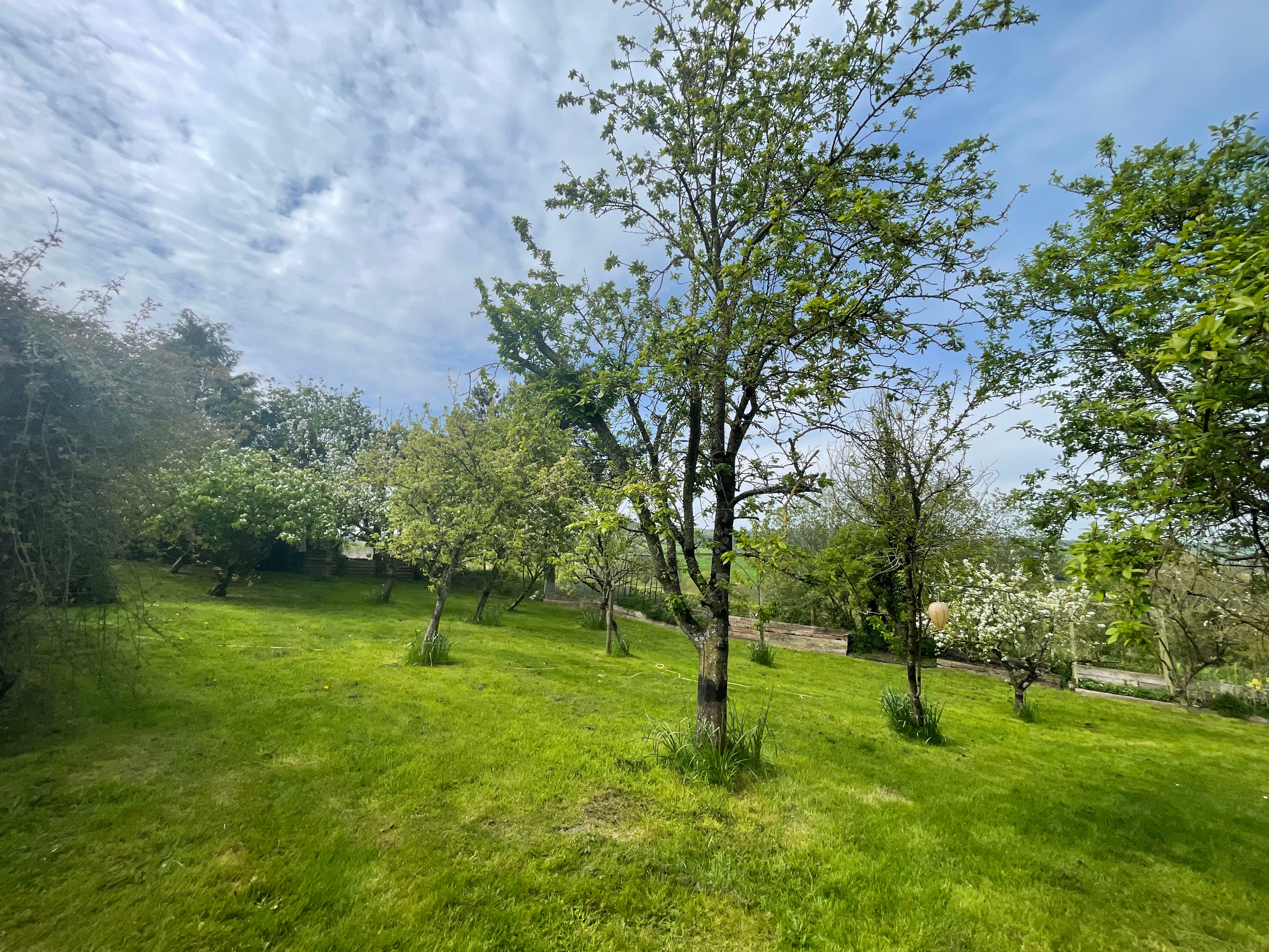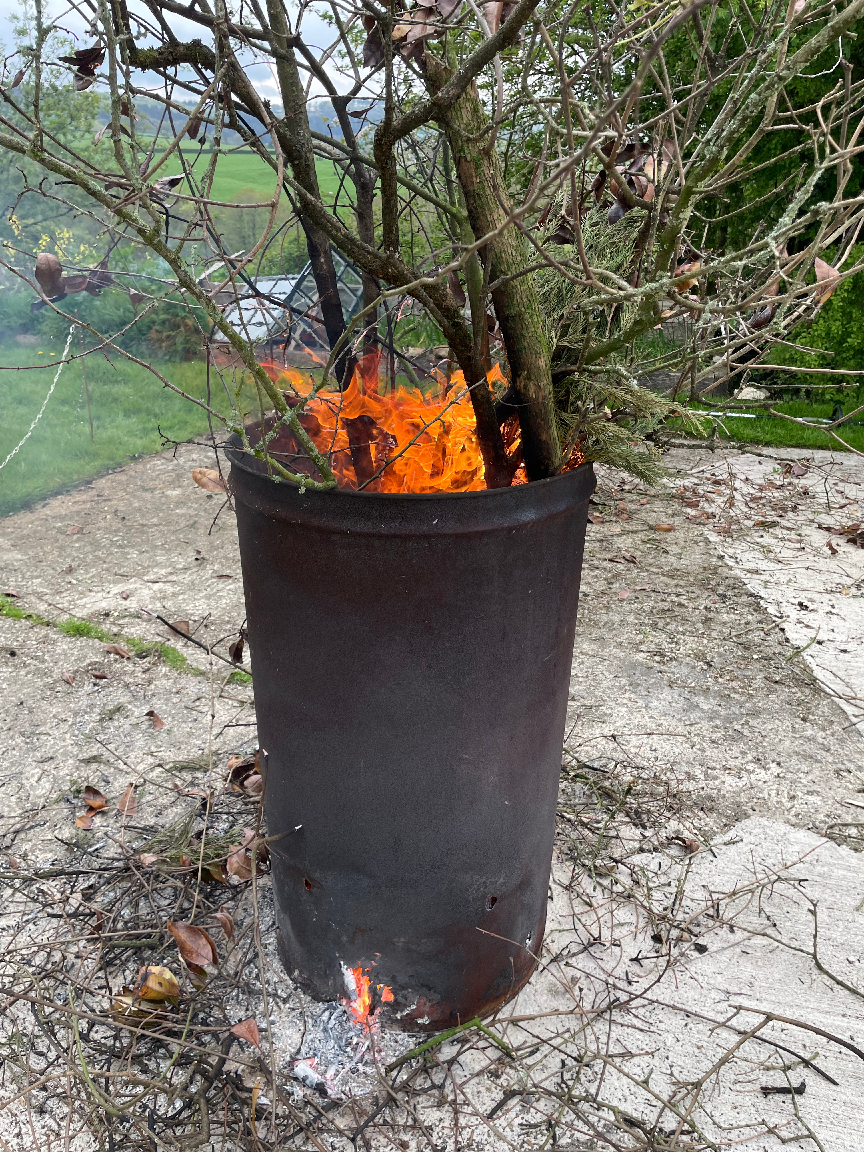 We finally got round to feeding the fruit trees with calcium and superphosphate – arguably a couple of months later than you’re supposed to. The blossom on the plum and pear trees seems to have come and gone with tiny fruits now forming; while the apple trees still have some blossom on – hopefully there’s still time for the nutrients to have some effect. And John has finished the last of the incinerator pile left from our winter pruning – although we have several trees that have died and need cutting back, so I’m sure we’ll end up creating a new pile soon.