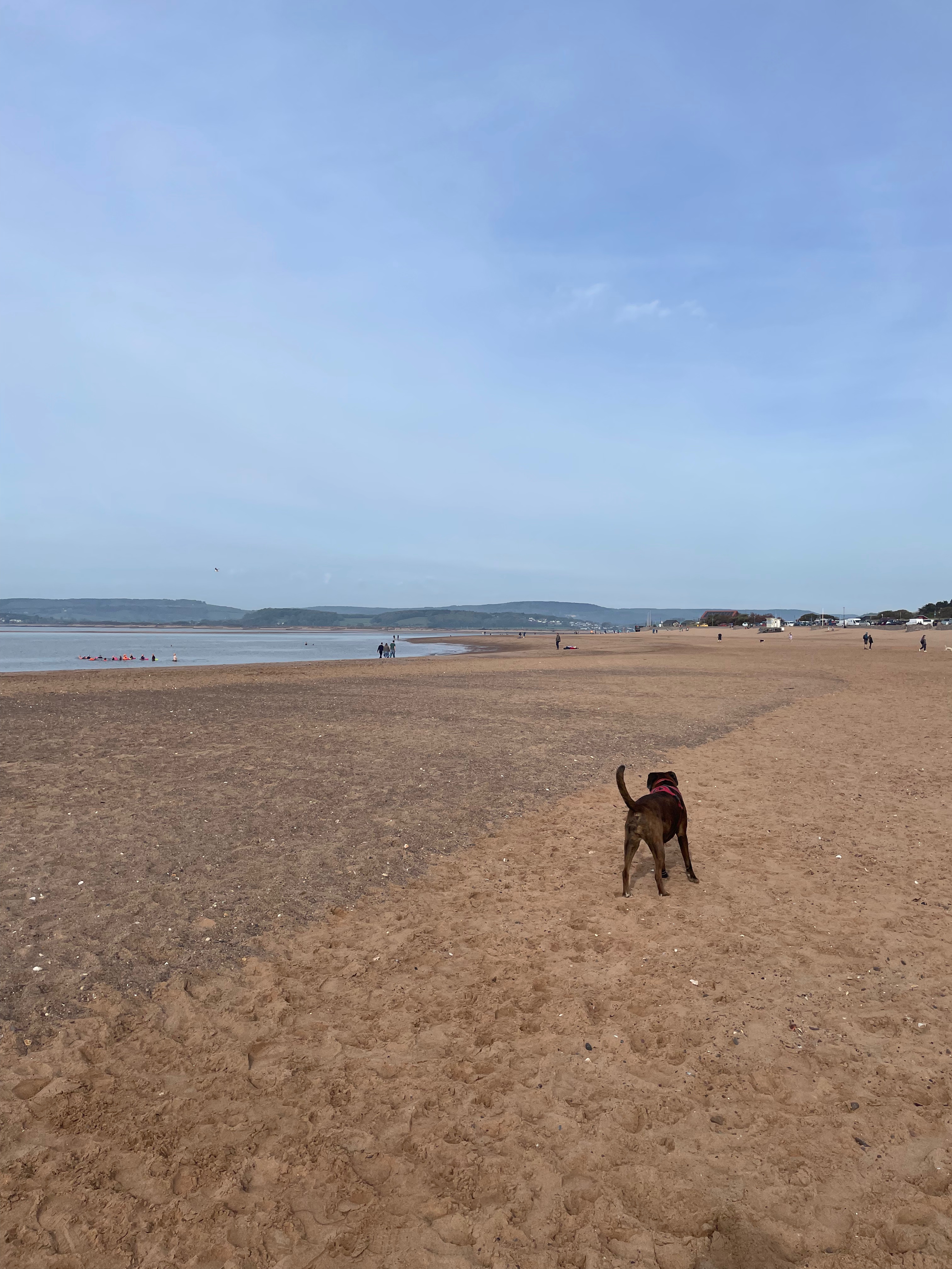 On Sunday John took part in the Exmouth 10k (coming an impressive 11th out of 114 overall and first in his age category out of 14, well done John!) which gave Evie and I an excuse to hang out on the beach for a bit. At about 40 minutes away, Exmouth is a bit further than most of the beaches we recommend to guests, although it has a long and beautiful sandy beach and plenty to do and see in town. It’s dog friendly until May so we just got there in time – it was quiet but lovely to see the few people there with dogs enjoying the freedom and the soft sand! It’s one we’ll be adding to our recommendations list as soon as we have time…