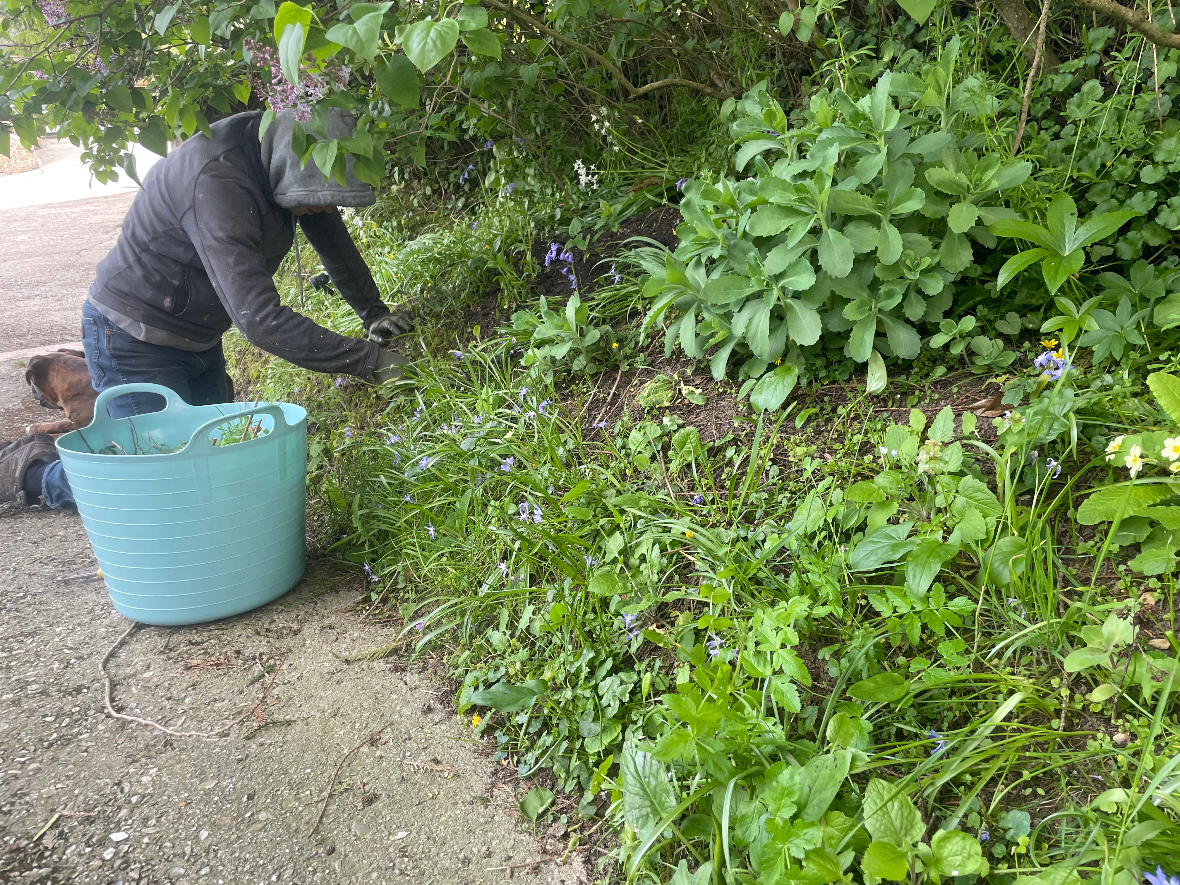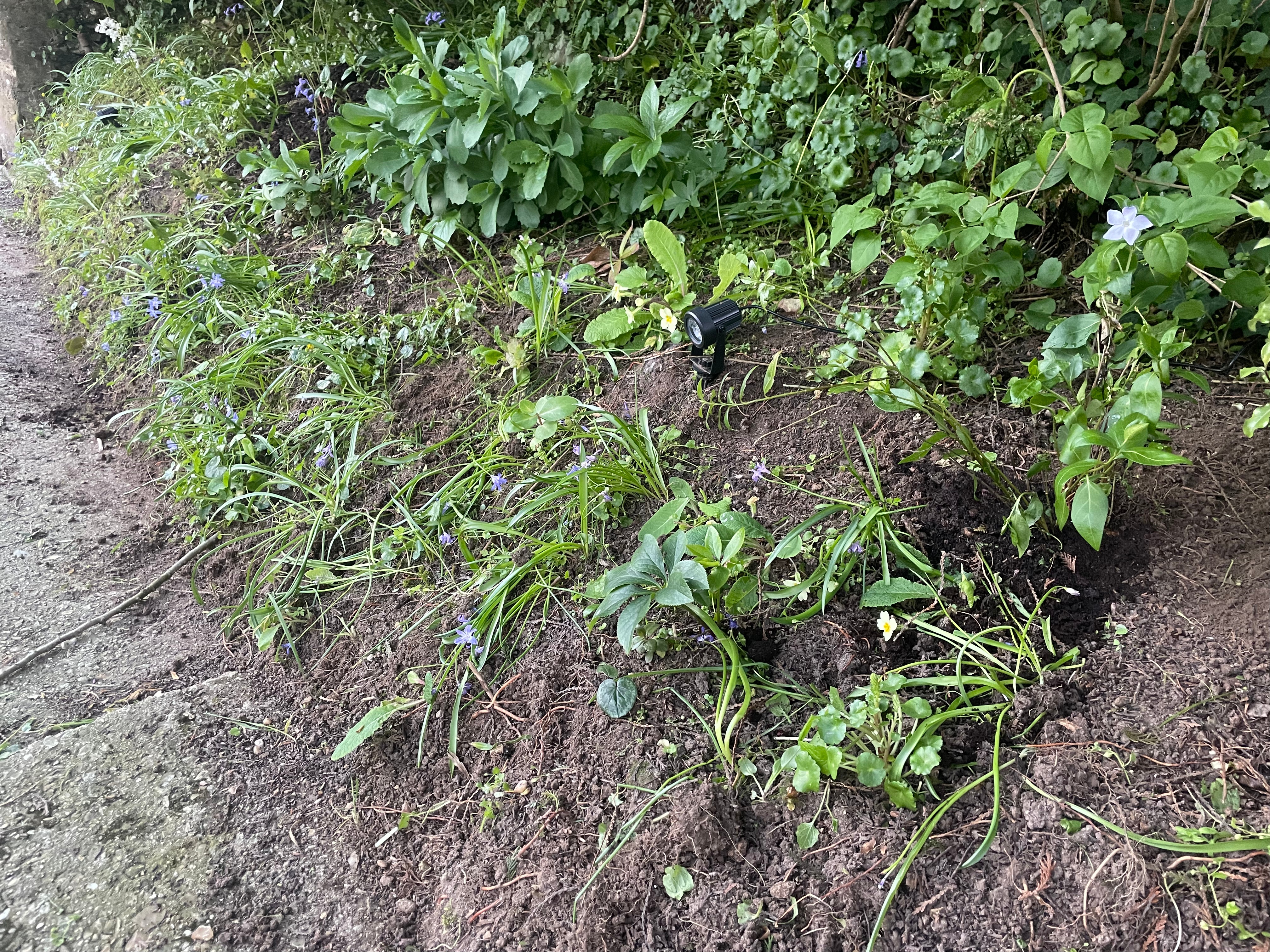 We also weeded the snowdrop bank and planted out some periwinkles in the hope they will take. We’ve struggled to plant anything there that remains – it gets so dry and is shaded by the light purple lilac so most of the plants and bulbs fail, and the weeds take over. My mum also donated some violets on my last trip home so they’ve gone in too, with our fingers tightly crossed!